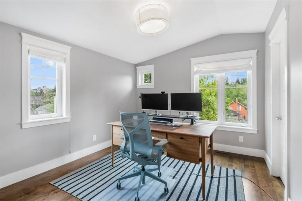Nestled on one of the most beautiful streets in northwest Calgary, this Sunnyside three-story dream home offers the perfect blend of style and functionality. With four bedrooms and over 3500 square feet of modern charm and character, this place has everything you need for comfortable living.As you step inside, you're greeted by an impressive lounge and a stunning foyer that sets the tone for the rest of the home. The main floor also features a full wet bar conveniently located off the dining room, making it ideal for entertaining guests. The chef's dream kitchen boasts high-end appliances, quartz counters, and an oversized pantry to fulfill all your culinary desires.Upstairs, you'll find the primary bedroom, a true sanctuary with a six-piece ensuite and a spacious walk-in closet complete with custom built-ins. Additionally, there are three more bedrooms, providing ample space for family members or guests.Take a stroll up the spiral staircase to the third floor, illuminated by skylights, and discover a vaulted ceiling flex space that offers endless possibilities. Whether you want to set up a ping pong table or create a cozy hangout spot with friends, this versatile area is the perfect retreat.In summary, this Sunnyside gem on a picturesque street offers four bedrooms, a spacious layout, and a seamless blend of modern style and thoughtful design. It's a place where you can truly feel at home and enjoy the best of Calgary living. (id:22211)