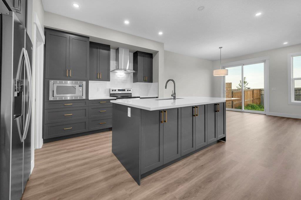 Brand New, Never Occupied, Available for quick possession features Fully developed basement, 4 bedrooms, 3.5 bathrooms, single front garage, backing on to no houses located in one of the most desired and amenity rich communities of Mahogany. At the entrance, this house welcomes you with a gleaming LVP throughout the main floor, also featuring a huge mud room, a large living area, a separate dining area and a huge kitchen with upgraded kitchen cabinet colors, appliances, a chimney hood fan and a large pantry. Upstairs, this house comes up with 3 bedrooms, a central bonus area, 2 full bathrooms and a laundry room. Primary bedrooms come with a large walk-in closet and a 4pc ensuite with dual sink and a standing shower with glass door. Another 2 bedrooms and a bonus area shares another 4pc bathroom and also a laundry area. Basement is fully developed by the builder and comes up with a large rec room, a large bedroom with an egress window and another full bathroom. This house is not going to stay longer. Book your private showing today! (id:22211)