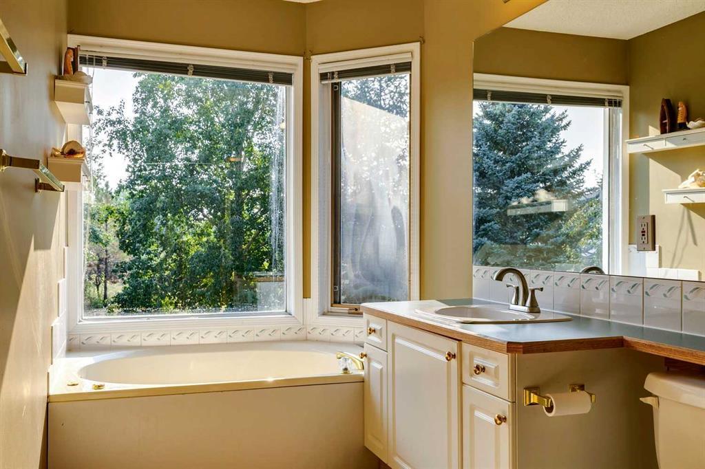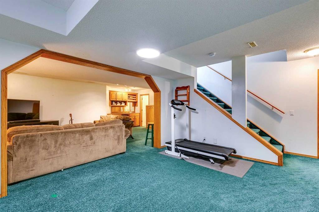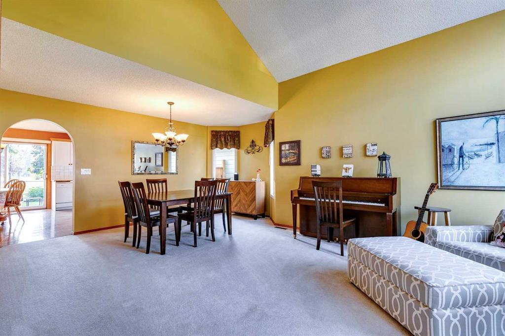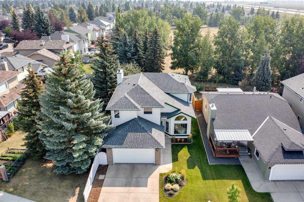 Amazing opportunity to own this impeccably maintained family home situated on an incredibly private lot backing/siding onto greenspace in the charming lake community of Sundance! Featuring a uniquely open main floor plan highlighted by soaring vaulted ceilings in the formal and informal living spaces that seamlessly connect to the spacious kitchen & sun-soaked breakfast nook. Expansive windows throughout the home provide a fluid connection to the outdoor oasis where you’ll find manicured landscaping, beautiful natural garden beds, and mature trees that provide the property with a natural enclosure of privacy - great for hosting gatherings of all sizes. Ascend the upper level where you’ll find a sprawling primary quarter equipped with a huge walk-in closet and ensuite. Two generous guest bedrooms and a full bathroom complete the upper level. The fully developed basement provides the option of a 4th bedroom, a large rec room, storage, and an additional family room equipped with a gas fireplace and wet bar. Recent updates include: Roof (2021), Siding | Eavestrough |Cladding (2022), Deck (2019), and Fencing (2020). Pride of ownership can be seen throughout this beautifully appointed family and it presents the perfect turn-key opportunity for your family to make it your own. Be sure to view the 3D VIRTUAL OPEN HOUSE TOUR for a better look. (id:22211)