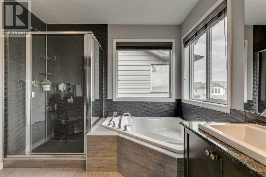 Welcome to 95 BRIGHTONCREST POINT SE, this home would be PERFECT for a couple with dreams of expanding their family, a downsizer, or those with young kiddos. It features over 1,831 sqft of developed space, 3 bedrooms, 2.5 bathrooms, a BONUS ROOM, a HEATED GARAGE, a HOT TUB, & a PARTIALLY FINISHED BASEMENT awaiting your creative touch. Upon entering, you can appreciate this SPACIOUS ENTRANCE w/ a perfect wall for a bench or even a long mirror. Head towards your OPEN FLOOR PLAN, where you’ll find a powder room to your left, a BEAUTIFUL KITCHEN w/ dark cabinetry, & GRANITE COUNTERTOPS & check out your UPDATED HIGH-END KITCHEN AID & Whirlpool APPLIANCES… These appliances have all the bells and whistles! You have a convenient walk-through pantry leading into your mudroom from your double attached HEATED GARAGE & just off your kitchen, you’ll find your DINING ROOM w/ a beautiful light fixture & sliding doors onto your backyard - perfect for letting the kids play… In the backyard, you'll find an OVERSIZED DECK & YOU GET A HOT TUB!! This backyard is private, just the right size & easy to maintain. Not only that but this home is fully equipped w/ AIR CONDITIONING. Coming back inside, you can appreciate the SIZE of this living room & the multiple configurations you could have, along w/ your corner GAS FIREPLACE… To finish off this level you have a door leading to your basement, & a beautiful staircase going UP. Upstairs, you'll find 3 bedrooms, w/ WALK-IN CLOSETS IN EVERY ROOM, a 2nd bathroom w/ a perfect design for kids, UPSTAIRS LAUNDRY, & a multi-purpose BONUS ROOM, perfect for an office, a kids' playroom, a workout space, or hobby room… The upstairs is finished off w/ a large MASTER RETREAT, big enough to fit a king-sized bed w/ nightstands on both sides & room for more bedroom furniture, a LARGE WALK-IN CLOSET, & 5-piece ENSUITE bathroom w/ DOUBLE VANITY & even a BUILT-IN MAKE-UP DESK…This home is a really great size, but just in case you need a little more space, you s till have a partially finished BASEMENT that’s already FRAMED in for a 4th BEDROOM, bathroom & a BIG LOUNGE AREA. I love this home for many reasons, but one of them is that it's located in this SOUGHT-OUT FAMILY FRIENDLY COMMUNITY of New Brighton. You’re on a private street, perfect for letting your kids play hockey outside, & walking distance to extensive walking paths; schools, parks, convenience stores, the New Brighton Athletic Park, the Clubhouse w/ Sporting Courts, a Skating Rink in the Winter & a Splash Park in the Summer, & you have 130th Ave. for all your shopping, groceries and dining. This home was built by Shane Homes a reputable builder in 2015 - it's in basically brand new condition & on top of all the amazing features I've already mentioned, it also has BLINDS, a LENNOX HIGH-EFFICIENCY FURNACE & WATER TANK, a 220 amp ELECTRICAL PANEL, a WATER SOFTENER, & a NEW ROOF (2022) - with the Green line C-train coming to the South East Calgary, NOW is your time to get in - BOOK YOUR SHOWING TODAY! (id:22211)