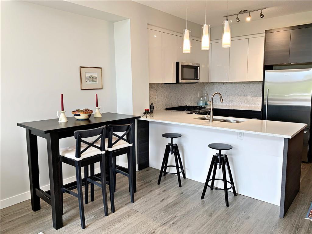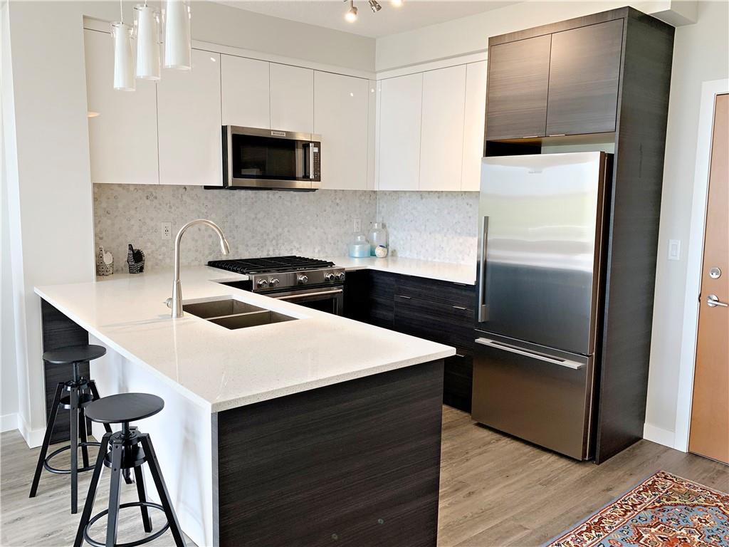This fresh and modern Penthouse level unit is sure to impress both executives and students alike! With great views of the Rocky Mountains, this 1 bedroom - 1 bath property features a beautiful kitchen with sparkling quartz countertops, marble backsplash, modern cabinetry, professional-grade gas stove and stainless steel appliances. The tasteful styling of the kitchen carries into the nicely appointed 4 piece bathroom. The bright and sunny living room has a high ceiling and plenty of windows making the space feel large and inviting. Walk to school/work across the street at Mount Royal University while leaving your car safely parked in your underground stall. Transit, shopping and parks nearby! (id:22211)