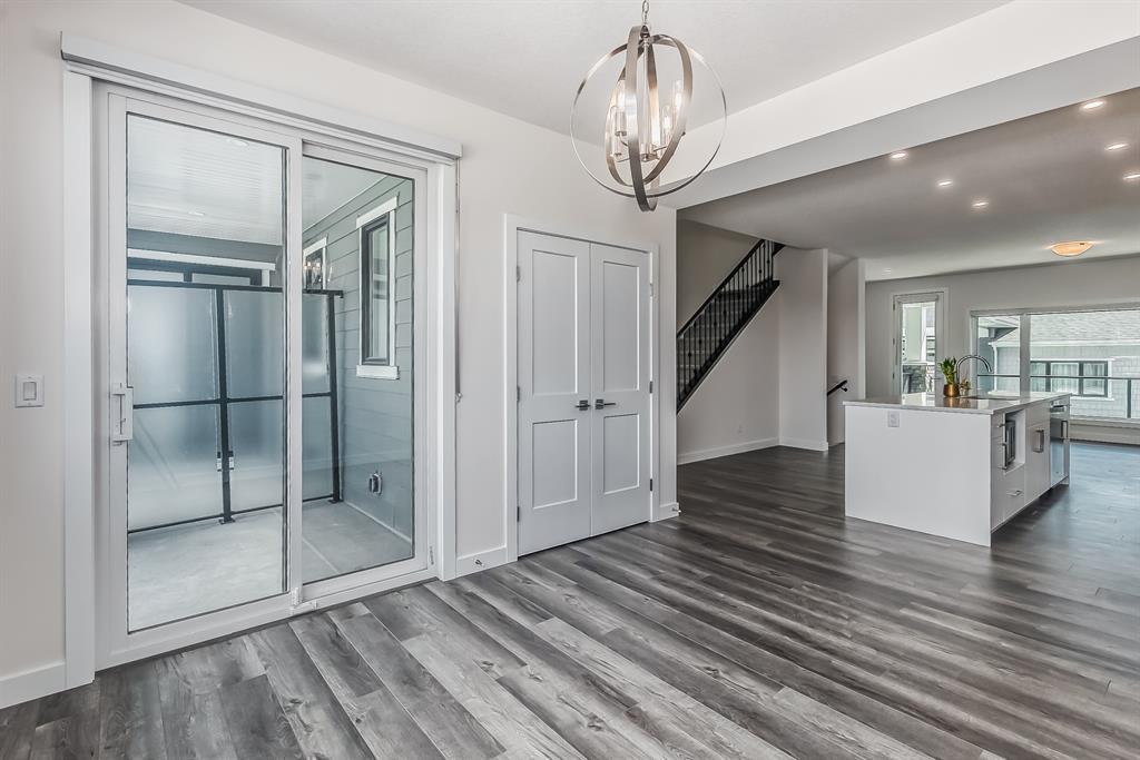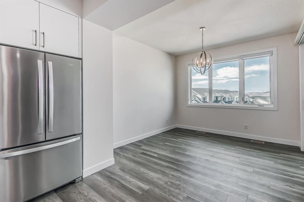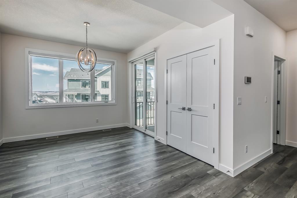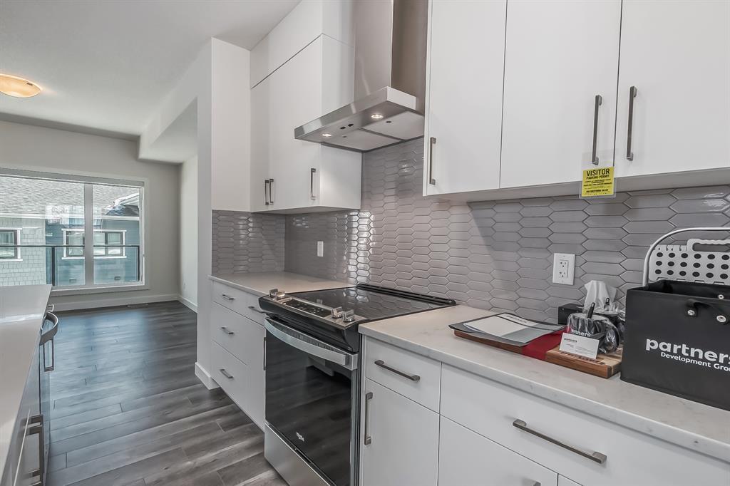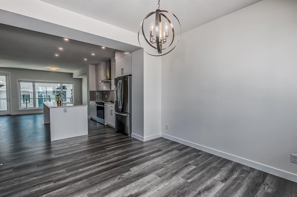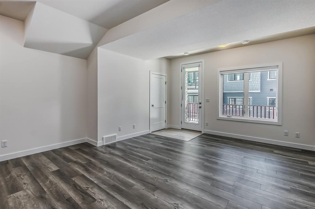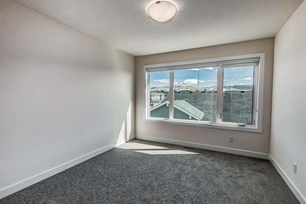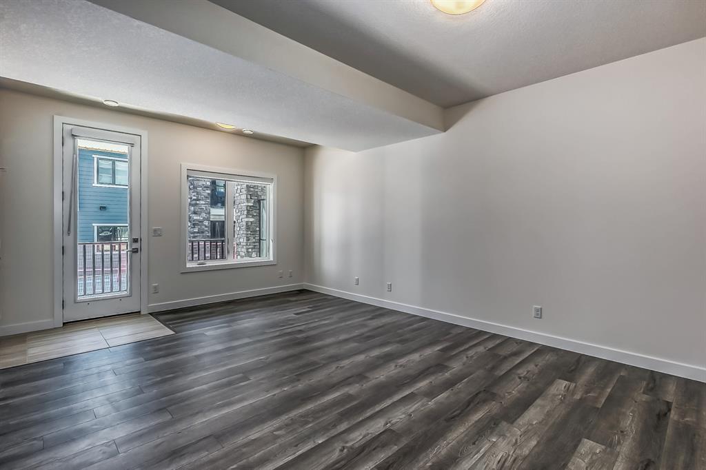Welcome to one of the most desirable floorplans in the complex, with views, this over 1864 sq ft finished walkout home will not disappoint you. This amazing home is ready for you, and all three floors are developed. Driving up to the home you will enjoy the extra long garage and full-size driveway. Walking into the main floor there’s a good-sized rec room with sliding doors to a private large patio with full railing. Upstairs is where the magic happens in the home. The huge open floor plan with the kitchen in the center, high ceilings, HUGE WINDOWS, amazing brightness, luxury wide plank vinyl, covered balconies on each end, one being a very good size for entertaining, the other smaller, one with gas outlet. This LUXURIOUS KITCHEN WILL PLEASE EVEN FUSSY CHEFS: FULL HEIGHT CABINETRY, GORGEOUS QUARTZ COUNTERS, EXTRA LONG 9 FT ISLAND SEATING AT LEAST 5, UPGRADED APPLIANCE PACKAGE, CHIMNEY STYLE HOOD FAN, UNDERMOUNT SINK AND PANTRY. These rooms are huge, the living with a Gas fireplace and stone surround. The dining room will fit big furniture and a desk plus another area in the kitchen for a desk or cabinet. Upstairs, you'll find upgraded carpet, HIGH CEILINGS, a primary bdrm with a walk in closet and dual sink vanity with quartz counters, private water room, walk in shower, and a VIEW of the mountains. The other two bedrooms upstairs also have VIEWS, and the other 4-piece bath also has quartz counters and a soaker tub. THIS HOME IS COVERED BY A FULL HOME WARRANTY, with cement fiber siding. ARRIVE has a retail village which includes a Child Care Centre, professional offices and convenient stores just walking distance from your door. Fantastic access to Banff, COP, Aspen landing, Westhills and Westside Recreation center, Callaway Park, and Calgary farmer’s market. Easily connect to 6 km of nature pathways, neighborhood pond, extensive green space and several playgrounds. Its QUIET, PEACEFUL AND WILL SURPRISE YOU IN THE BEST WAY. Don't miss this wonderful chance to o wn in a beautiful area of SW Calgary in an amazing home with an amazing floor plan. (id:22211)