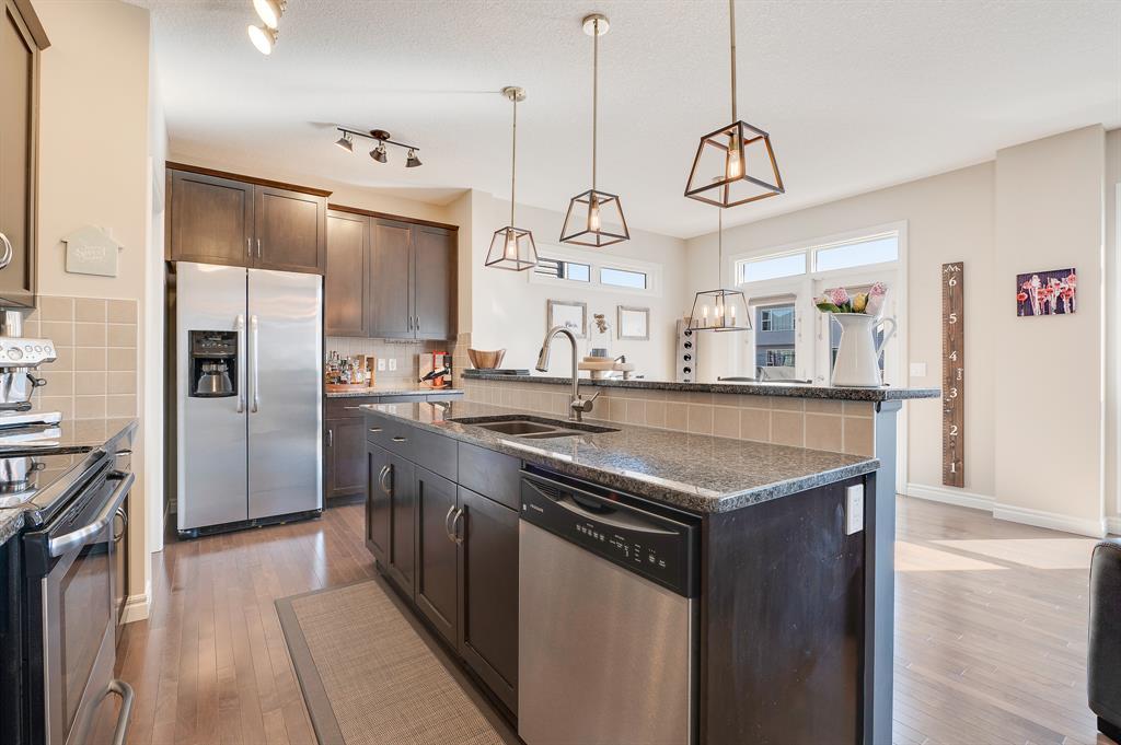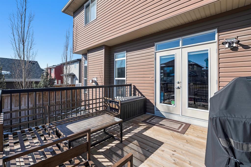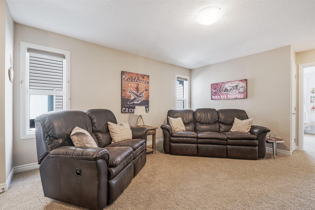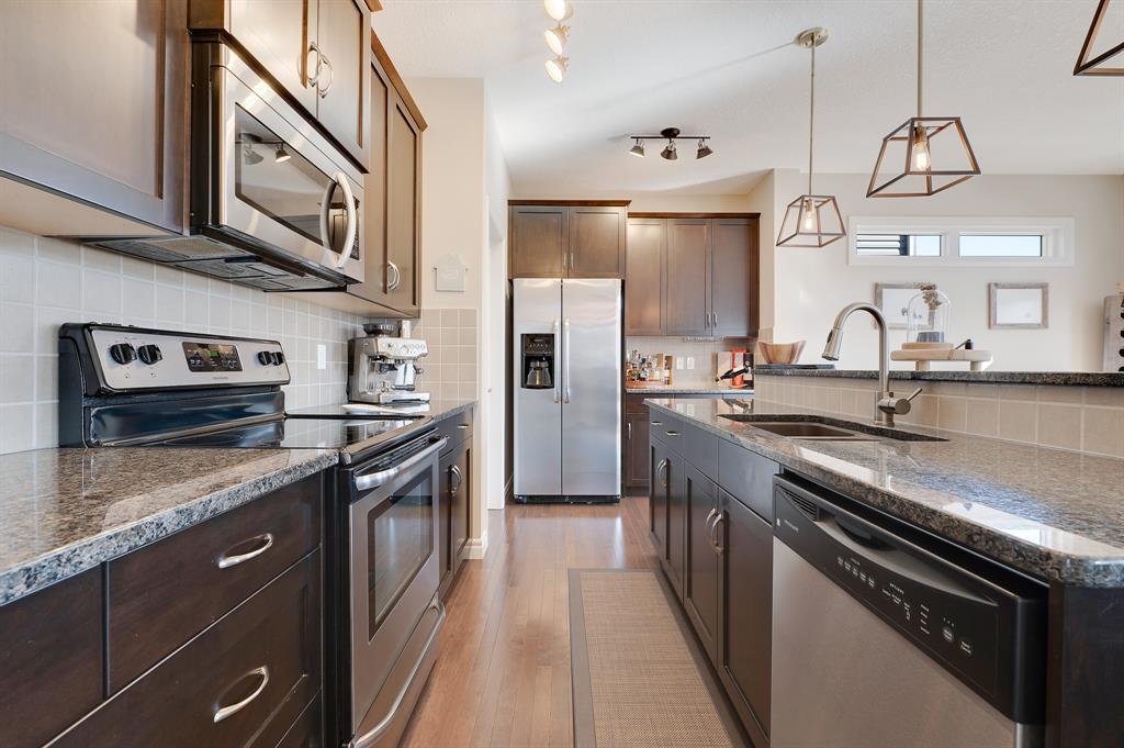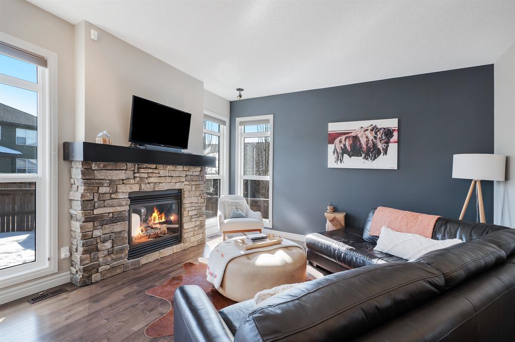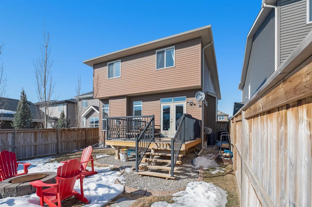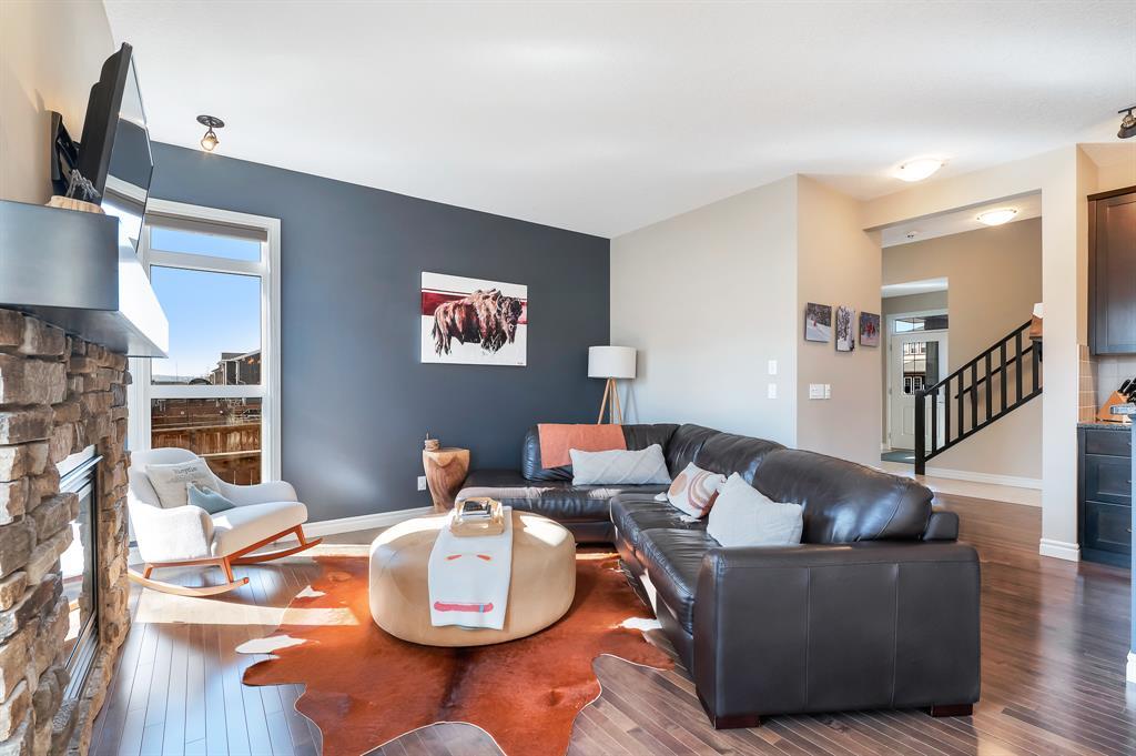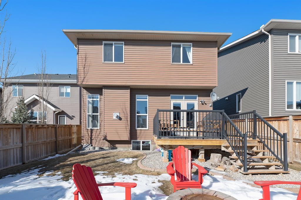 Warm, welcoming & well cared for 3 bedroom home in the family oriented community of Evanston, offering nearly 2,200 sq ft of developed living space! The open main level presents hardwood floors & high ceilings, showcasing the spacious living room anchored by a feature fireplace, casual dining area & lovely kitchen tastefully finished with granite counter tops, island/eating bar, plenty of storage, including a large walk-thru pantry & stainless steel appliances. A den/office is tucked away just off the foyer & a mudroom & 2 piece powder room complete the main level. The second level hosts a large bonus room, 3 bedrooms, a 4 piece main bath & laundry room. The primary bedroom features a walk-in closet & secluded 5 piece ensuite with dual vanities, relaxing soaker tub & separate shower. Further features include central air conditioning, a double attached front garage & sunny south back yard with deck. Also enjoy the convenient location, close to parks, schools, shopping & easy access to Stoney Trail. (id:22211)