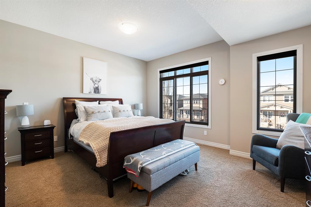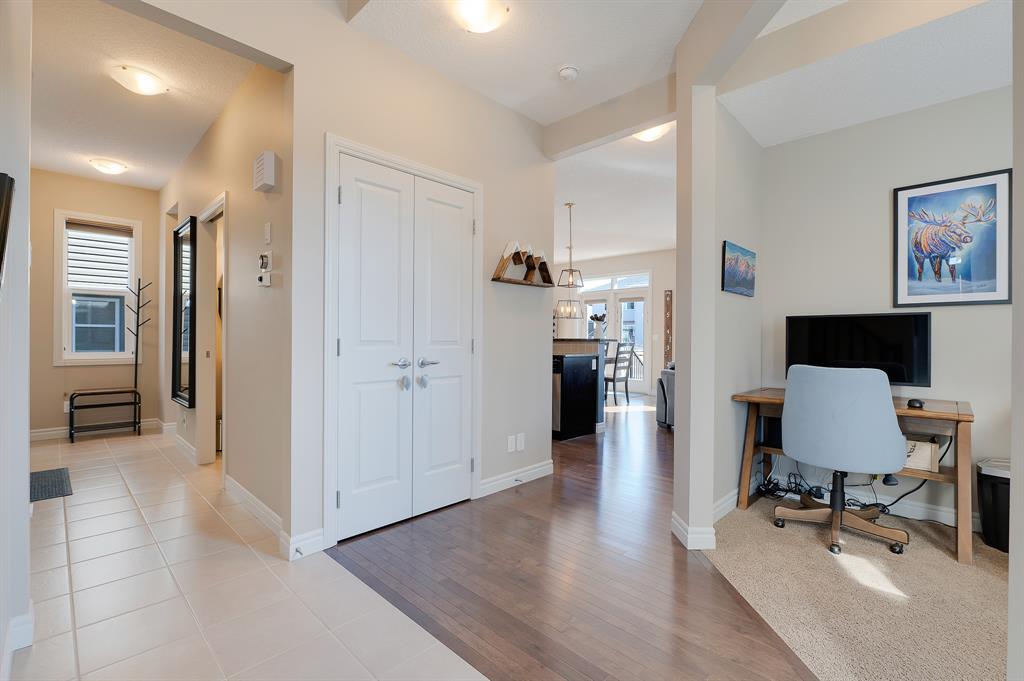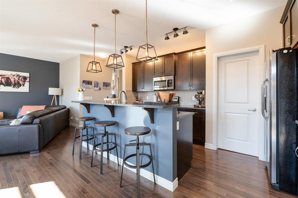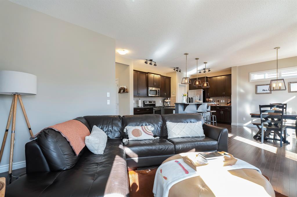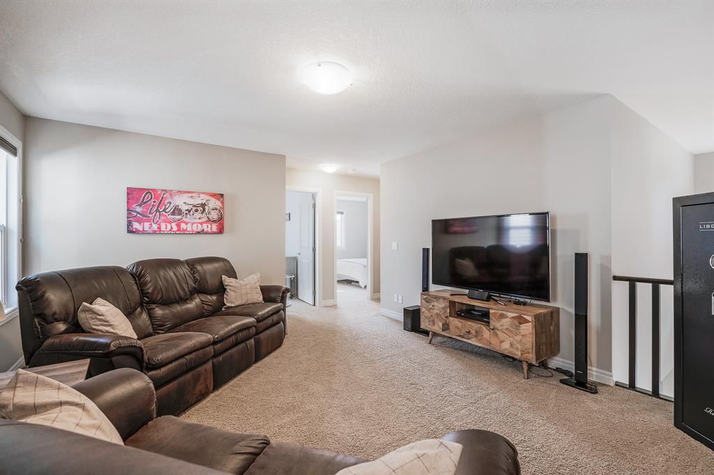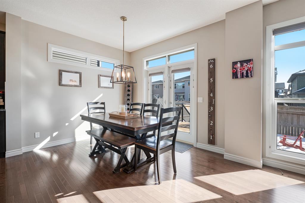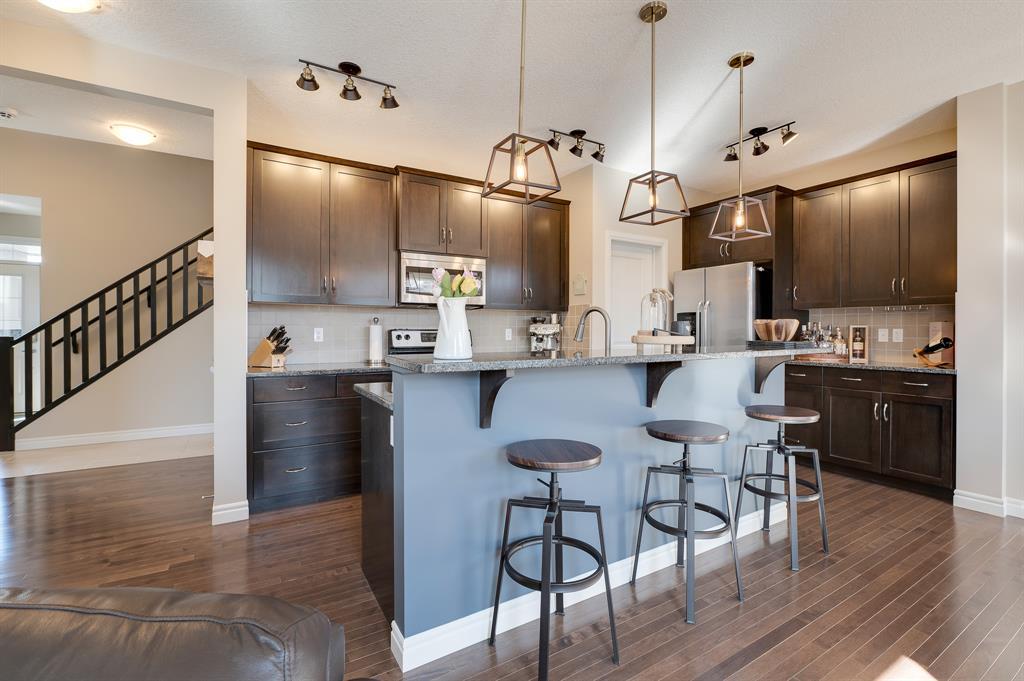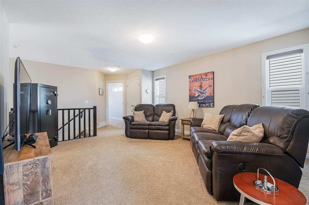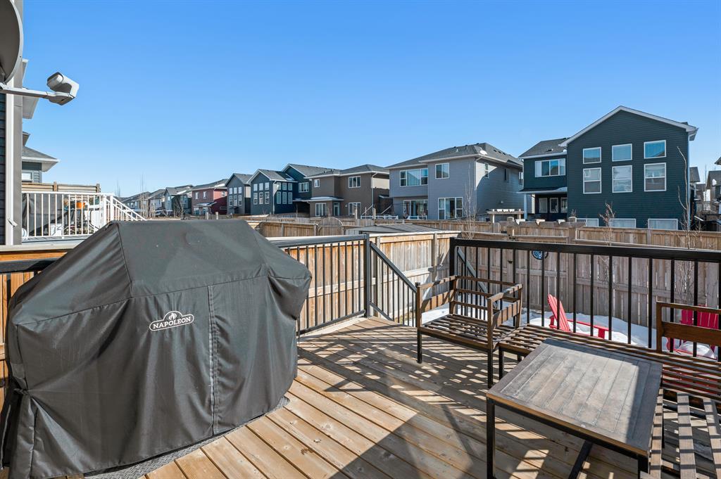Warm, welcoming & well cared for 3 bedroom home in the family oriented community of Evanston, offering nearly 2,200 sq ft of developed living space! The open main level presents hardwood floors & high ceilings, showcasing the spacious living room anchored by a feature fireplace, casual dining area & lovely kitchen tastefully finished with granite counter tops, island/eating bar, plenty of storage, including a large walk-thru pantry & stainless steel appliances. A den/office is tucked away just off the foyer & a mudroom & 2 piece powder room complete the main level. The second level hosts a large bonus room, 3 bedrooms, a 4 piece main bath & laundry room. The primary bedroom features a walk-in closet & secluded 5 piece ensuite with dual vanities, relaxing soaker tub & separate shower. Further features include central air conditioning, a double attached front garage & sunny south back yard with deck. Also enjoy the convenient location, close to parks, schools, shopping & easy access to Stoney Trail. (id:22211)