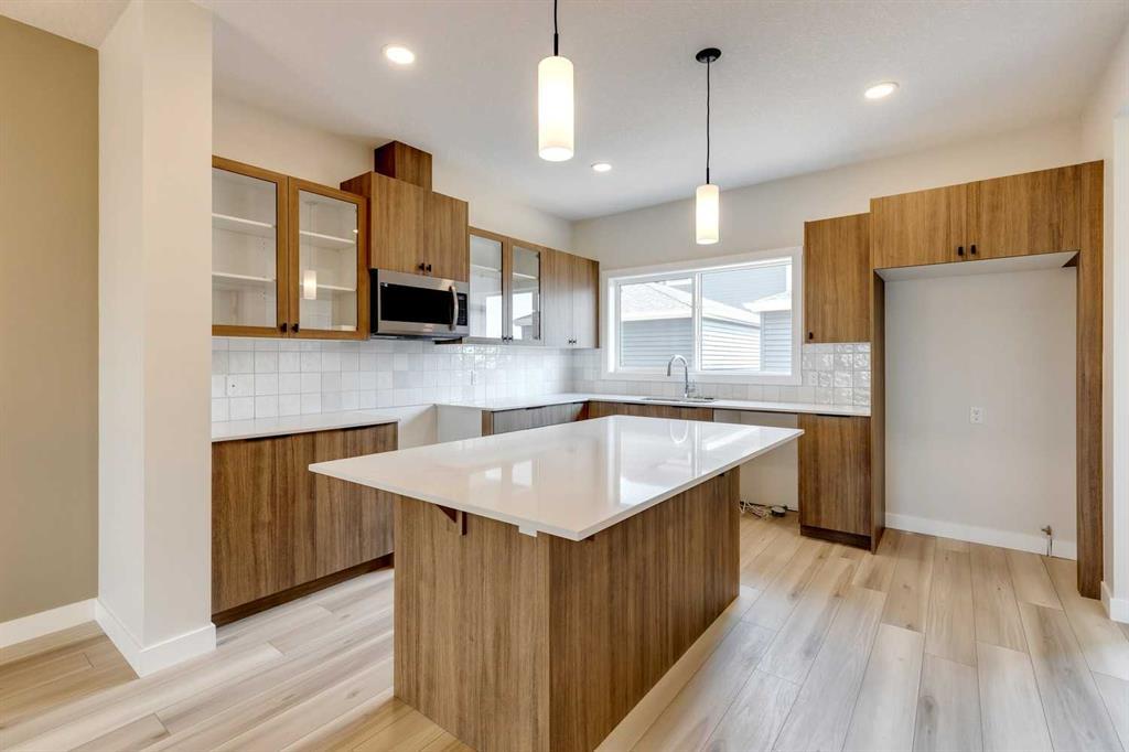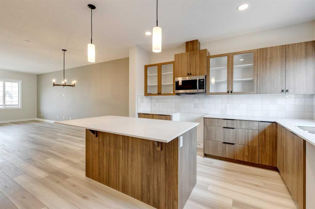 Welcome to “The Delta”, a brand-new attached home built by Shane Homes! With a total of 4 homes available for purchase, this is the perfect opportunity for any investor looking to build their portfolio and generate solid income in the rental market. This outstanding home was developed to the finest standards and highest quality with a fully developed lower legal secondary suite – live up and rent down mortgage helper, nanny or in-law suite! Featuring over 2,082 sq. ft of living space on 3 levels. The front veranda, with park and mountain vista views is the perfect place to enjoy your morning coffee and leads through to the open and bright main floor plan with luxury vinyl plank flooring flowing effortlessly from the front foyer, large living/dining room area and to the spacious gourmet kitchen with top of the line Samsung stainless steel appliance package, quartz counters, custom tile backsplash and custom cabinetry. Large pantry space and 2 piece main bath, and mudroom area providing access to the backyard, deck & double detached garage. The upper level has been completed with a bonus/TV area, 3 bedrooms including the master suite with a large walk-in closet and 3 piece ensuite complete with custom tile flooring, quartz counter, custom cabinetry and oversized shower plus a private laundry area and 4 piece main bath with high quality finishings and soaker tub. The 586 sq. ft lower legal suite features a spacious kitchen with the same high quality finishings as the main including Whirlpool appliance package, living/dining area, bedroom with a large walk-in closet and 4 piece bath including a deep soaker tub plus a separate laundry area including a washer and dryer. Additional features include lighting packages from Carrington, Hardie Board exterior, double detached drywalled garage, front veranda, wired for smart home system. No expense was spared for the luxurious upgrades including upgraded flooring throughout, knockdown ceilings, Delta fixtures, lighting, electric al and all appliances. This lovely home is situated across from a purposed park/green space and within walking distance to a new (to be built) school. Legacy is an amazing family community with 2 new purposed schools, along with recreational amenities, 3 ponds, 10 parks, 4 soccer fields, 3 commercial sites and over 300 acres of protected environmental reserve with 15km of interconnected walking trails, amphitheaters and leisure and recreation space along the escarpment plus a short commute to the mountains, Okotoks and a 20 minute drive downtown! (id:22211)