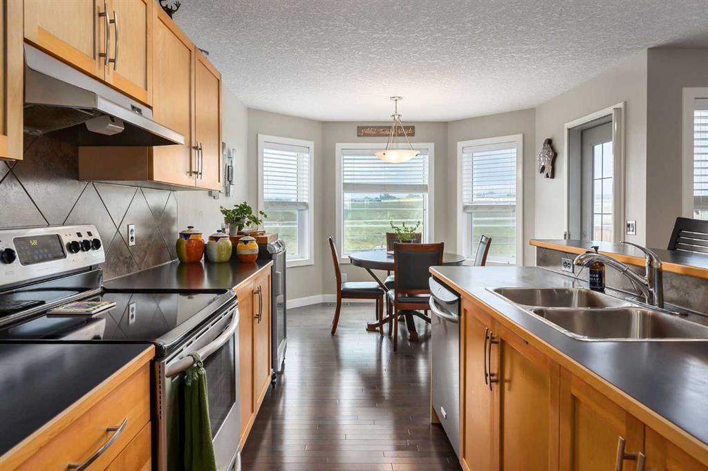 Finally Home! Welcome to this immaculate 2 storey in Bridlewood. Open entry, beautiful hardwood floors throughout the main level. The living room with a cozy gas fireplace kisses the open concept kitchen with Island, stainless steel appliances, walk thru pantry and a dinning area leading out to the deck! going thru the Pantry takes you to a beautiful mudroom which leads to the double attached garage or the basement. a extra door will actually lead you back to the front entry way and stairs which is a pleasant surprised. Up the carpated stairs you'll find a spacious bonus room, primary bedroom with 5 piece ensuite, including his and her sinks! Plus two more good sized bedrooms and a 4 piece shared bath! The partially finished unspoiled basement is currently set up to make it the way you want with the roughed in plumbing as well! There are so many different ways you could use this extra space! The large fenced backyard has a beautiful large deck perfect for entertaining. A stone patio for enjoying some nice summer nights! The roof was replaced in 2022, new back siding & screens as well. Close to all amenities, schools, shopping and public transit! did I mention no one behind you! (id:22211)