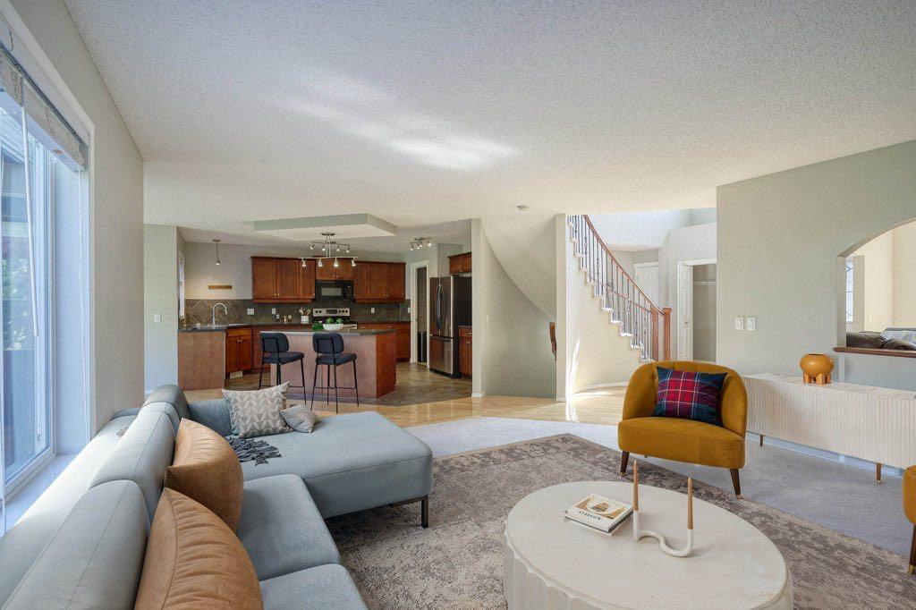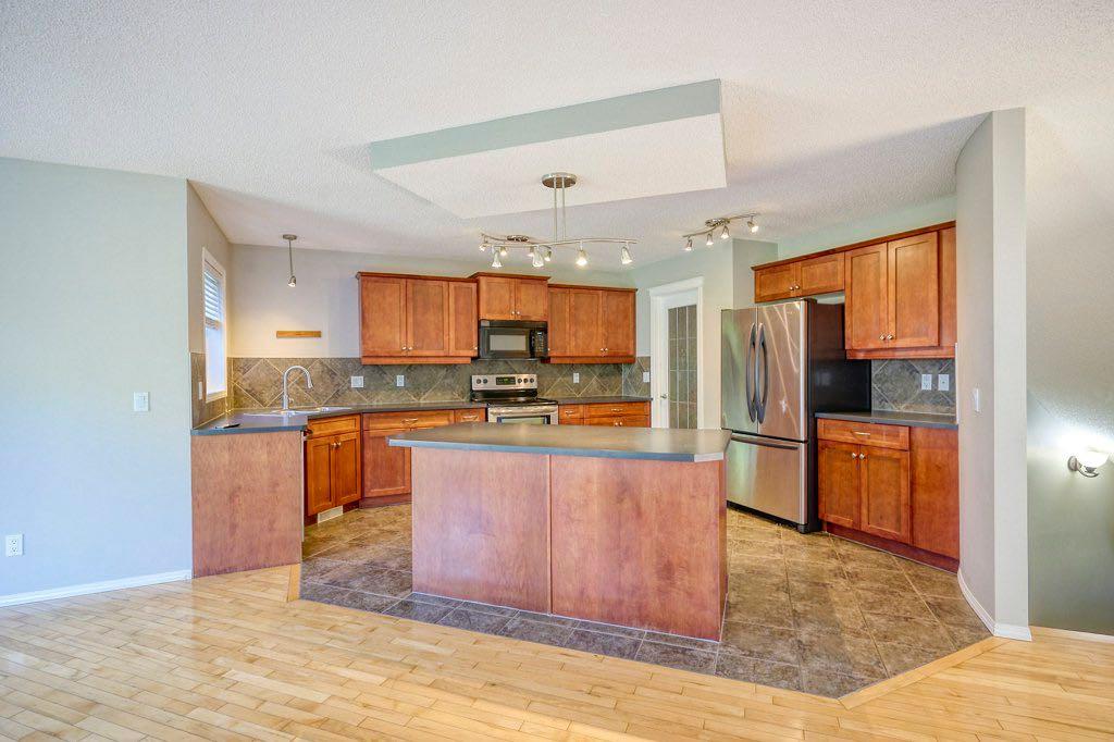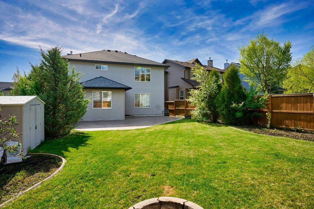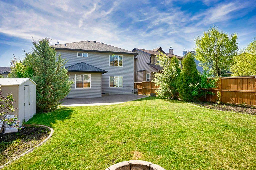 HIGH CEILING. THE MAIN LEVEL FEATURES A 9 FOOT CEILING, A DEN, A LARGE FAMILY ROOM WITH A TILE SURROUNDED BUILT-IN GAS FIREPLACE, A DINNG ROOM WITH A VIEW ON THE MAGNIFICENT PRIVATE WEST FACING BACKYARD. LARGE PATIO. THE KITCHEN FEATURES A WALKTHROUGH PANTRY, AN ISLAND FOR YOUR CASUAL DINING, PLENTY OF CABINETRY, STAINLESS STEEL APPLIANCES, AND LOVELY TILE BACKSPLASH. THE UPPER LEVEL FEATURES 3 LARGE BEDROOMS, AND A FULL BATHROOM. THE PRIMARY BEDROOM OFFERS A VIEW ON THE LARGE WEST FACING BACKYARD, AND FEATURES AN ENSUITE WITH 2 SINKS, A WALK-IN CLOSET, SEPARATE SHOWER AND SOAKER TUB. THE FULLY DEVELOPED LOWER LEVEL FEATURES A HOME THEATRE, EQUIPPED WITH A PROJECTOR, AND BUILT-IN SPEAKERS. A BAR, A FULL BATHROOM, A LARGE STORAGE AREA, AND A DEN. CENTRAL AIR CONDITIONING. HOT WATER ON DEMAND. CLOSE TO PARKS, WALKING PATHS, SCHOOLS, SHOPPING, AND C.O.P. EASY DOWNTOWN ACCESS WITH BOW TRAIL. CLOSE TO STONEY TRAIL.