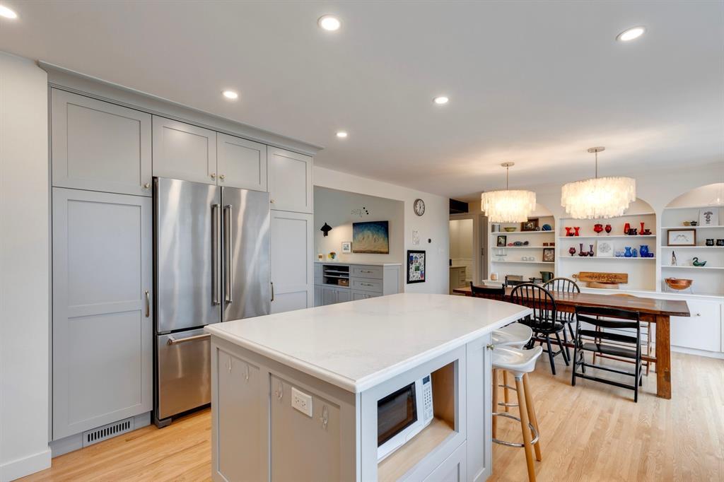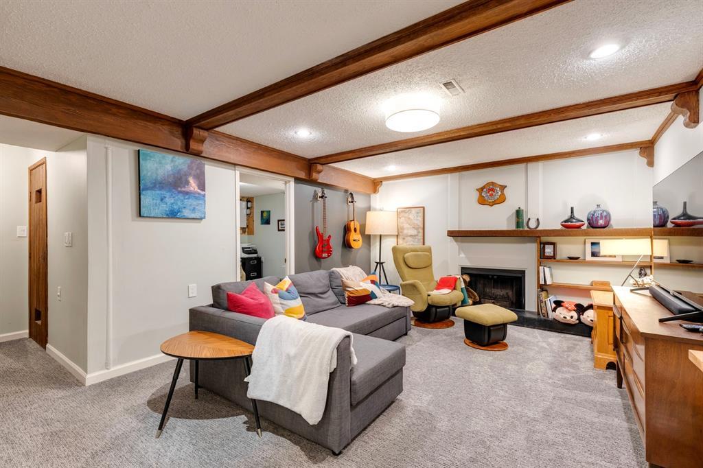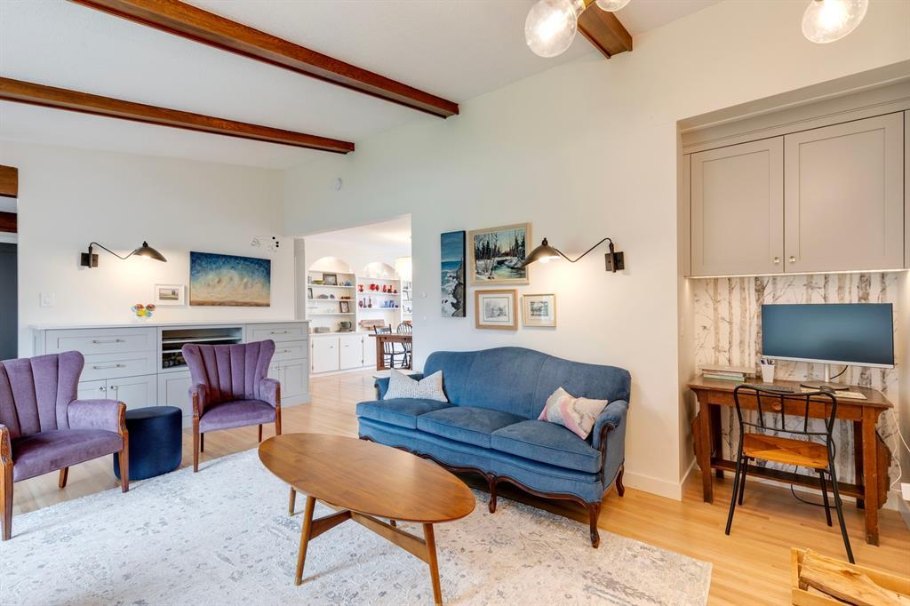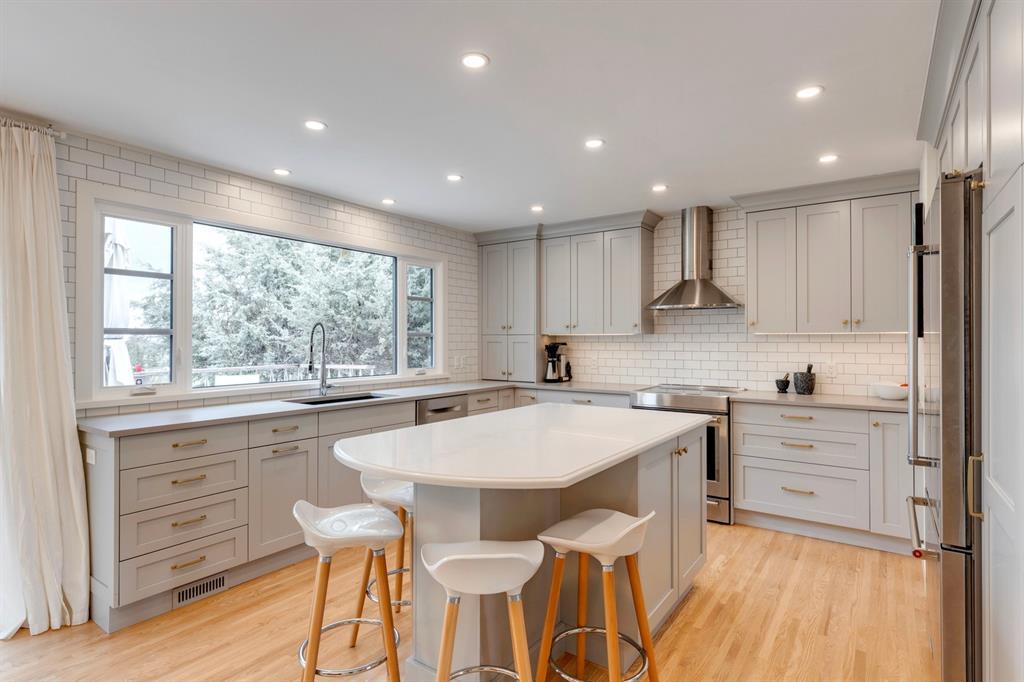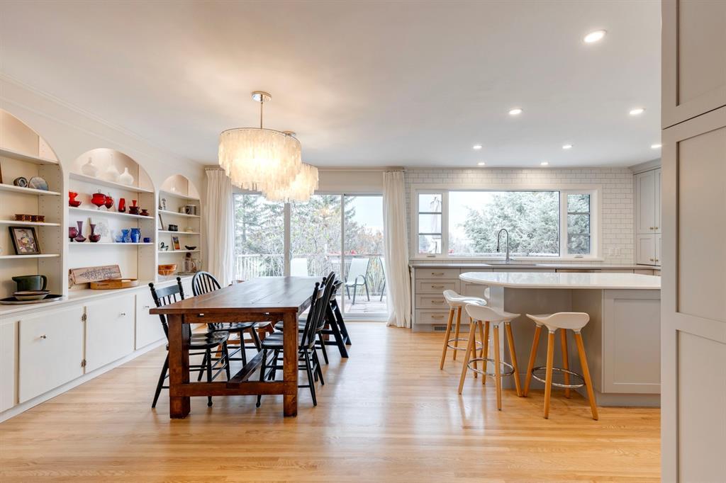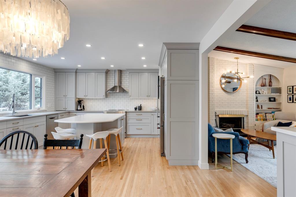 Welcome to this Renovated Oakridge Gem in the heart of one of Calgary’s premiere and most sought after neighbourhoods! Backing onto a massive green space and located on a quiet street, this renovated bungalow offers 4 bedrooms & 2 bathrooms with over 1300sf of main floor living space in addition to 780 sf of developed basement space with potential to finish more. The tandem driveway, which leads to the single garage, offers space to park at least 3 vehicles. The private backyard is fantastic with room for the kids to play, mature trees, and room to garden. The rear gate leads to the soccer field & baseball diamond of Oakhill Park, with large trees and lots of space to explore. As you enter the home you will notice the stunning, refinished hardwood floors which flow throughout the main level. The handsome living room with wood burning fireplace, is bright and cozy, with amazing built ins, including a corner nook. The Legacy Kitchen (2020), open to the dining room, is an absolute stunner. Loads of practical storage, an island to belly up to, stainless steel appliances and beautiful lighting ensure anyone would be proud to call this place home. There are 3 bedrooms on the main, with 2 fully renovated bathrooms (2021) including the primary ensuite. The basement, like the upstairs is an amazing family retreat with a second wood burning fireplace in the living room, 4th bedroom, a dedicated office space, laundry area with sink, large rec space and much needed storage. Plenty of recent updates completed so you can move right in. The furnace was installed in 2022. Hot water on demand system 2021. Upstairs windows were installed in 2020. The roof in 2010. Access to Stoney Trail, grocery stores, South Glenmore Park are all 5 minutes away. This location is ideal for families with the highly ranked Louis Riel school (K-9) a mere 5 minute walk away. What an amazing and rare opportunity to build memories in this tight knit community. (id:22211)