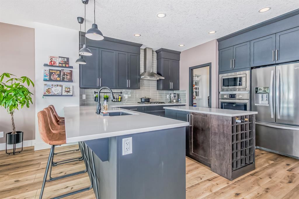Backing onto a LARGE GREEN SPACE, located in a QUIET cul-de-sac, with 4 BEDROOMS UP, a BONUS room and a fully DEVELOPED basement with 5th bedroom, 3rd full bathroom and SEPARATE SIDE ENTRANCE. A true family home offering almost 3400 sq ft of total living space! The main floor offers brand NEW vinyl plank flooring (fall 2022), a refinished kitchen with QUARTZ countertops, a gas cook-top, and a NEW oven (fall 2022). Furthermore, the main floor has an OFFICE and offers great open views into the WEST FACING backyard and the large GREEN SPACE beyond. The large walk-through pantry connects the kitchen to the mudroom and double attached garage. A 2pc bathroom and new blinds (fall 2022) completes the main floor. Upstairs, you’ll find the spacious main bedroom which enjoys the views on the green space, the 5pc ensuite with standalone shower, 3 more -good sized- bedrooms, a full bathroom and the bonus room. The entire upper floor has brand NEW carpet (fall 2022). The laundry room has a NEW washer & dryer (fall 2022). The basement offers the 5th bedroom, a full bathroom and a wet bar with refrigerator and dishwasher. With the SEPARATE SIDE ENTRANCE it can easily be used as a mother-in-law or nanny SUITE. The basement also features a home theater and brand NEW vinyl plank flooring (fall 2022). Located in a quiet cul-de-sac with no direct neighbors to the south. Mahogany is a great lake community and Masters Green is minutes from the Mahogany Beach Club. (id:22211)