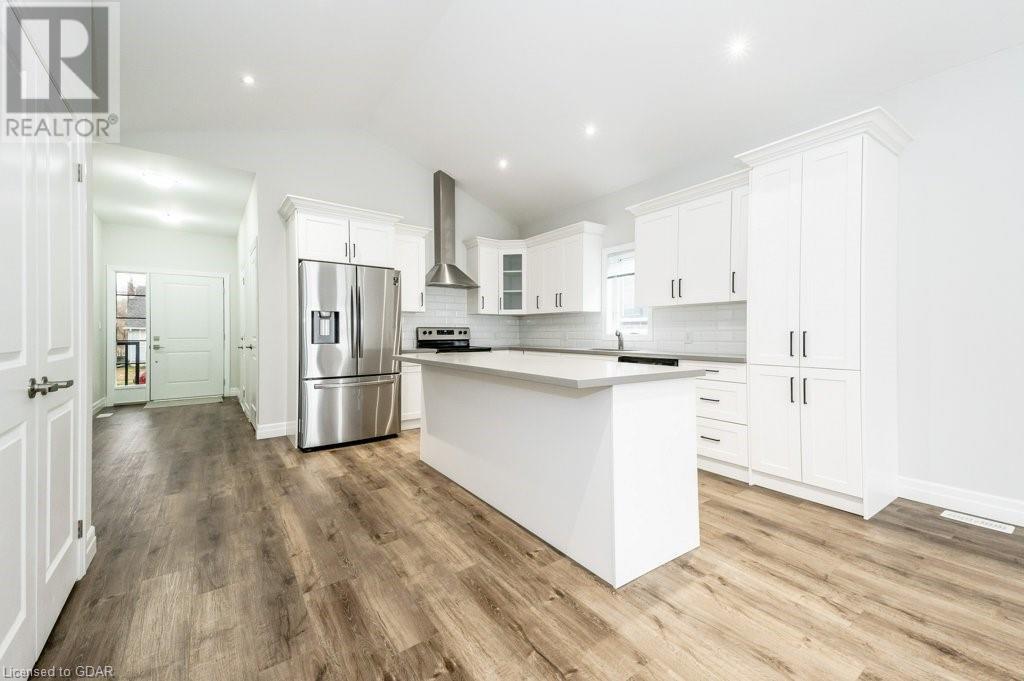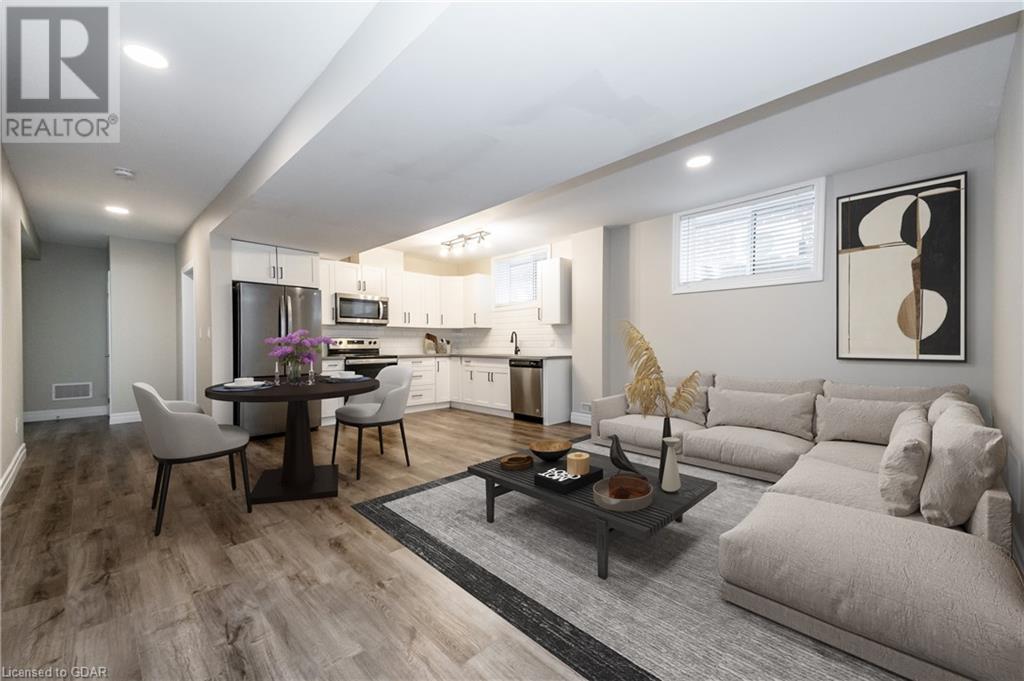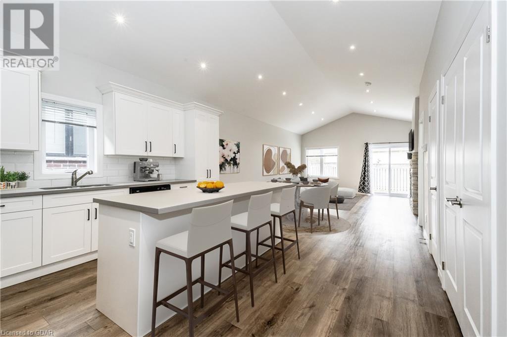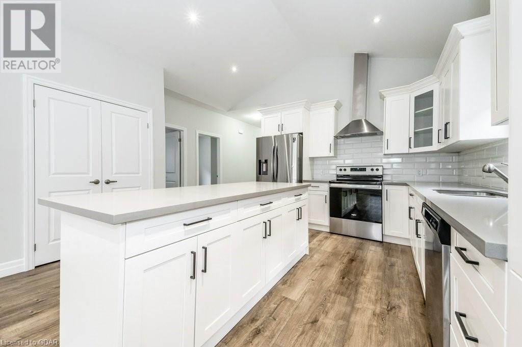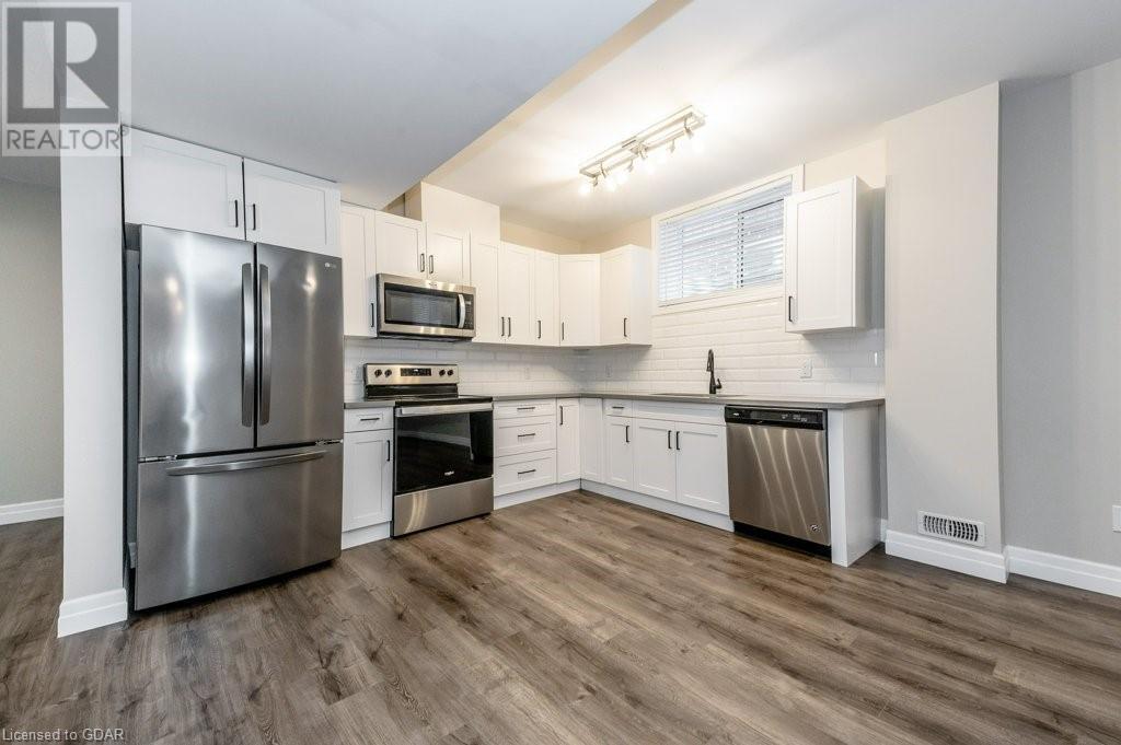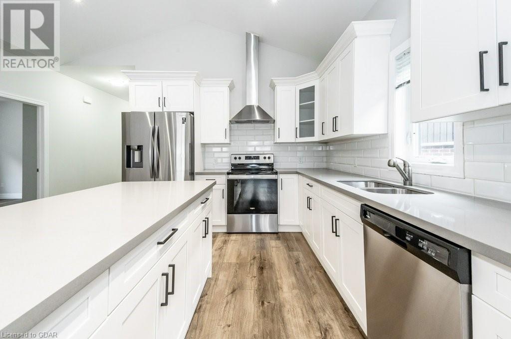 Exceptional, gorgeous 5 bedroom bungalow with accessory apartment on quiet Preston Street. This fully tenanted home with huge income potential will wow you. From the concrete drive, walk up to the front door and into the big bright foyer. Drenched in sunlight this open concept main floor is impressive. Bright white kitchen cabinetry and backsplash, quartz countertops, stainless appliances, luxury vinyl flooring, huge island with seating. The living room boasts vaulted ceilings with pot lights, gas fireplace, and oversized windows and walkout to the rear yard. Off the living area, three generous bedrooms including a primary with walk in closet, and a large main bath with gorgeous subway tile shower/bath. This fabulous main floor also boasts loads of storage, walk out to garage and steps down to a basement area with private laundry, separate furnace, hydro panel, owned hot water on demand and air conditioning. Each unit also has their own air exchanger. From the front, side of the home, a private entrance leads you down to the equally impressive accessory apartment. High ceilings, oversized windows, 2 generous bedrooms, 4pc bath, large open concept kitchen/living/dining area...prepare to be impressed. This kitchen is gorgeous as well with bright white soft close cabinetry, quartz countertops and stainless appliances. Separate utilities and laundry. (id:22211)