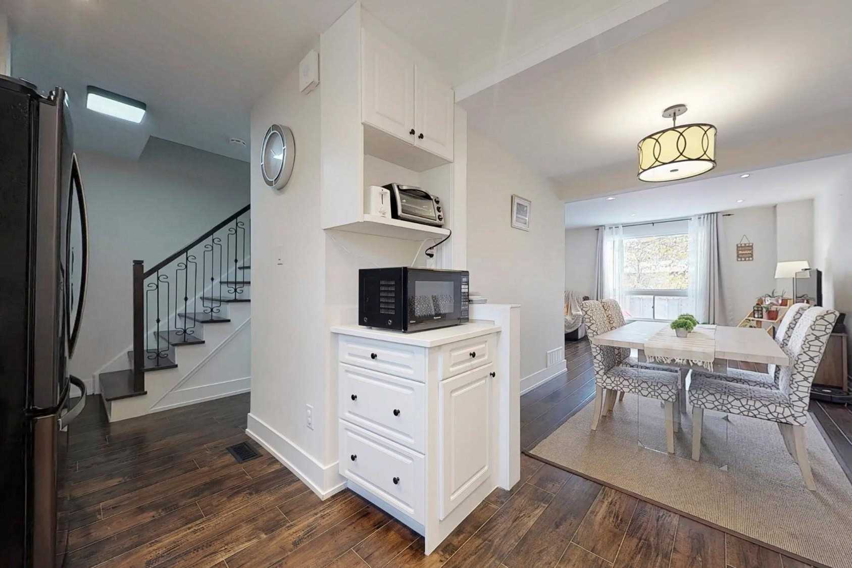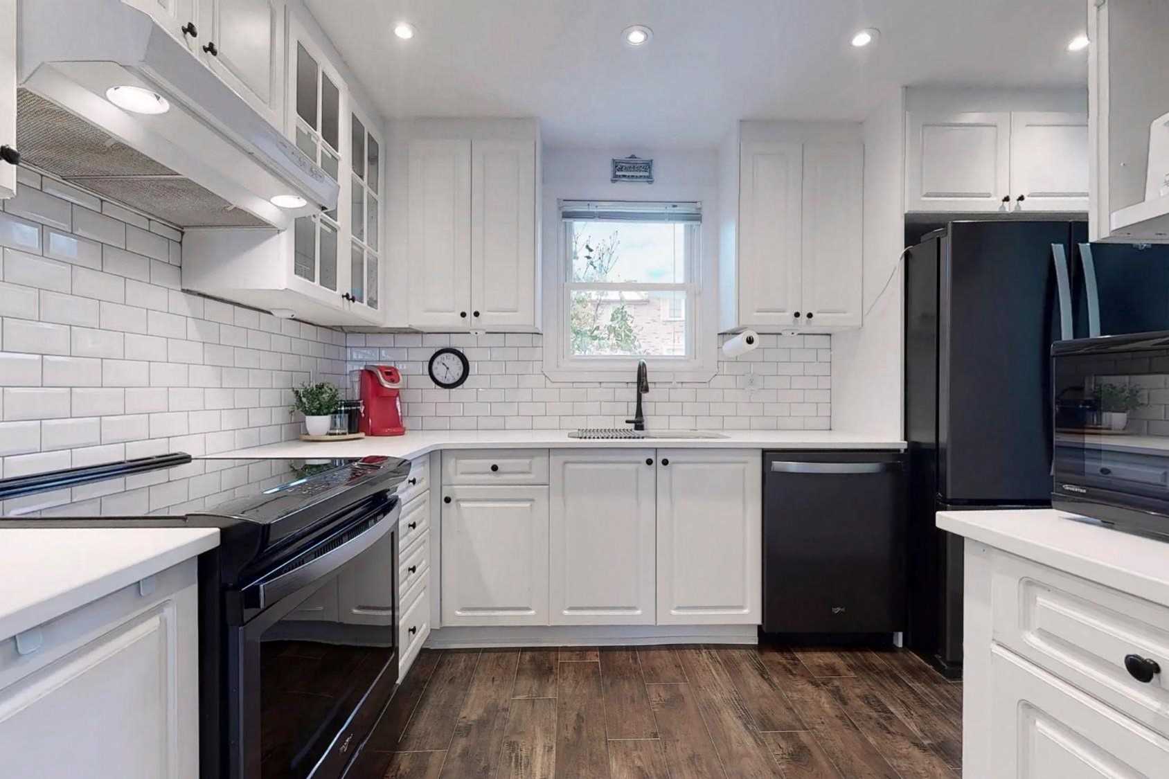 Beautiful End Unit Condo Townhouse In Pristine Condition! Kitchen Offers All Desirable Features, Including Quartz Countertop, Black S/S Appliances, Backsplash, Lots Of Cabinetry, Double Sink. Immaculate Dining & Living Room With Dark Flooring, Walk Out To Balcony. Wooden Stairs. Spacious Primary Bedroom, With Two Windows; 2.5 Bathrooms. Cozy Basement For Extra Living Space. Desirable Location Close To Westgate Centre Shopping Mall. Black S/S Appliances: Fridge, Stove, B/I Dishwasher, Washer & Dryer. All Elf's. Excluded All Window Curtains And Water Softener.