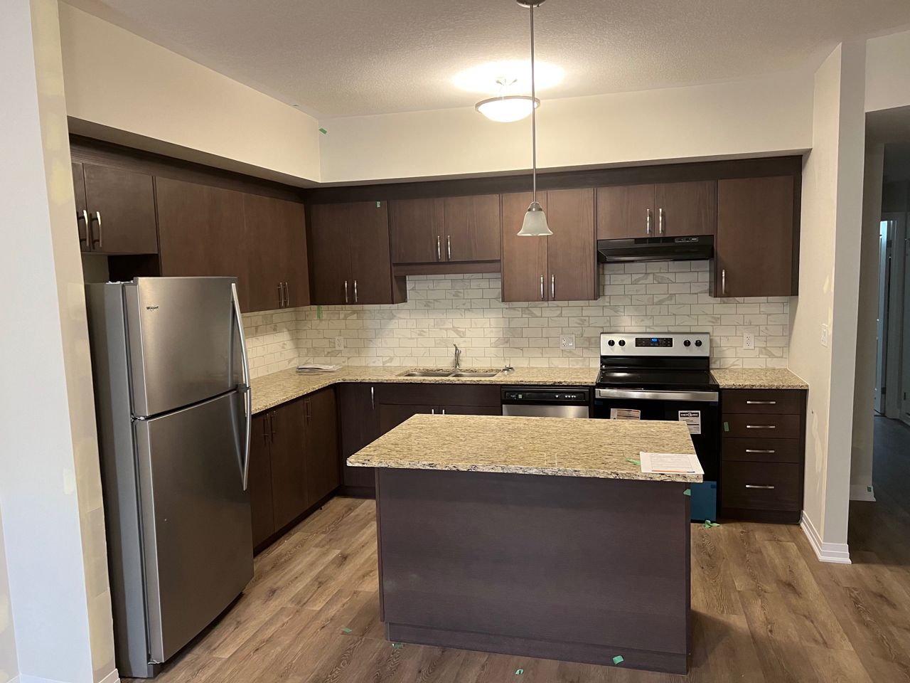 Ground Floor Brand New Townhouse Located In High Demand Area, Hespeler Near The 401! Features 3 Beds, 2 Baths, Modern Open Concept Living/Dining/Kitchen With Stainless Steel Appliances And Quartz Counters/Backsplash Stunning High End Laminate Floors. Spacious Master Bedroom, Beautiful 4 Piece Bath. Tenant To Pay UtilitiesAll Existing Light Fixtures And, Fridge, Stove, B/I Dishwasher And Washer Dryer Combo