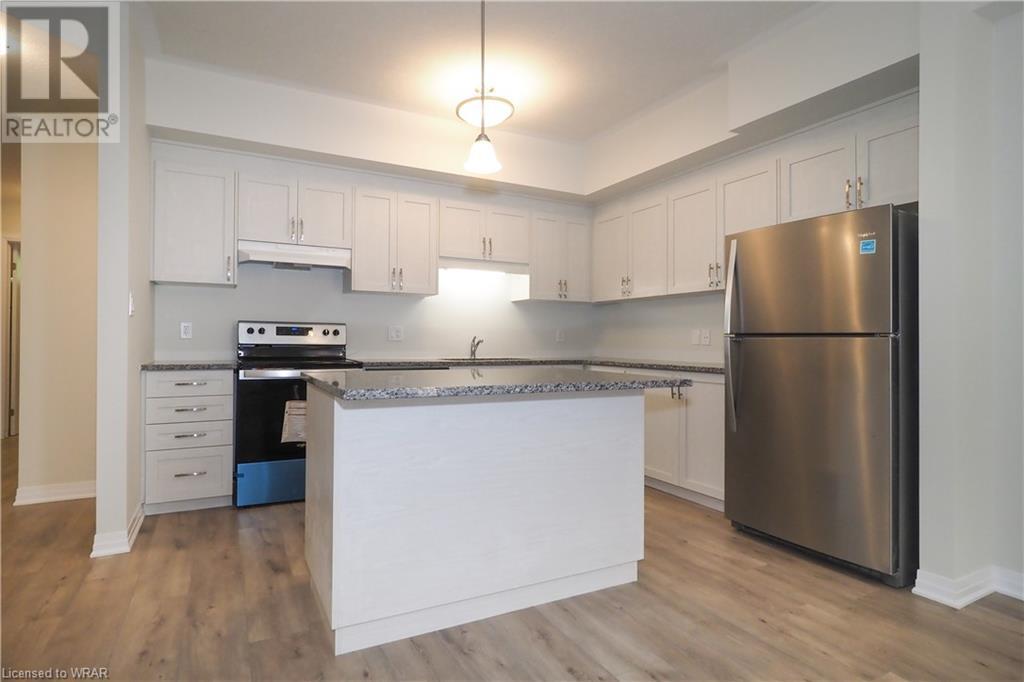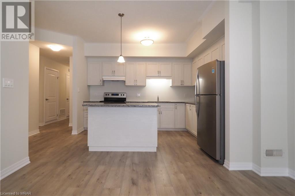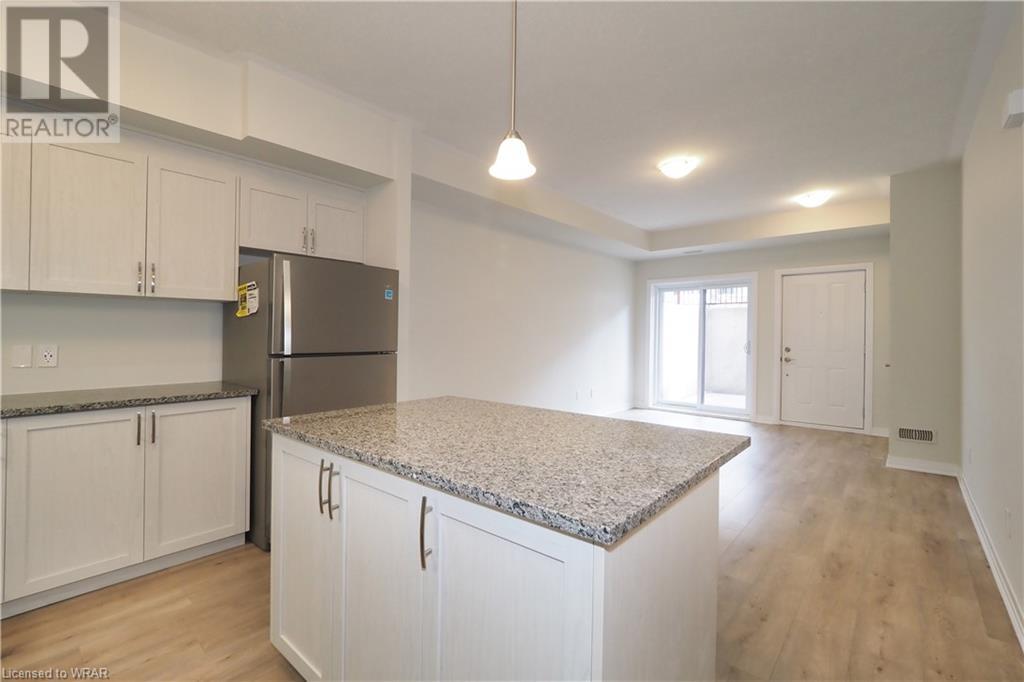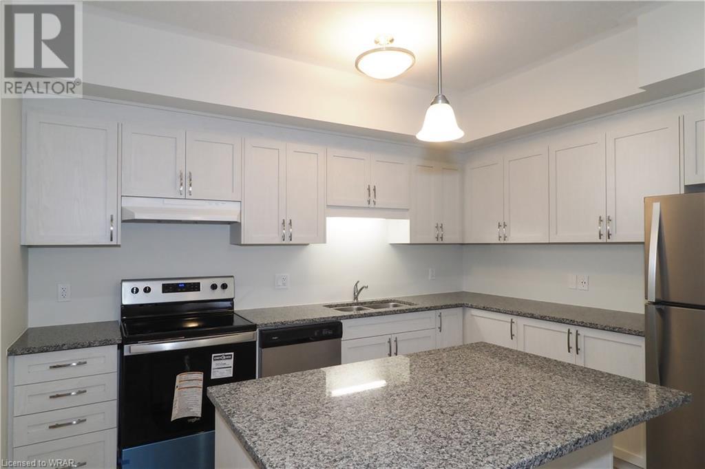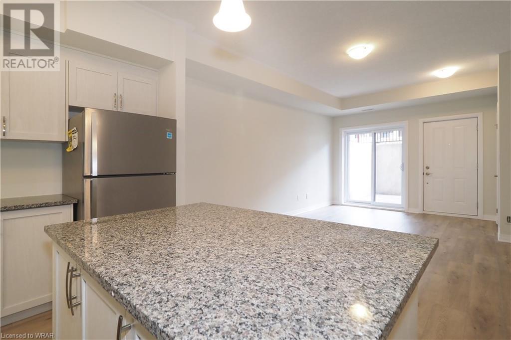 Introducing a newly constructed stacked townhouse offering three bedrooms and two bathrooms, complemented by a private patio. Step inside this spacious living area, adorned with lofty 9-foot ceilings and a well-appointed glass sliding door that invites an abundance of natural light. The kitchen is a culinary haven, featuring a central island, ample cabinet storage, pristine stainless steel appliances, and elegant granite countertops. The primary bedroom is a retreat in itself, offering a generously sized walk-in closet and a three-piece ensuite bathroom. Furthermore, the unit comprises two more generously sized bedrooms, convenient in-unit laundry facilities, and a four-piece bathroom. This stacked townhouse is perfectly situated adjacent to a verdant greenspace and enjoys a convenient location near the Cambridge Centre shopping mall, multiple schools, the tranquil Grand River, Galt Country Club, Downtown Cambridge, and easy access to the 401 highway. Move in ready !! (id:22211)