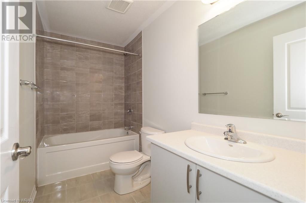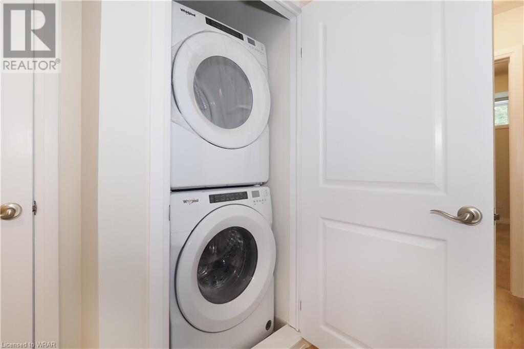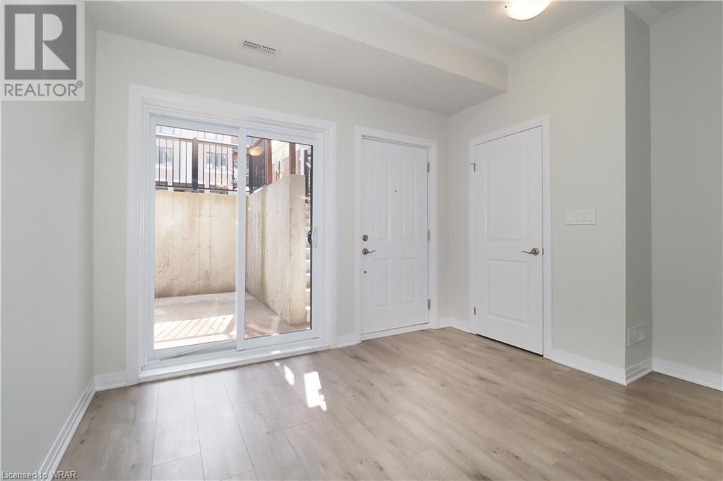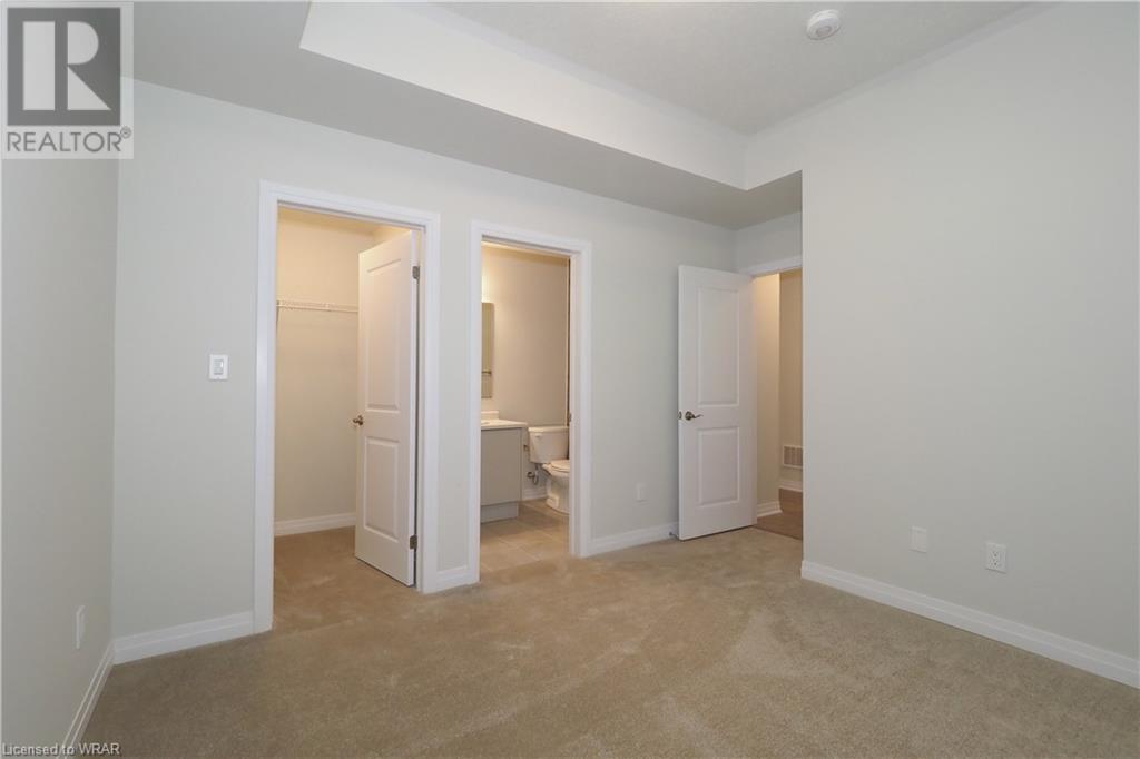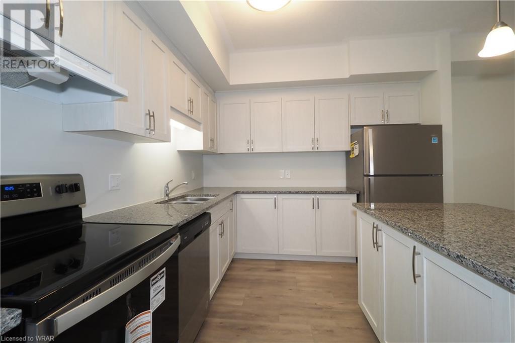 Introducing a newly constructed stacked townhouse offering three bedrooms and two bathrooms, complemented by a private patio. Step inside this spacious living area, adorned with lofty 9-foot ceilings and a well-appointed glass sliding door that invites an abundance of natural light. The kitchen is a culinary haven, featuring a central island, ample cabinet storage, pristine stainless steel appliances, and elegant granite countertops. The primary bedroom is a retreat in itself, offering a generously sized walk-in closet and a three-piece ensuite bathroom. Furthermore, the unit comprises two more generously sized bedrooms, convenient in-unit laundry facilities, and a four-piece bathroom. This stacked townhouse is perfectly situated adjacent to a verdant greenspace and enjoys a convenient location near the Cambridge Centre shopping mall, multiple schools, the tranquil Grand River, Galt Country Club, Downtown Cambridge, and easy access to the 401 highway. Move in ready !! (id:22211)