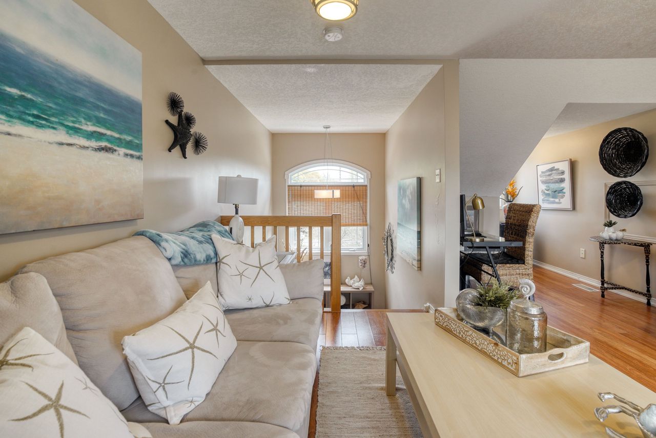 ONE-OF-A-KIND 1966 SQFT LUXURY TOWNHOME - This pristine home has all the bells and whistles! Hardwood flooring, elegant light fixtures, sleek stainless steel appliances and a convenient corner pantry. Outdoor enthusiasts will enjoy 3 outdoor living areas, including a spacious deck with a custom awning, composite decking and gas BBQ, perfect for hosting summer barbecues or enjoying a quiet read. The second floor is dedicated to comfort and relaxation, with 2 generously sized bedrooms and 2 full bathrooms. One of the bathrooms has been tastefully updated with a luxurious ensuite, providing a private retreat. The bright third floor features an open balcony overlooking the city; this unique loft space offers versatility to create a home office, bedroom, or entertainment area according to your needs. The bright recreational space has two large windows and is perfect for entertaining. Enjoy direct access to the garage via the separate laundry/mud room. Don't miss the opportunity tomake this impressive townhouse your new home. Schedule a viewing today and discover the potential this exceptional property holds for you!