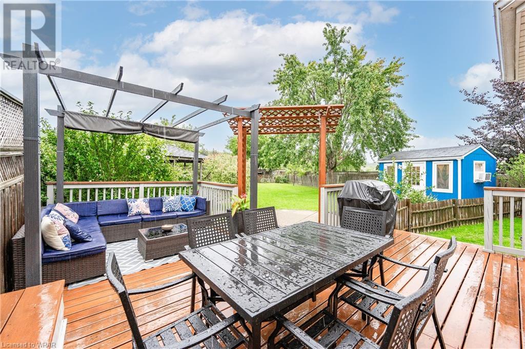 YOU ARE NOT GOING TO WANT TO MISS THIS ONE! A considerable .22 acre lot nestled on a quiet cul-de-sac in the desirable East Galt neighbourhood of Branchton Park. Pride of ownership is evident in this move-in ready semi-detached home. You’ll find ample closet space in the front foyer with two closets as you enter. Moving throughout the main floor are the living room and the dining room, which is open to the bright kitchen with lots of cabinet and counter space. The large sliding doors lead you to the outdoor dining area, deck and patio, ready for entertaining or your morning cup of coffee as you take in the lovely gardens and the pond! Two sheds are out back with hydro; one is currently finished as a beautiful home office(wired with Ethernet). Upstairs is the sizeable primary suite with a walk-in closet, two additional bedrooms, and a full bath. The basement offers floor-to-ceiling storage cabinets, a finished family space and a half bath. This home has so much to offer and is finished top to bottom, with many updates throughout, including new windows; please be sure to reach out for a complete list! Close to all amenities, schools, parks and shopping. (id:22211)