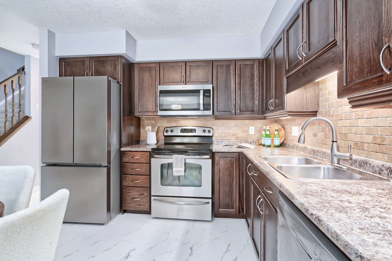 欢迎来到这座经过美观升级的永久产权联排别墅,它位于剑桥市最适合家庭居住的社区之一。 随时入住,拥有广泛的升级:全新的炉子、空调、楼上地毯和主层地板(2025年);全新洗衣机和冰箱(2025年);全新灯具(2025年);全新屋顶(2022年);以及,整屋粉刷。步入明亮开放式主层,带有一个生活区外的甲板。 楼上是三间卧室,包括宽敞的主卧套房。 地下室已经铺设了底层、框架,以及初步完成的浴室——可以根据您的喜好进行完善。 每月物业费160加元,包括割草和铲雪,还可以租用额外的停车位。 内有车库入口和充足的储物空间。 这栋房子配有现代化的电器,明亮且实用,距离公园、戏水池和步行道仅几步之遥,距离401公路仅几分钟。 在剑桥市享受现代生活、温馨社区和卓越价值的难得机会。