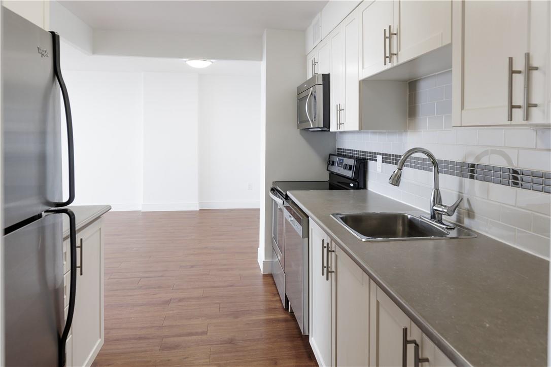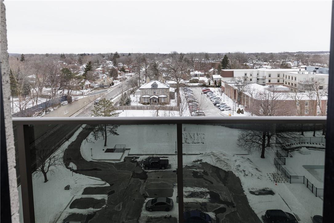 Stunning 2-bedroom 1 full bath unit located downtown Cambridge! Boasting approximately 900 square feet and situated on a high floor of a quiet building, this unit is move in ready! There is a great open concept floor plan with vinyl flooring and plenty of storage space! The kitchen features solid wood cabinetry, large counters and stainless-steel appliances. The kitchen opens to the oversized family room with plenty of natural light and a good-sized balcony with a stunning view! There are 2 bedrooms including the primary bedroom which has a large closet and a spacious second bedroom with large windows. The four-piece bathroom is located right beside the primary room. Plenty of room to entertain while enjoying hotel style amenities featuring a gym, large social room with kitchen & library, shared laundry and an outside pool. Steps to The Grand River, downtown, restaurants, shopping and much more! Parking available if required. (id:22211)