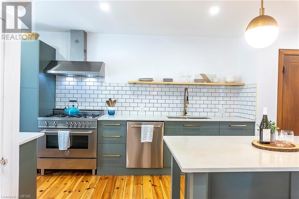 A beautiful turnkey midcentury home fully updated from top to bottom in the heart of historic West Galt. This is not a flip, this is a family home lovingly restored with too many upgrades to list and pride of ownership throughout. This home holds that perfect blend of historic charm and modern elegance that immediately feels welcoming. A stylish kitchen with stainless steel appliances and a gas stove opens onto your living room making it easy to entertain or curl up with a good book by the fireplace. Hardwood floors throughout and concrete countertops are just two of the features making this space so desirable. The upstairs includes a full washroom and two comfortable bedrooms. The fenced mature back yard includes a new deck (2022), gardens, a garden shed, and plenty of room to play. The carport protects your vehicle from the elements, but opens on both sides so that four cars can easily park in your driveway. In the basement there is a partially finished two-piece washroom with rough-in for shower, partially finished office (which could easily be a legal bedroom with addition of a door), and all the space perfectly primed to be fully finished. Furnace, AC, and HVAC new in 2022. Updated electrical (2022), updated plumbing (2023), and spray-foam insulation (2022) are just some of the improvements ready to make this an easy move for you. (id:22211)