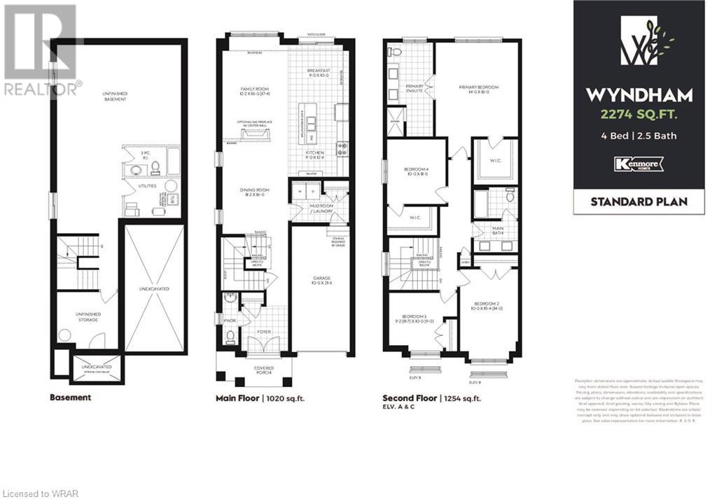 TO BE BUILT - Award Winning Kenmore Homes presents - Westwood Village, Cambridge - Now building 30' Modern Family Homes - 4 models to choose from, each with 3 unique front elevations. Shown here is the 2274sft Wyndham Elevation A with the standard floorplan. This impressive layout starts from the double door entry with large foyer, to the 'U' staircase 'Open to Above'. A 9' main floor with 8' interior swing doors has great living space with main floor laundry, large dining room and a family room that's open to the kitchen great for entertaining. The kitchen includes 7' island with breakfast bar, quartz countertops, and a pantry. The laundry/mudroom is conveniently placed between the garage and kitchen. The second floor layout offers 4 large bedrooms. The bright primary bedroom has an oversized WIC and large ensuite with tile shower and double sinks. The main bath features double sink and a private water closet. All homes complete with carpet free main floor, kitchen cabinetry with soft close hinges and slides, a high efficiency gas furnace, ERV, Wifi programmable thermostat, wood handrails with metal balusters, 3 pce basement rough-in. Other floorplan options and upgrades are available to purchase. Closing Late 2024. (id:22211)