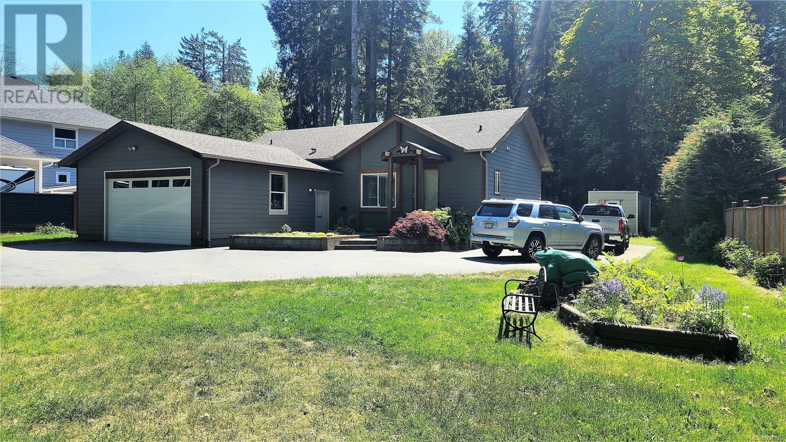 Here is a newer 1,339 square foot rancher set on a manicured 0.72 acre park-like property across the road from Campbell River and Canyon View trail. This lovely home offers a spacious layout and the home is set back off the road behind a fenced front yard for peace and privacy. There is a fantastic functional floor plan featuring 3 bedrooms and 2 full bathroom, and an oversized double garage with room for 2 vehicles plus workshop space. The large 3/4 acre lot is beautiful, with mature landscaping and your own tranquil greenspace with a creek in the back yard. Tons of parking, including a fully-serviced RV parking spot and room to turn around so road access is easy. Other great features include 9 foot ceilings, new kitchen appliances, economical heating and cooling with a new heat pump, detached wired storage/workshop and a new diesel generator for those rare outages. Wonderful rural living just steps to some of the Island's best trails and river fishing, and only minutes to town. (id:22211)