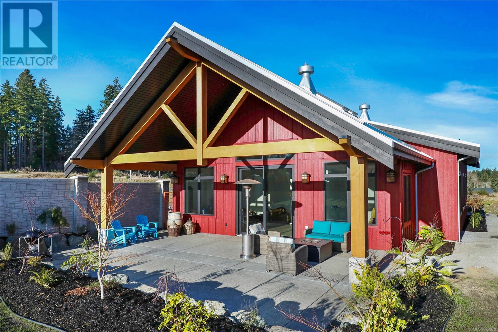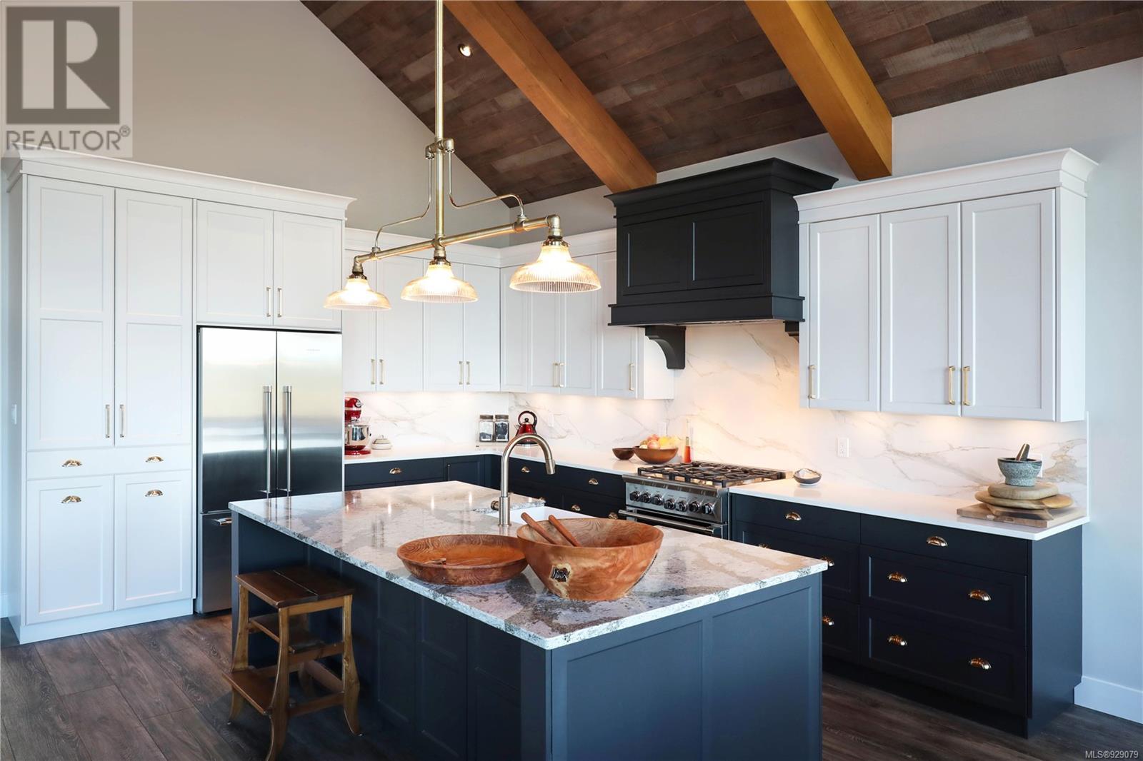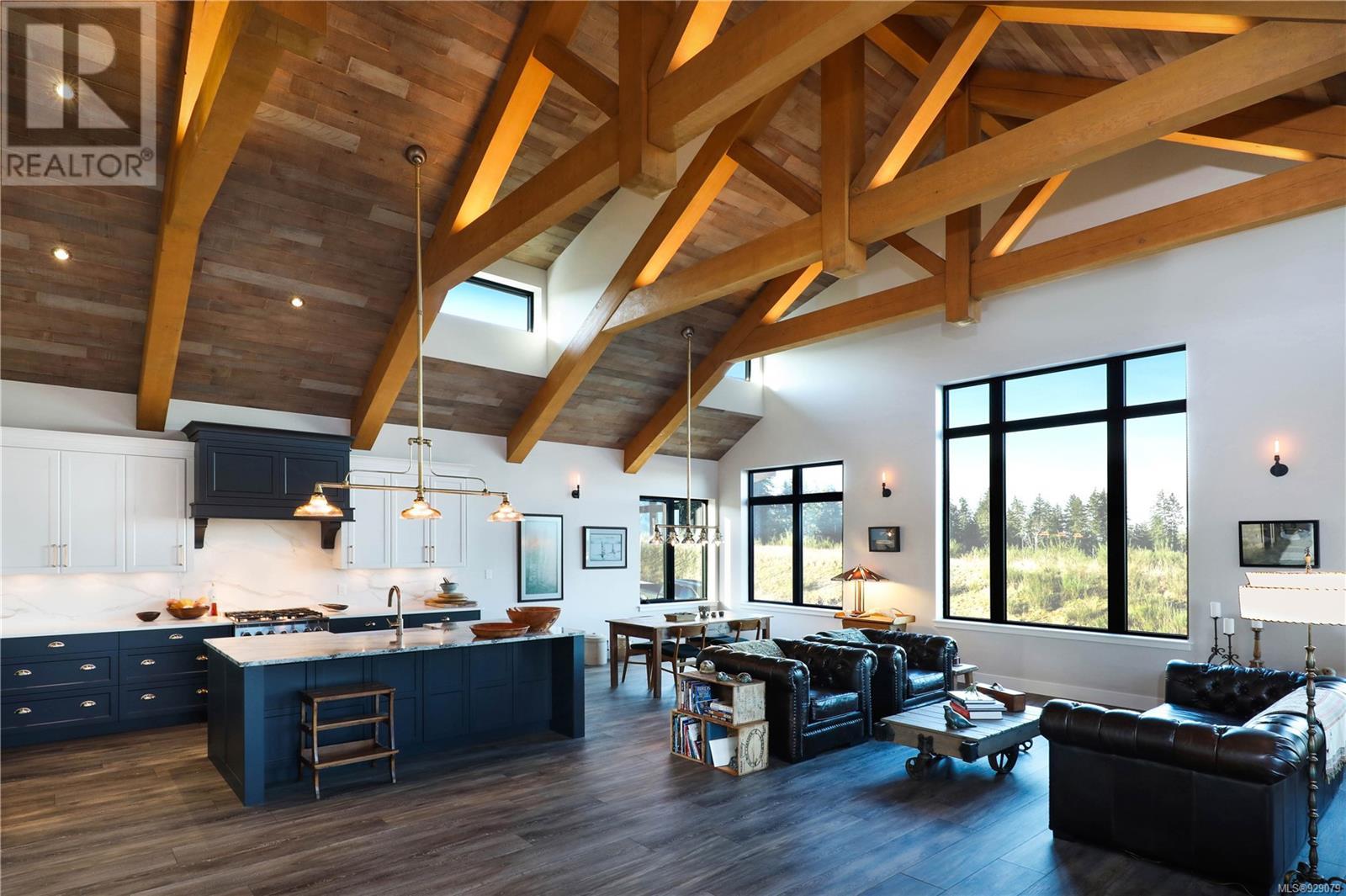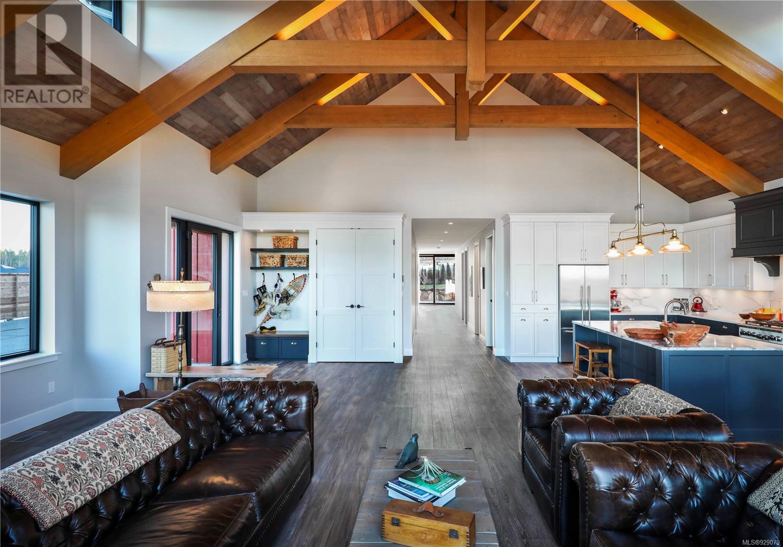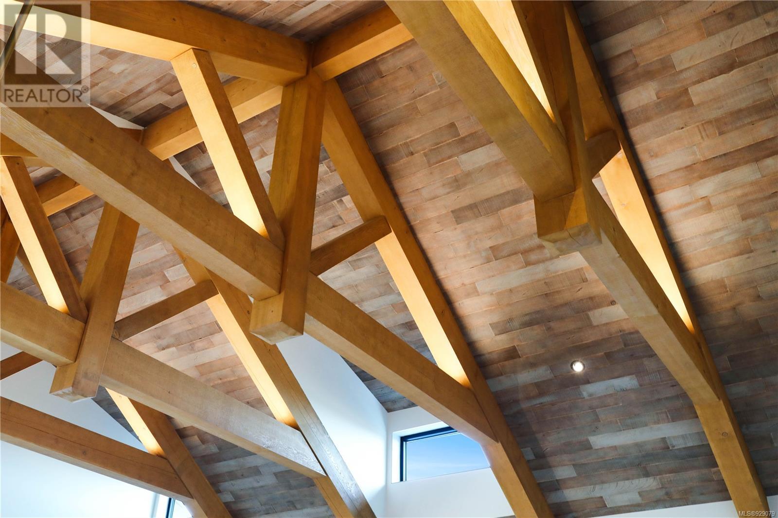 Rare, award winning bespoke ocean view rancher with soaring vaults on one third of an acre with panoramic mountain and ocean vistas in neighbourhood of stately homes a few blocks from local beaches. This property was built by master craftsmen and it shows in every detail, it is truly a piece of art. You think I am exaggerating? Imagine handcrafted light fixtures from eastern Europe, king post timberframed beams made from local old growth fir, porcelain from Italy and the list continues. Not only is it gorgeous, it offers award winning energy efficiency and impressive with galvalume metal roofing, euroline windows + doors and the rear yard is wrapped in a concrete sound wall for ultimate privacy and escape. Generous high efficiency windows flood all living spaces with beautiful natural light throughout all of our seasons. Enjoy 2700 square feet, three bedrooms, two bathrooms and enough timeless character to tell a beautiful story. A unique layout allows two primary bedrooms which both share an impressive en suite bathroom. Don’t miss the butler pantry which is perfect for fermenting and other favourite culinary pursuits. The heated garage features an oversized 12 ft door, humidity control and is currently divided to allow a lovely home gym. Southern exposed patio is massive, mostly covered and features natural gas hookup and is wired for a hot tub. Even the exterior layout is intentionally functional with multiple gates to make ATV toy and equipment access possible. You’ll enjoy this quiet area with easy access to Willow Creek Nature Trust trails and our never-ending coastal shoreline. (id:22211)