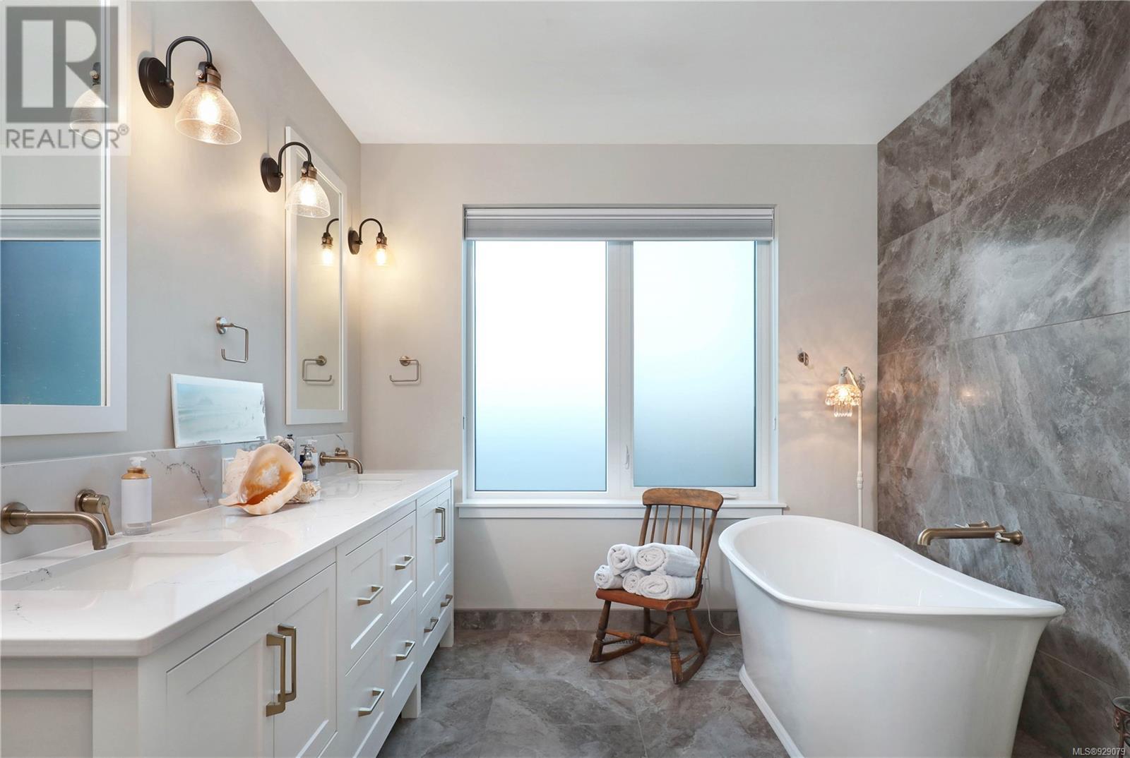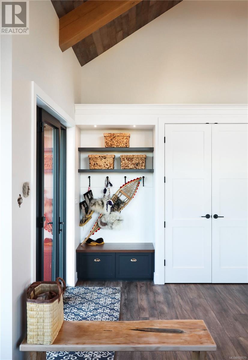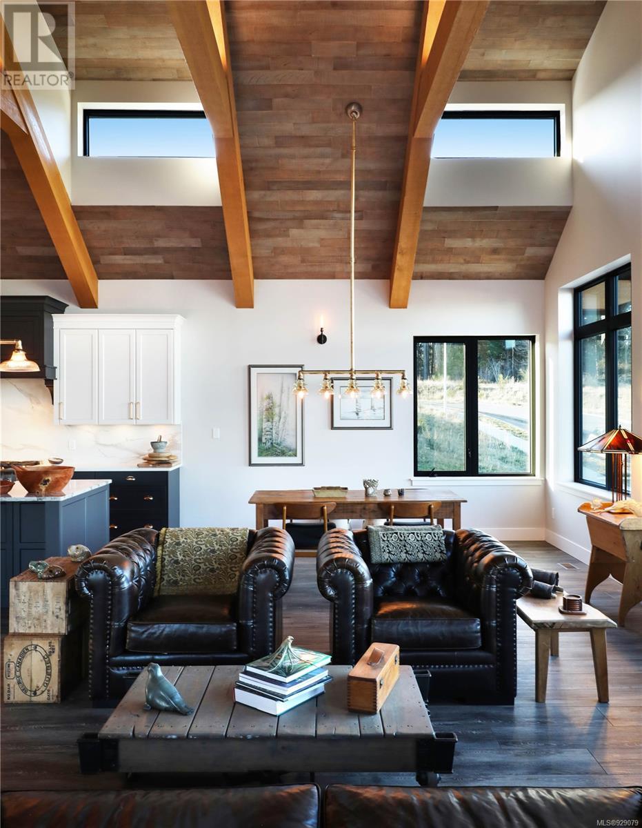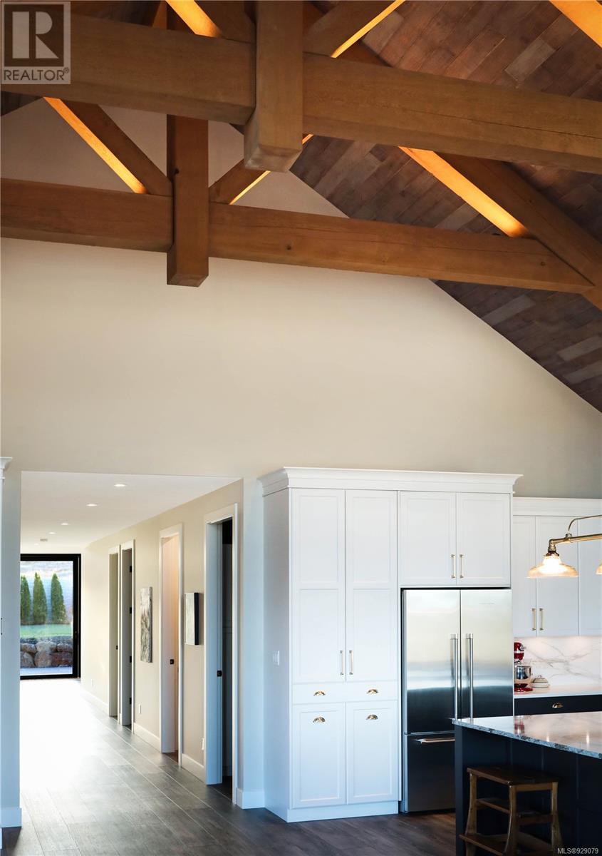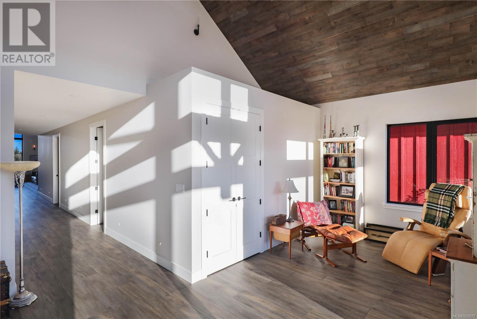 Rare, award winning bespoke ocean view rancher with soaring vaults on one third of an acre with panoramic mountain and ocean vistas in neighbourhood of stately homes a few blocks from local beaches. This property was built by master craftsmen and it shows in every detail, it is truly a piece of art. You think I am exaggerating? Imagine handcrafted light fixtures from eastern Europe, king post timberframed beams made from local old growth fir, porcelain from Italy and the list continues. Not only is it gorgeous, it offers award winning energy efficiency and impressive with galvalume metal roofing, euroline windows + doors and the rear yard is wrapped in a concrete sound wall for ultimate privacy and escape. Generous high efficiency windows flood all living spaces with beautiful natural light throughout all of our seasons. Enjoy 2700 square feet, three bedrooms, two bathrooms and enough timeless character to tell a beautiful story. A unique layout allows two primary bedrooms which both share an impressive en suite bathroom. Don’t miss the butler pantry which is perfect for fermenting and other favourite culinary pursuits. The heated garage features an oversized 12 ft door, humidity control and is currently divided to allow a lovely home gym. Southern exposed patio is massive, mostly covered and features natural gas hookup and is wired for a hot tub. Even the exterior layout is intentionally functional with multiple gates to make ATV toy and equipment access possible. You’ll enjoy this quiet area with easy access to Willow Creek Nature Trust trails and our never-ending coastal shoreline. (id:22211)