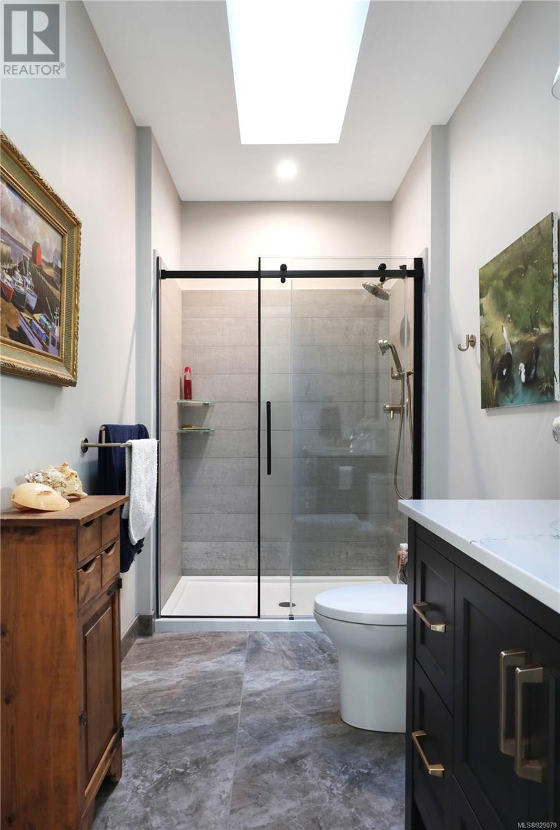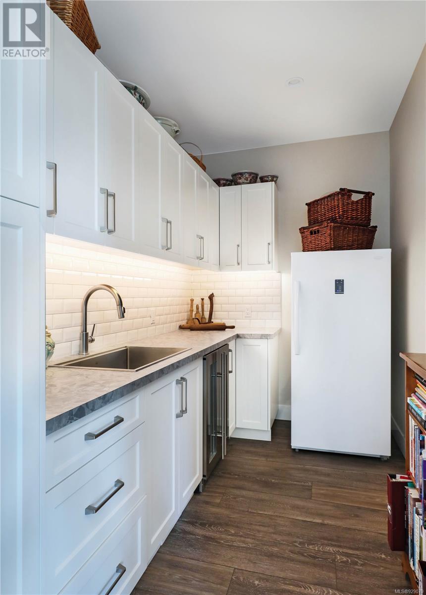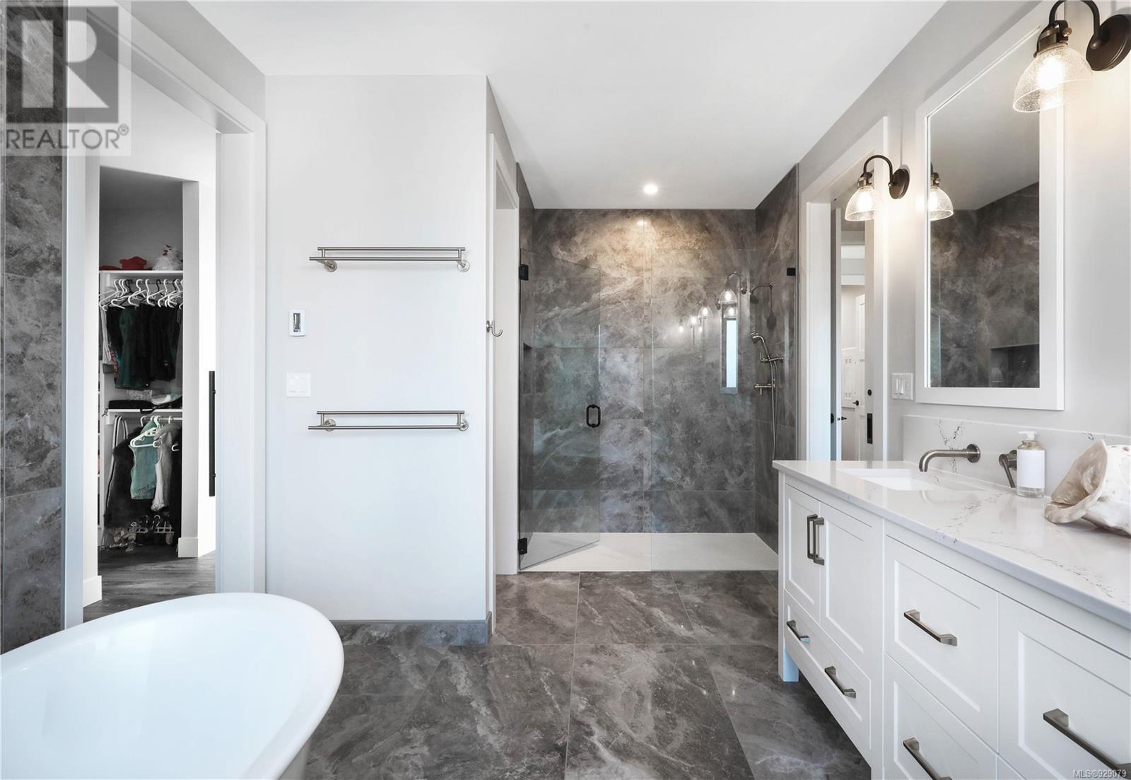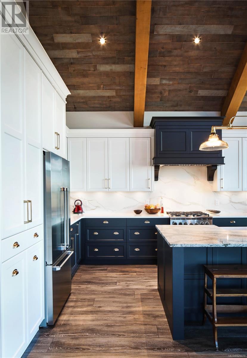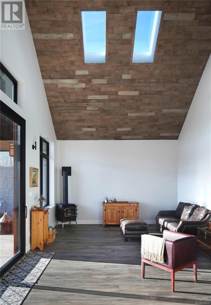 Rare, award winning bespoke ocean view rancher with soaring vaults on one third of an acre with panoramic mountain and ocean vistas in neighbourhood of stately homes a few blocks from local beaches. This property was built by master craftsmen and it shows in every detail, it is truly a piece of art. You think I am exaggerating? Imagine handcrafted light fixtures from eastern Europe, king post timberframed beams made from local old growth fir, porcelain from Italy and the list continues. Not only is it gorgeous, it offers award winning energy efficiency and impressive with galvalume metal roofing, euroline windows + doors and the rear yard is wrapped in a concrete sound wall for ultimate privacy and escape. Generous high efficiency windows flood all living spaces with beautiful natural light throughout all of our seasons. Enjoy 2700 square feet, three bedrooms, two bathrooms and enough timeless character to tell a beautiful story. A unique layout allows two primary bedrooms which both share an impressive en suite bathroom. Don’t miss the butler pantry which is perfect for fermenting and other favourite culinary pursuits. The heated garage features an oversized 12 ft door, humidity control and is currently divided to allow a lovely home gym. Southern exposed patio is massive, mostly covered and features natural gas hookup and is wired for a hot tub. Even the exterior layout is intentionally functional with multiple gates to make ATV toy and equipment access possible. You’ll enjoy this quiet area with easy access to Willow Creek Nature Trust trails and our never-ending coastal shoreline. (id:22211)