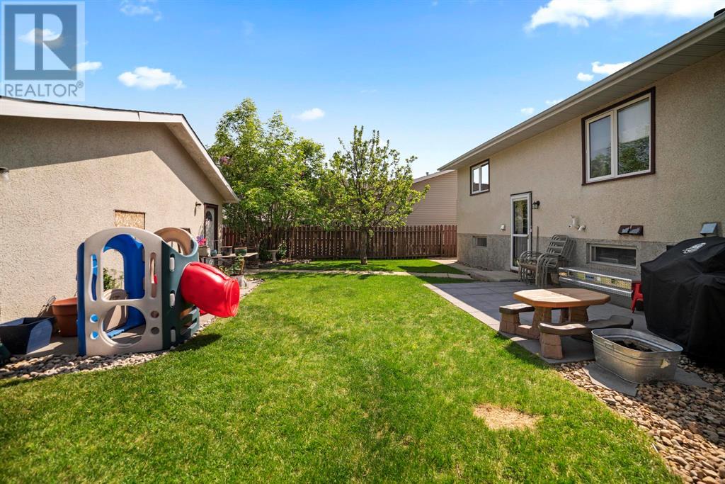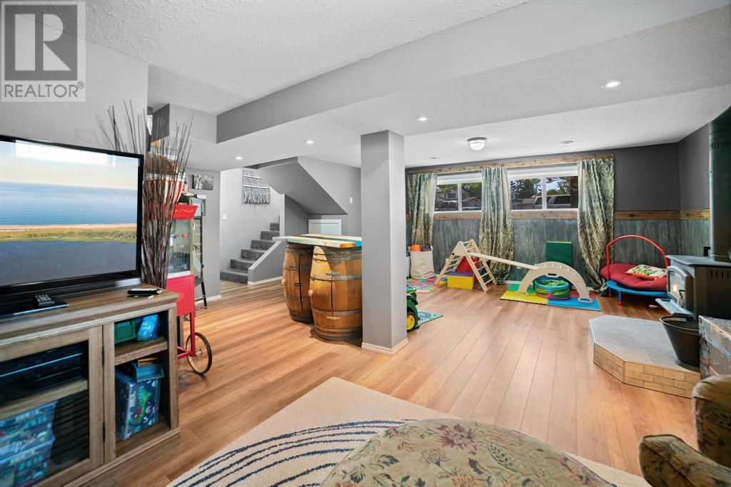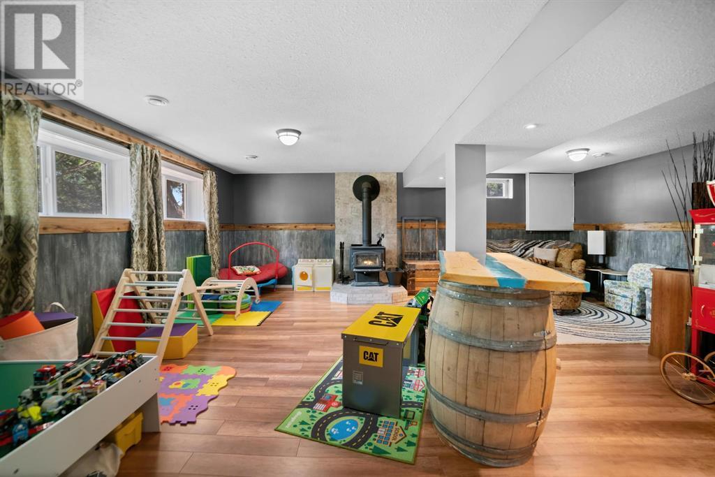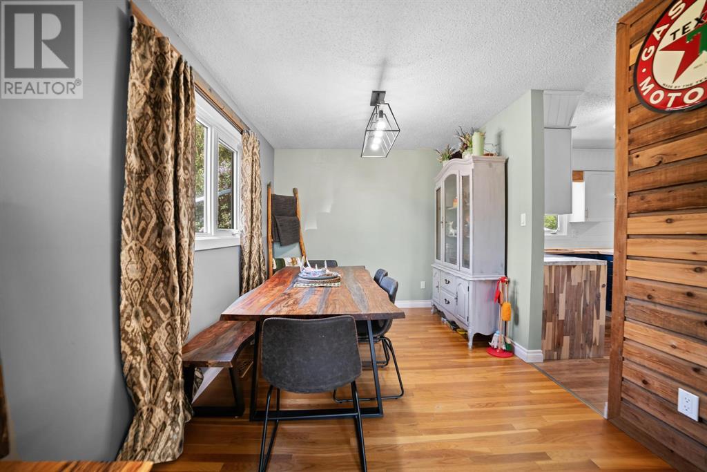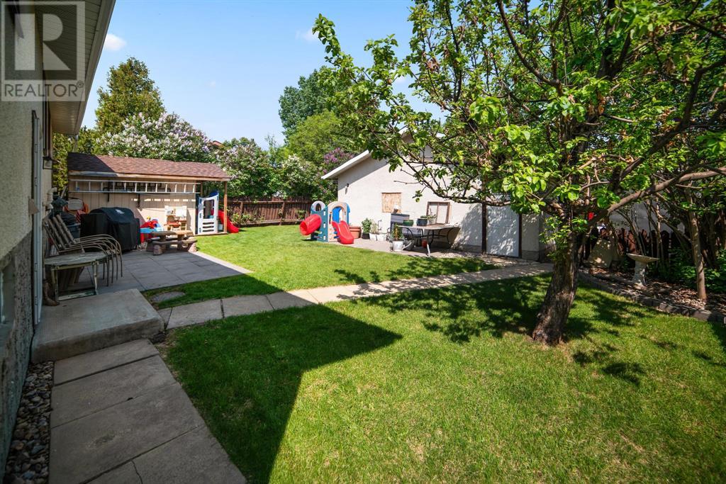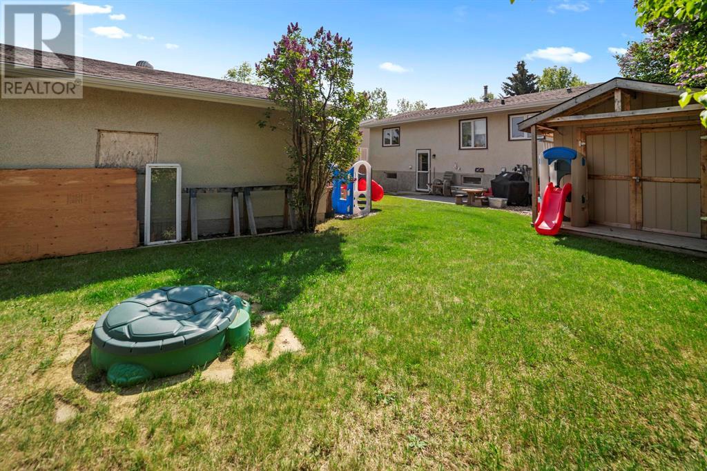 Excellent 5 bedroom, 3 bathroom family home located in a sought after mature neighborhood, with all the features and updates a growing family would want. You'll notice the curb appeal of this attractive home the moment you drive up, having a recent front foyer extension, beautiful new entrance door w/ side lite, siding & added insulation and vinyl windows. The extended front foyer allows for plenty storage and opens the entrance up into the bright living room which features a natural gas fireplace, and hardwood floors. Off this space is the dining room and a stylish renovated kitchen with butcher block counters, new tile backsplash and new modern appliances. Under the waterfall countertop is additional storage and an ideal sitting space for kitchen conversations, homework, and meals & snacks. You'll love the extra bonus space this kitchen offers where you can fit a second table, additional storage, or just family gatherings. There are 3 bedrooms on the main floor, a full updated main floor bathroom, plus a primary bedroom ensuite with a beautiful walk in shower. The new flooring, paint, fixtures & craftsman details such as the wainscoting paneling, and accent wood features throughout give this home a custom quality move-in ready feeling. The lower level of the house is accessed not only from the front foyer, but a second stair off the back door. This ties the lower level to the main with ease of access. This lower level has an additional 2 large bedrooms, another full bathroom, and a large family room where you can fit several living spaces including a bar area, play area, TV sitting space, and cozy gatherings around the wood stove. Again new vinyl windows allow natural light into all these spaces. The mechanical room has the new high efficiency furnace (2016), HWT (2020), washer & dryer (2015), and plenty of built in storage. There is a private mature landscaped yard that is fully fenced, with patio area, custom shed, and the 24' x 24' heated garage. There are 2 s paces for RV parking or additional vehicle storage, with back alley access. This is a beautiful property overall with a tastefully renovated house, practical living spaces, yard and garage! (id:22211)