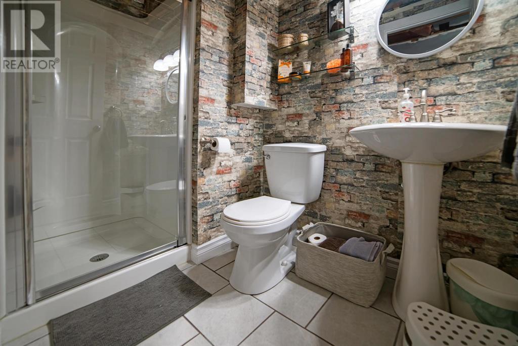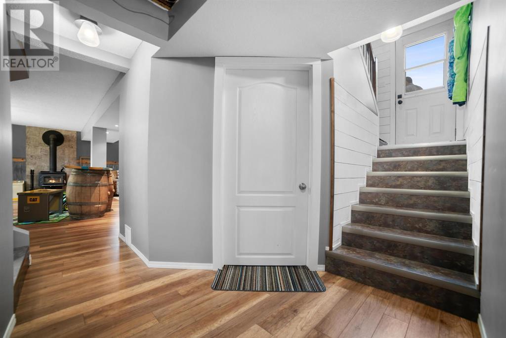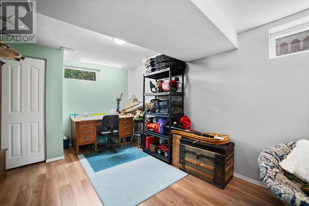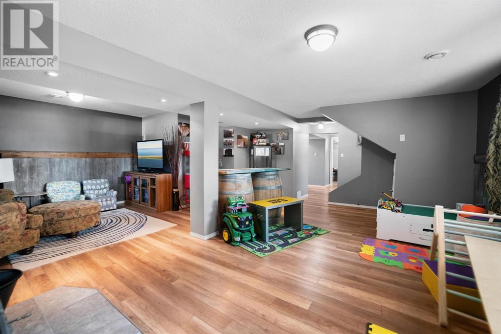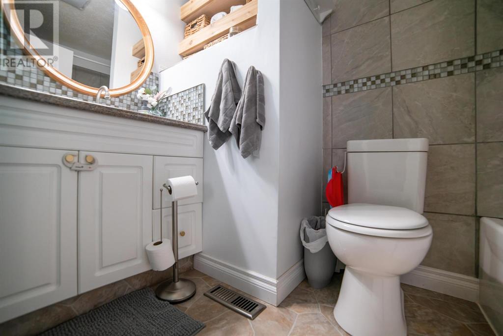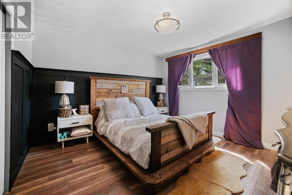Excellent 5 bedroom, 3 bathroom family home located in a sought after mature neighborhood, with all the features and updates a growing family would want. You'll notice the curb appeal of this attractive home the moment you drive up, having a recent front foyer extension, beautiful new entrance door w/ side lite, siding & added insulation and vinyl windows. The extended front foyer allows for plenty storage and opens the entrance up into the bright living room which features a natural gas fireplace, and hardwood floors. Off this space is the dining room and a stylish renovated kitchen with butcher block counters, new tile backsplash and new modern appliances. Under the waterfall countertop is additional storage and an ideal sitting space for kitchen conversations, homework, and meals & snacks. You'll love the extra bonus space this kitchen offers where you can fit a second table, additional storage, or just family gatherings. There are 3 bedrooms on the main floor, a full updated main floor bathroom, plus a primary bedroom ensuite with a beautiful walk in shower. The new flooring, paint, fixtures & craftsman details such as the wainscoting paneling, and accent wood features throughout give this home a custom quality move-in ready feeling. The lower level of the house is accessed not only from the front foyer, but a second stair off the back door. This ties the lower level to the main with ease of access. This lower level has an additional 2 large bedrooms, another full bathroom, and a large family room where you can fit several living spaces including a bar area, play area, TV sitting space, and cozy gatherings around the wood stove. Again new vinyl windows allow natural light into all these spaces. The mechanical room has the new high efficiency furnace (2016), HWT (2020), washer & dryer (2015), and plenty of built in storage. There is a private mature landscaped yard that is fully fenced, with patio area, custom shed, and the 24' x 24' heated garage. There are 2 s paces for RV parking or additional vehicle storage, with back alley access. This is a beautiful property overall with a tastefully renovated house, practical living spaces, yard and garage! (id:22211)