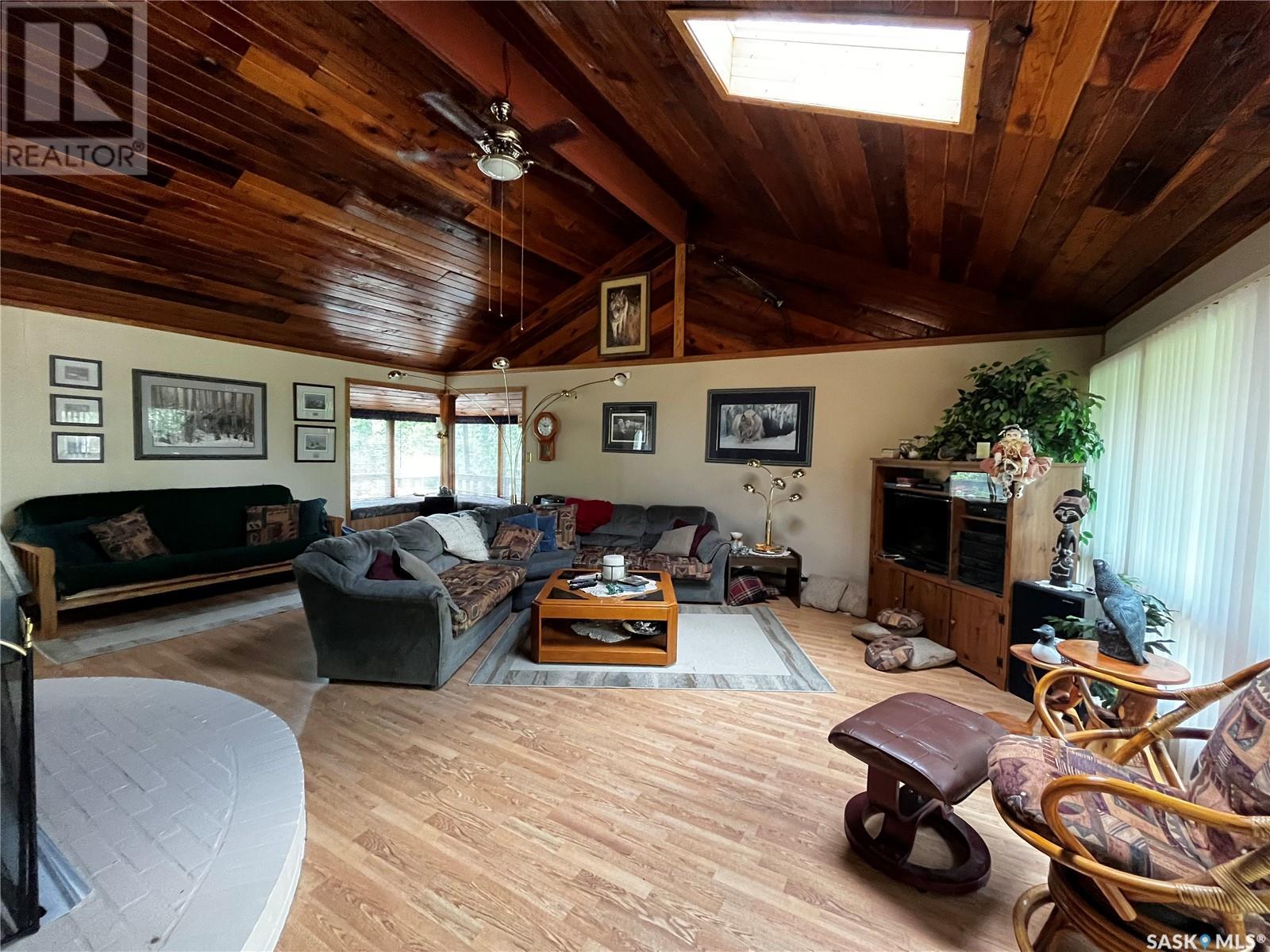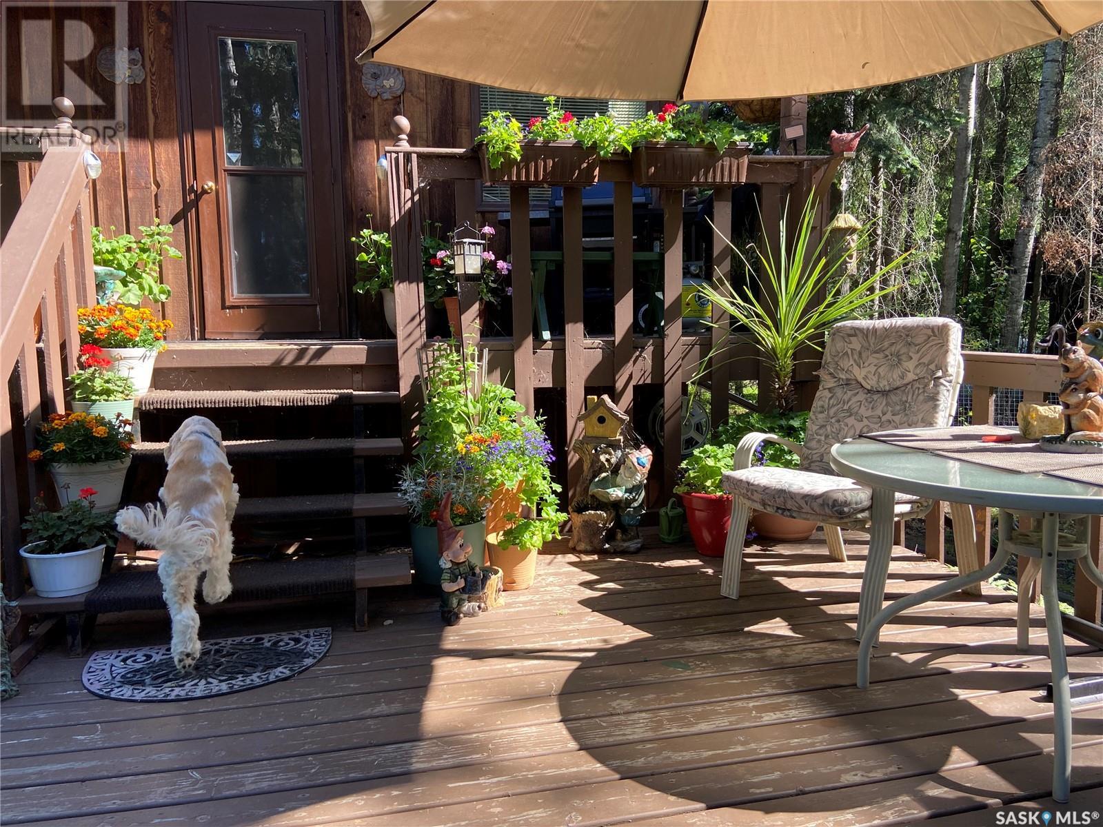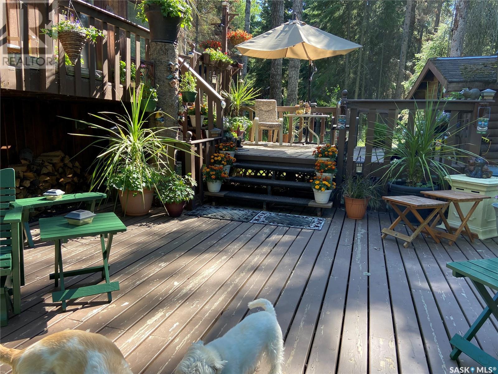 Year round cabin for sale in Candle Lake, Sk. Enjoy the lake in this ready to move in cabin located in the Northview Subdivision. This cozy cabin features 2 bedrooms, a full bathroom, laundry area and a large livingroom to sit and enjoy the wood fireplace. The garage was converted into a large master bedroom and a laundry area. Heat is also natural gas forced air and some electric baseboards. Asphalt shingles were replaced 4 years ago. Sit on the wrap around deck plus another 12 x 12 ft and 18 x 18 ft tiered deck surrounded by the peaceful All furnishings and kitchen items are included. Bring your summer and winter clothing and start to have fun and relax with your family and friends. The water source is a private well and septic size is 1200 gallons. (id:22211)