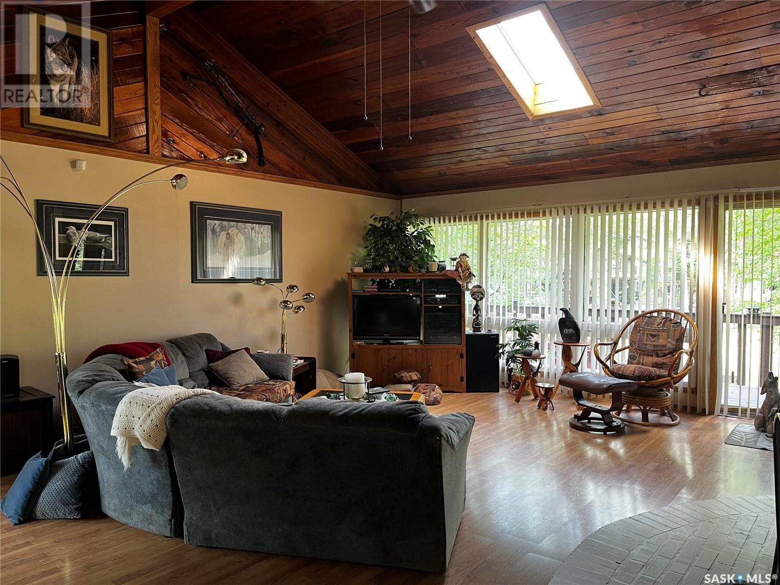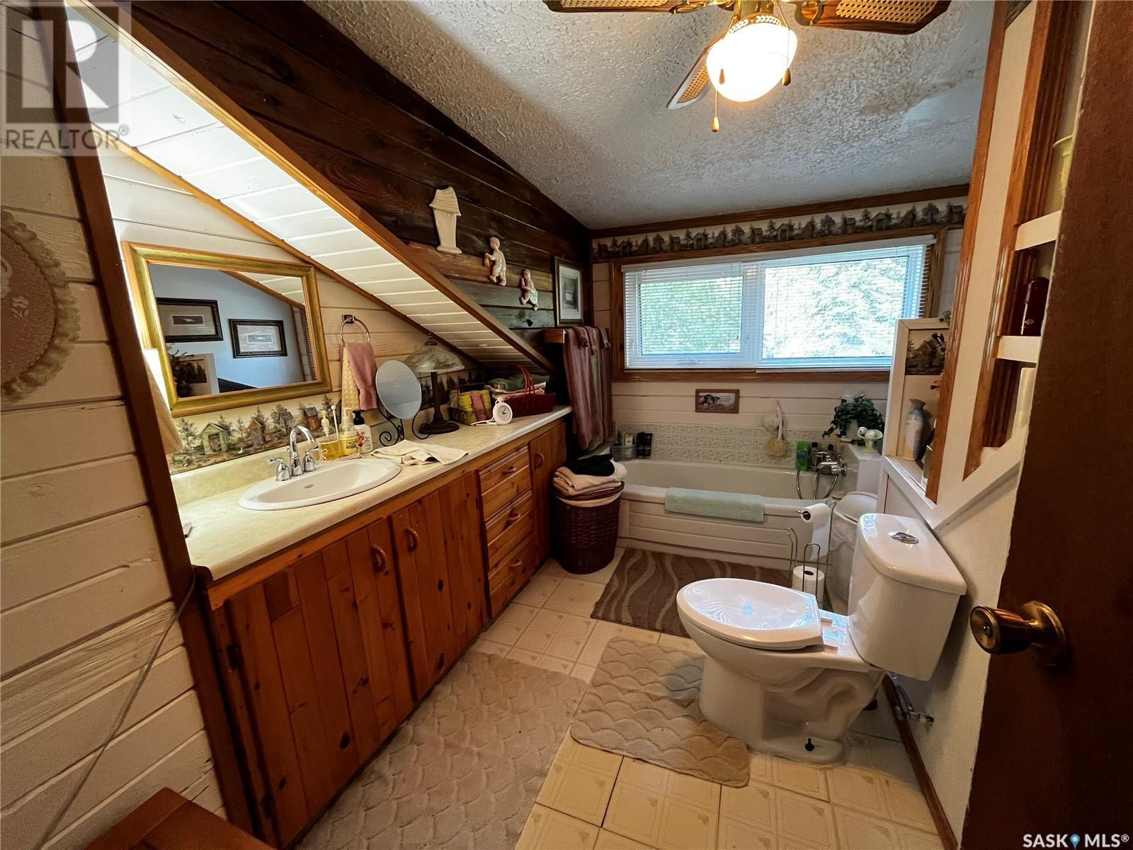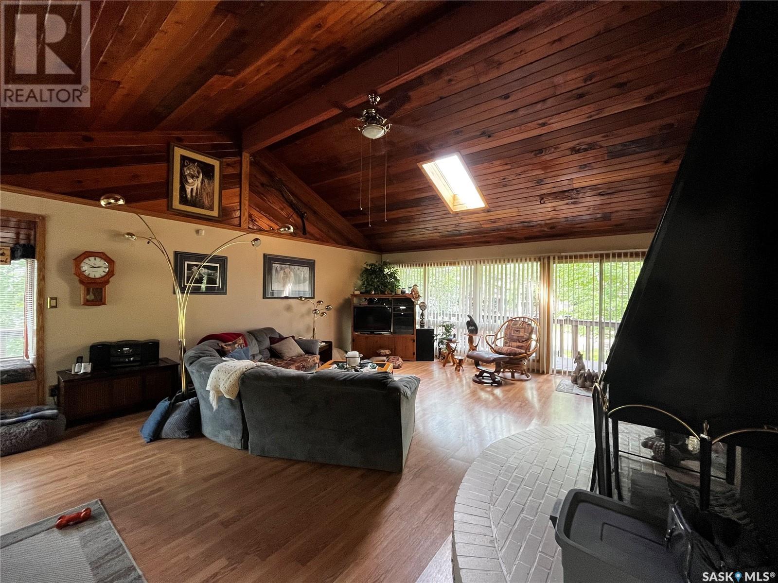 Year round cabin for sale in Candle Lake, Sk. Enjoy the lake in this ready to move in cabin located in the Northview Subdivision. This cozy cabin features 2 bedrooms, a full bathroom, laundry area and a large livingroom to sit and enjoy the wood fireplace. The garage was converted into a large master bedroom and a laundry area. Heat is also natural gas forced air and some electric baseboards. Asphalt shingles were replaced 4 years ago. Sit on the wrap around deck plus another 12 x 12 ft and 18 x 18 ft tiered deck surrounded by the peaceful All furnishings and kitchen items are included. Bring your summer and winter clothing and start to have fun and relax with your family and friends. The water source is a private well and septic size is 1200 gallons. (id:22211)
