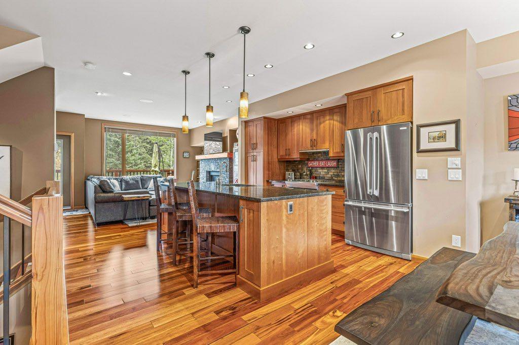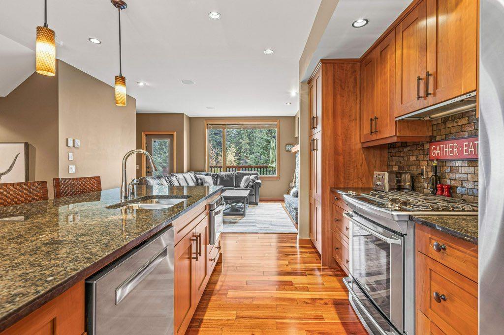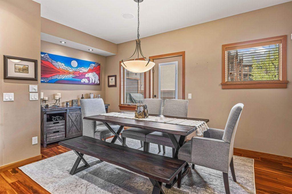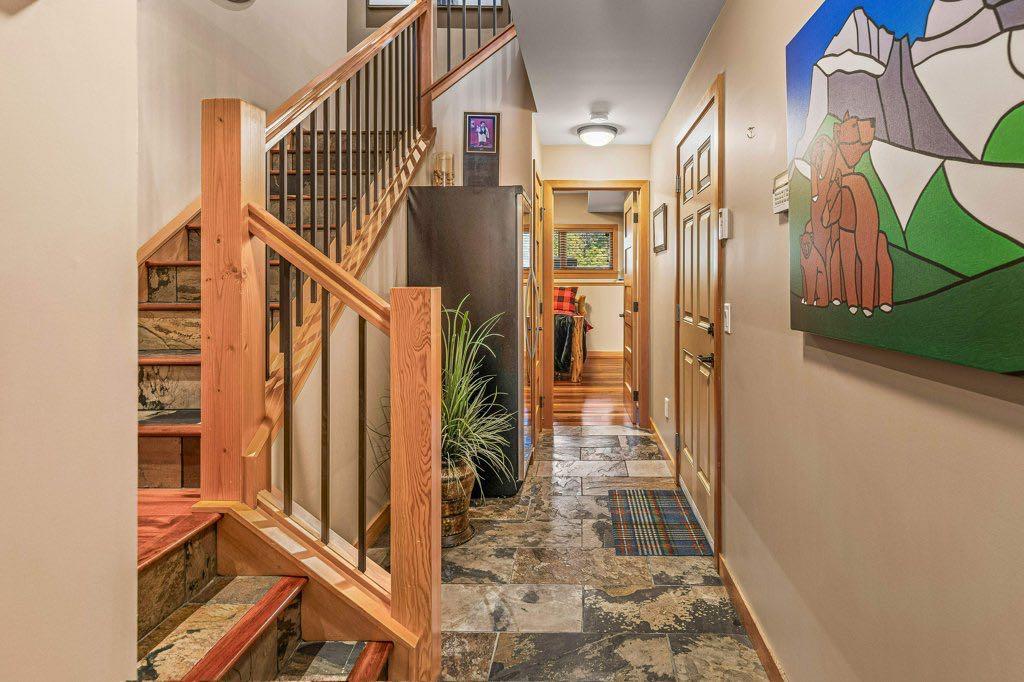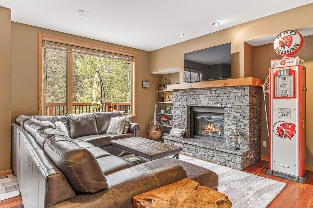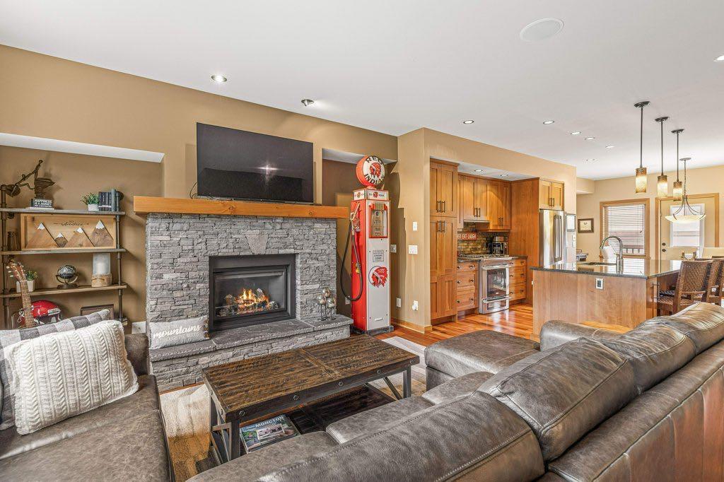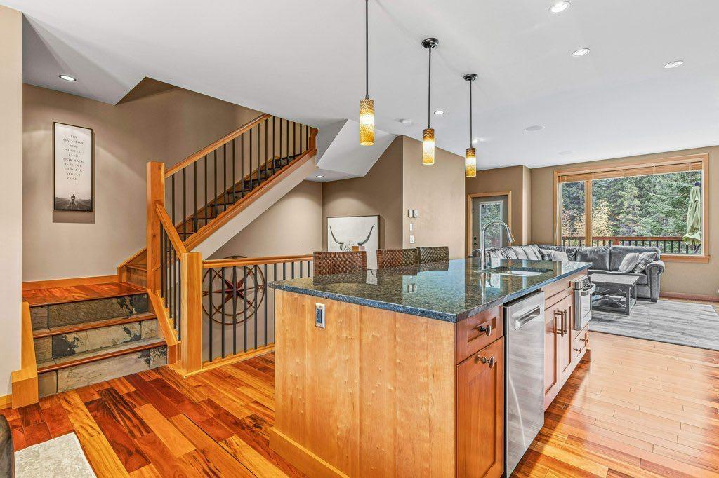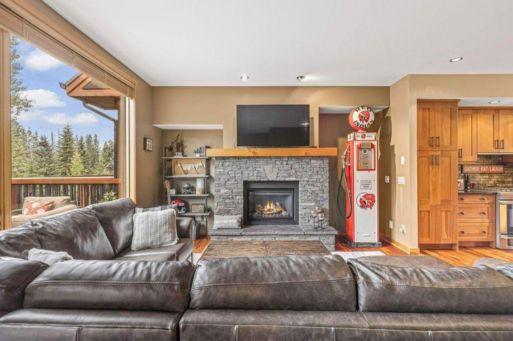 Gorgeous Creekside Villa nestled along the banks of Policeman's Creek, in Spring Creek Mountain Village. This Mountain Modern upgraded open concept Villa boasts unobstructed mountain and creek views from the living room and master bedroom as well as the generous elevated deck. The entry level has a 2 car tandem heated garage, second master with 3-piece ensuites. The main level is on the 2nd floor with the kitchen, living and dining and office space. The vaulted master has a huge walk-in closet and the 5-piece ensuite, a second master with 3 piece ensuite complete this level. This home is loaded with all the high end finishes synonymous with a Spring Creek property including hardwood throughout, granite counters, stainless steel appliances, real rundle stone gas fireplace, slate floors and geo thermal in-floor heating and cooling. The ground level patio is perfect for enjoying the hot tub. The builder total square footage is 1888 sq.ft. (id:22211)