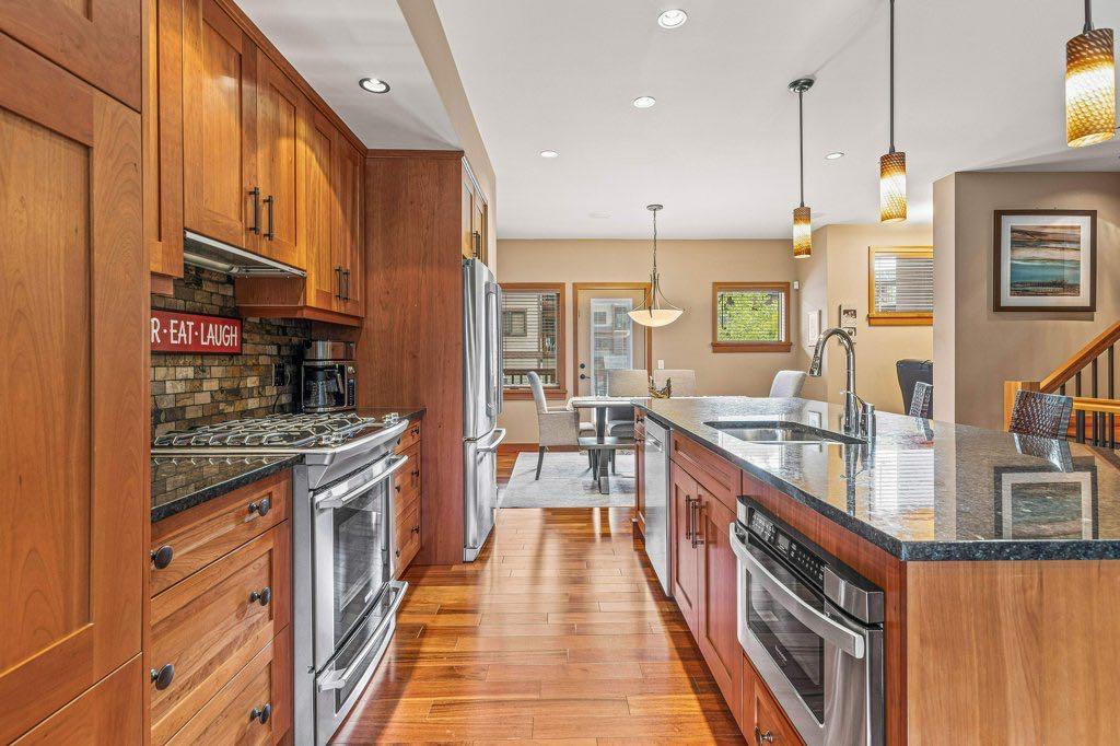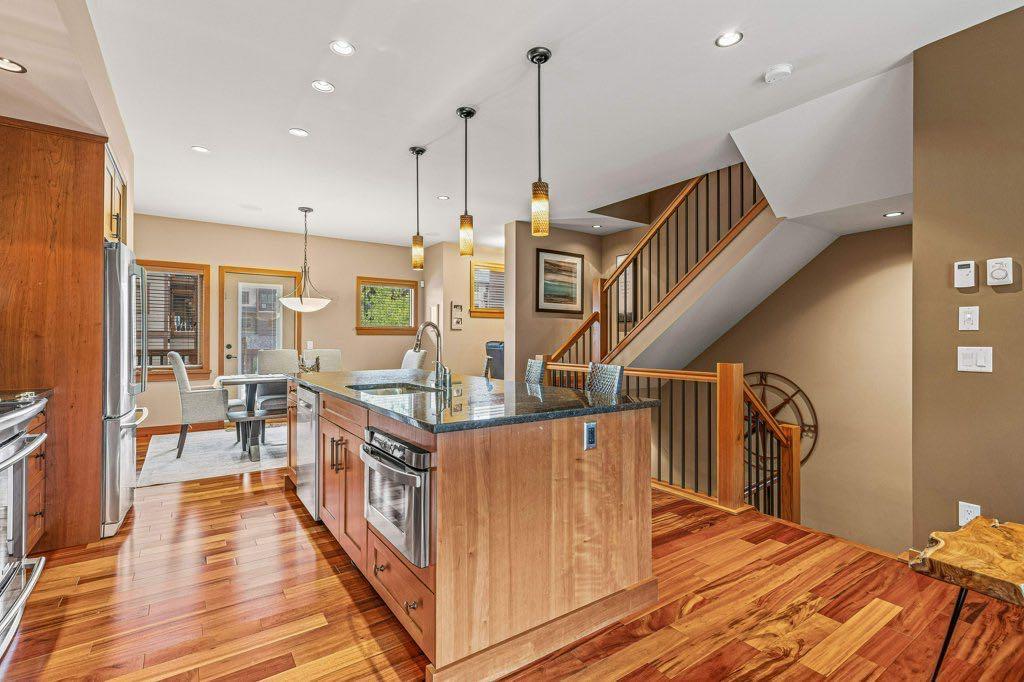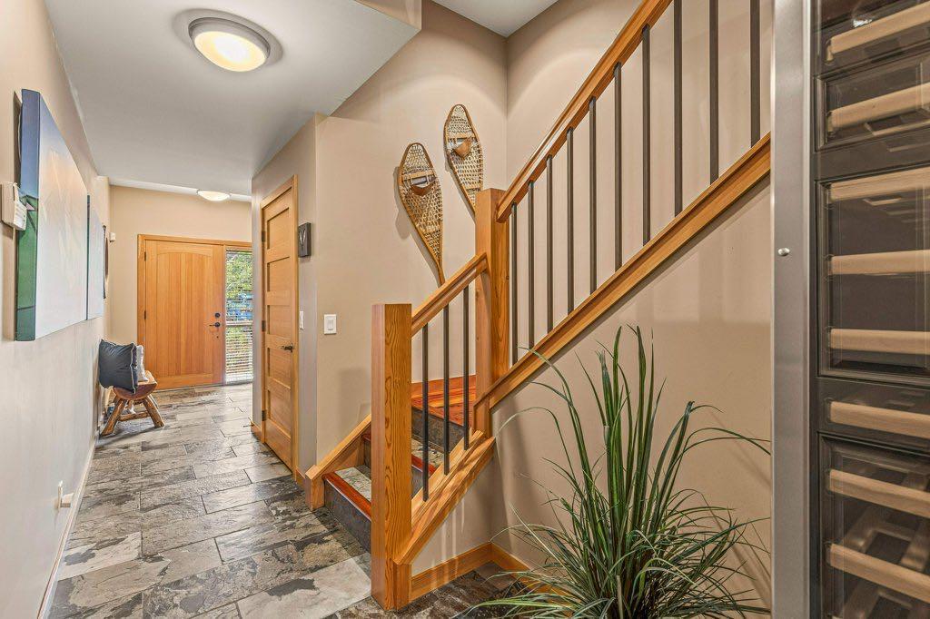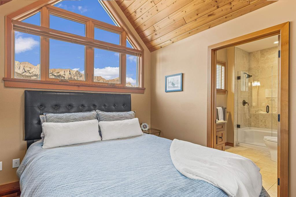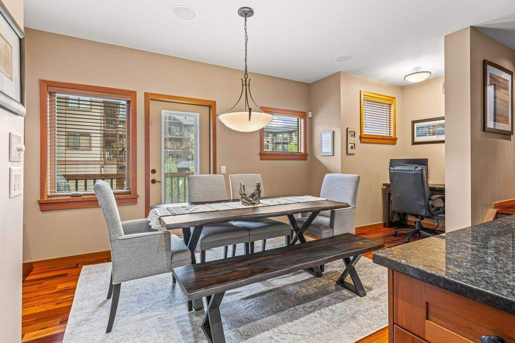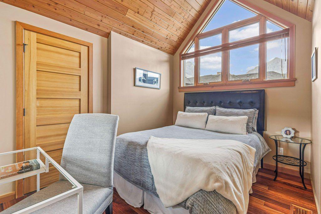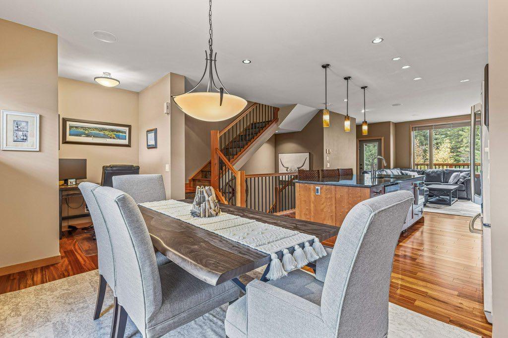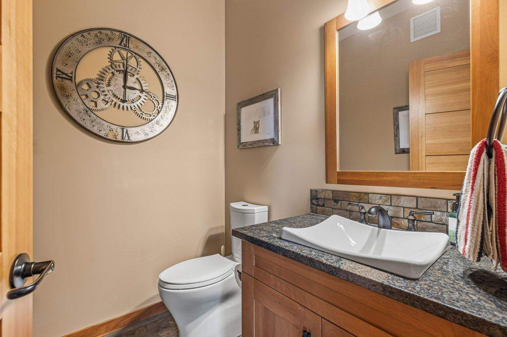 Gorgeous Creekside Villa nestled along the banks of Policeman's Creek, in Spring Creek Mountain Village. This Mountain Modern upgraded open concept Villa boasts unobstructed mountain and creek views from the living room and master bedroom as well as the generous elevated deck. The entry level has a 2 car tandem heated garage, second master with 3-piece ensuites. The main level is on the 2nd floor with the kitchen, living and dining and office space. The vaulted master has a huge walk-in closet and the 5-piece ensuite, a second master with 3 piece ensuite complete this level. This home is loaded with all the high end finishes synonymous with a Spring Creek property including hardwood throughout, granite counters, stainless steel appliances, real rundle stone gas fireplace, slate floors and geo thermal in-floor heating and cooling. The ground level patio is perfect for enjoying the hot tub. The builder total square footage is 1888 sq.ft. (id:22211)