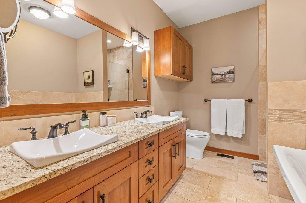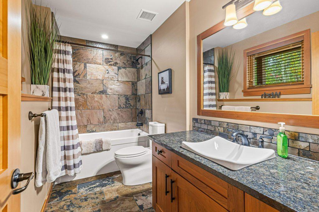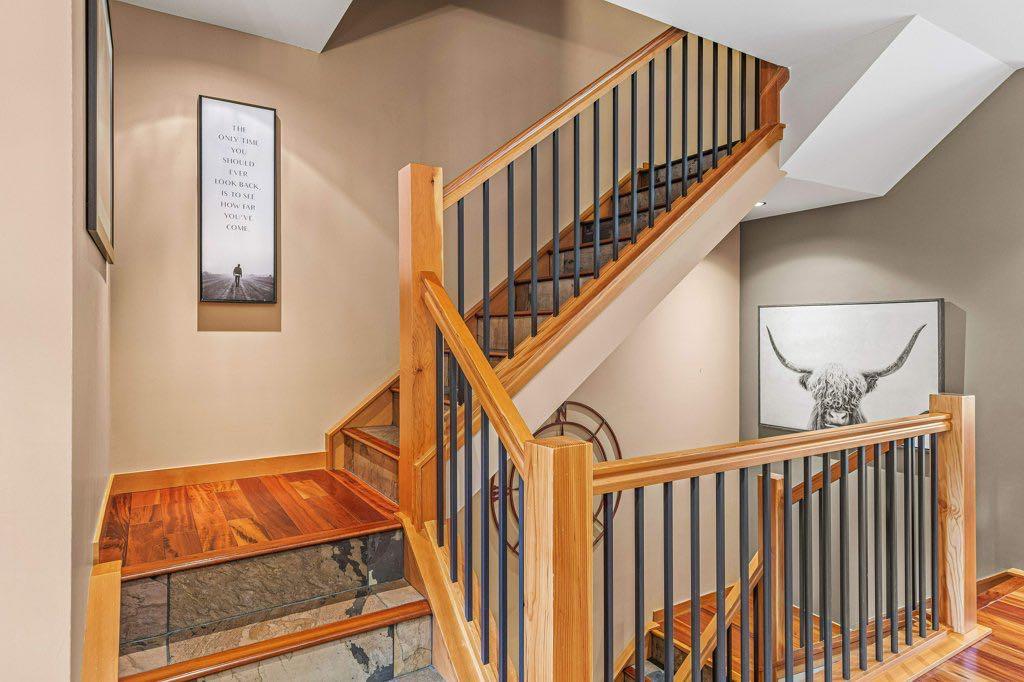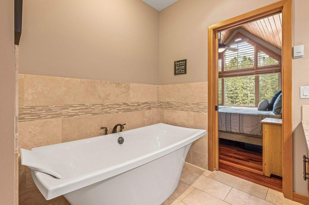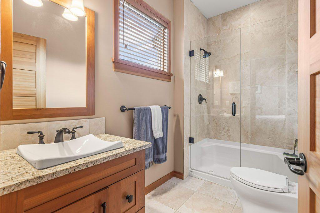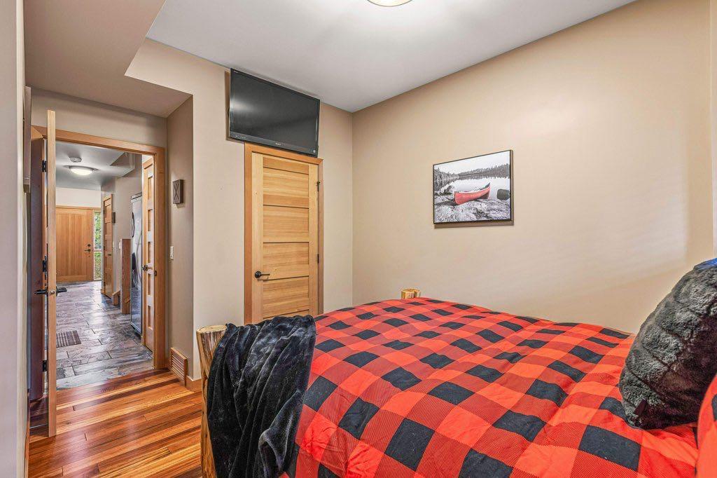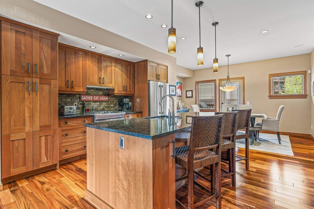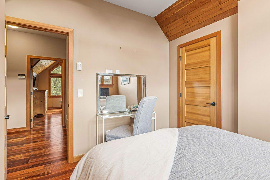 Gorgeous Creekside Villa nestled along the banks of Policeman's Creek, in Spring Creek Mountain Village. This Mountain Modern upgraded open concept Villa boasts unobstructed mountain and creek views from the living room and master bedroom as well as the generous elevated deck. The entry level has a 2 car tandem heated garage, second master with 3-piece ensuites. The main level is on the 2nd floor with the kitchen, living and dining and office space. The vaulted master has a huge walk-in closet and the 5-piece ensuite, a second master with 3 piece ensuite complete this level. This home is loaded with all the high end finishes synonymous with a Spring Creek property including hardwood throughout, granite counters, stainless steel appliances, real rundle stone gas fireplace, slate floors and geo thermal in-floor heating and cooling. The ground level patio is perfect for enjoying the hot tub. The builder total square footage is 1888 sq.ft. (id:22211)
