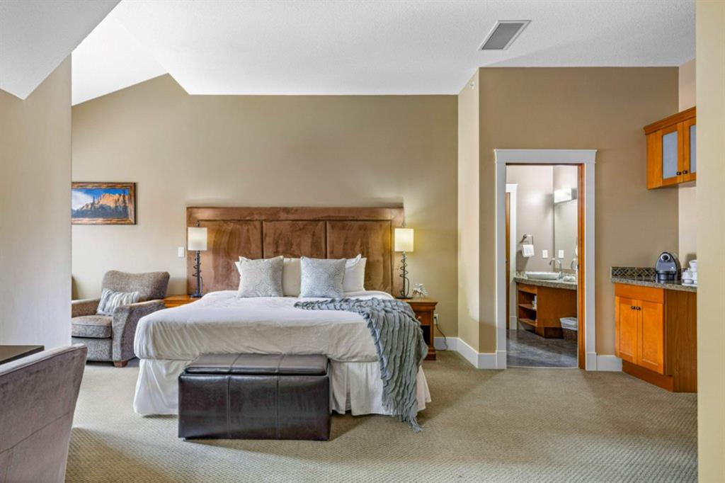 Premium Penthouse Lockoff Property at Solara Resort & Spa! There are so many details of this 1319 sqft premium property that you will not find elsewhere! The two massive luxurious bedrooms each have their own relaxation area with tv & fireplace to unwind before bed. Enjoy watching the evening sun reflect off of Lady Macdonald, Grotto and Pidgeon Mountains from the expansive covered deck with glass siding above the courtyard with huge timber frames in every direction. The huge bathrooms include a deep soaker tubs and rain showers with massage jets to help relax after your mountain adventures! The lockoff feature separates the ~400 sqft studio from the ~900 sqft 1 bedroom for separate usage and separate rental. The three office areas make working or studying from home a pleasure or can be converted to add extra beds. You will enjoy the hot tub & pool, One wellness Spa, physiotherapy clinic, best fitness center in the neighborhood, ski waxing room, theatre, conference centre, large storage lockers and space for extra cars in the expansive underground parking. The list price is $1,069,000 + GST. GST is often deferred (and not paid) at the time of sale when the buyer is GST registered. This is a fantastic opportunity to own property & generate income through the on site rental pool or on Airbnb! (id:22211)