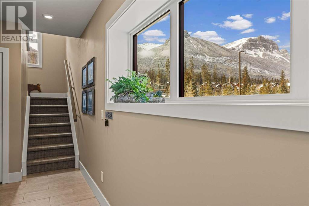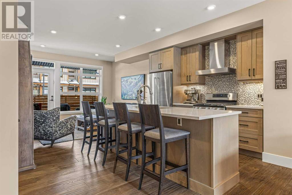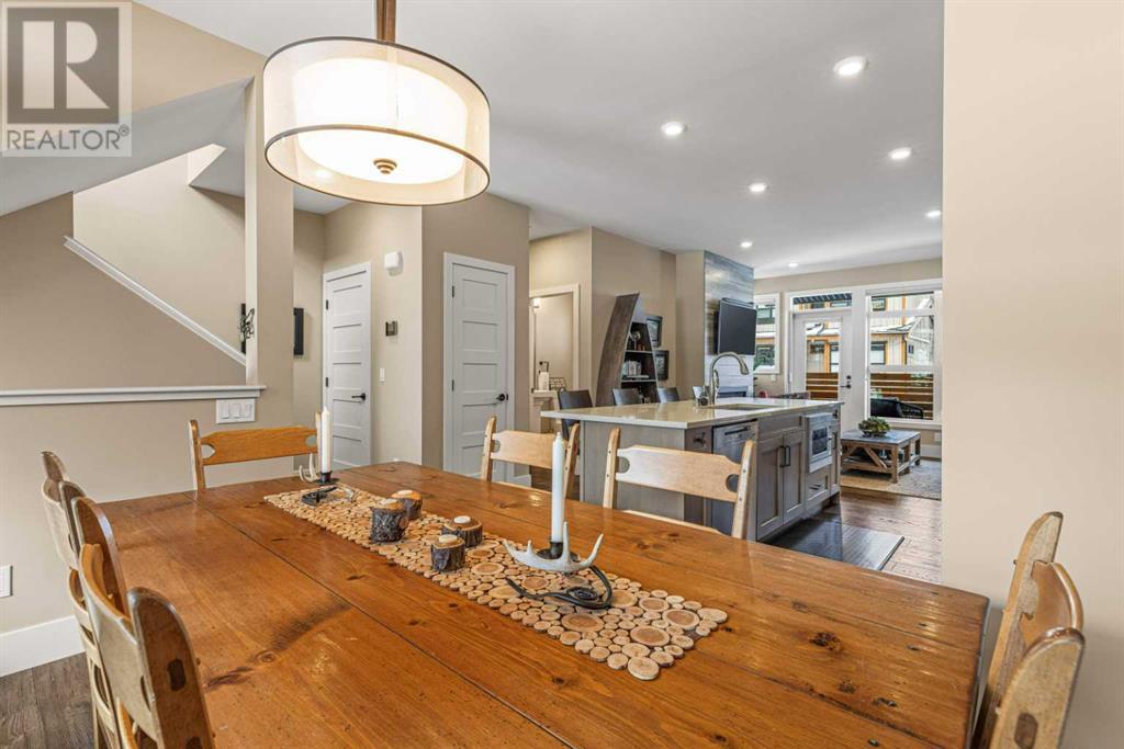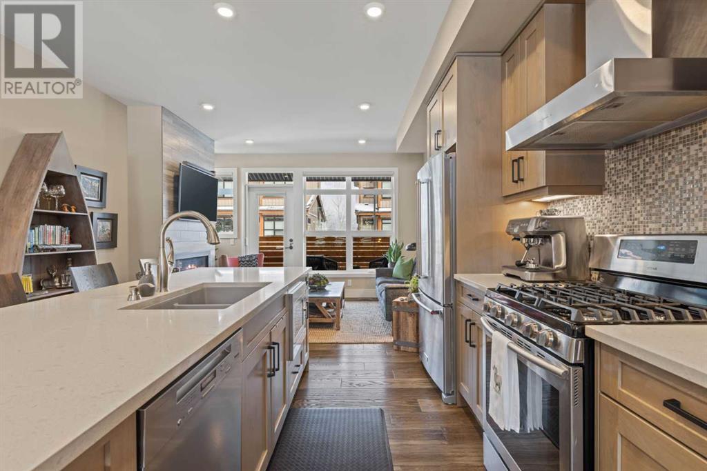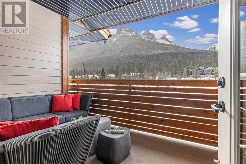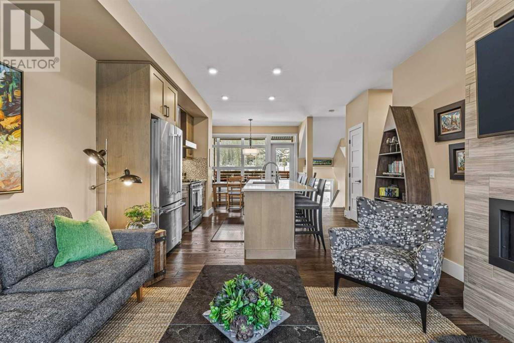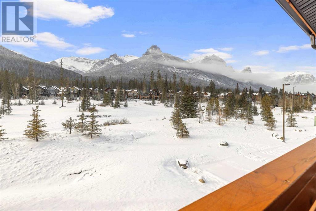 Unparalleled landscapes. Unrivaled recreational opportunities. A remarkable home at the centre of it all. This 3 bed, 2.5 bath gem truly inspires as a gathering place from which you, your family & your closest friends can experience the best of the Bow Valley. A home where a rare combination of thoughtful attention to detail, immaculate condition & evident value are apparent at every turn. On entry, light streams in as though you were still on your favorite, nearby trail. Ample space, from oversized garage, closet & generous storage offer a place for everything, seeing gear tucked away ready for another mountain adventure. Up a bright stairway, the primary living level invites indoor respite & outdoor relaxation. Broad, sun-soaked decks to the front & rear compel you to unwind as much as the intimate living room might, with cozy fireplace to gather by. Kitchen upgrades & modern finishes will not go unnoticed while alongside, the dining area is sure to be the heart of entertaining. On the top floor, 3 bedrooms allow privacy for all, where master and ensuite bath proffer to the owners their own restful retreat under soaring windows framing iconic peaks. Overlooking a park & large greenspace, this property offers immediate access to biking & hiking trails & is a short walk to the off-leash dog park, disc golf, tobogganing, children’s playground, Stewart Creek Golf Course, restaurants, groceries, Roam transit, a K through 12 school & the shortest commute to Calgary from Canmore. In a well-managed complex, this flawless alpine townhome could be your “basecamp” in Canmore’s Rocky Mountains. (id:22211)
