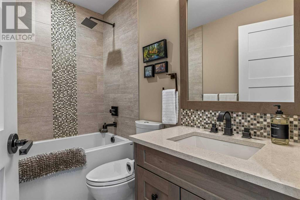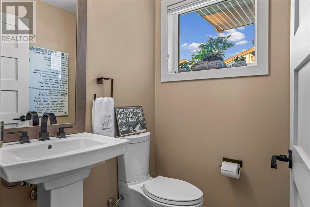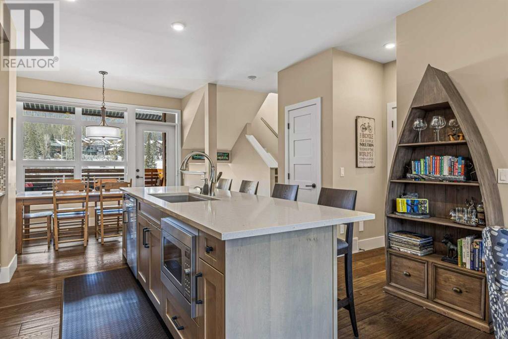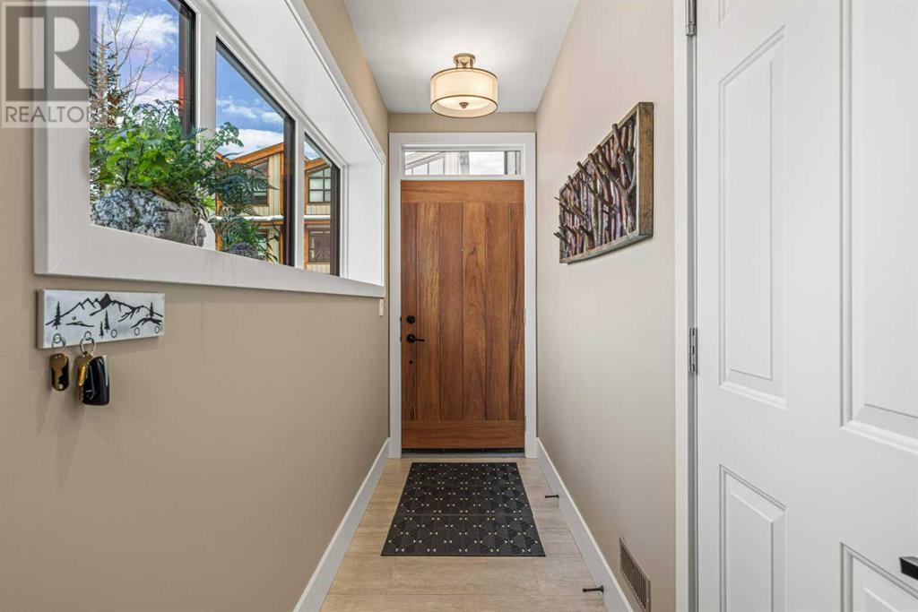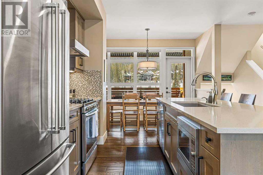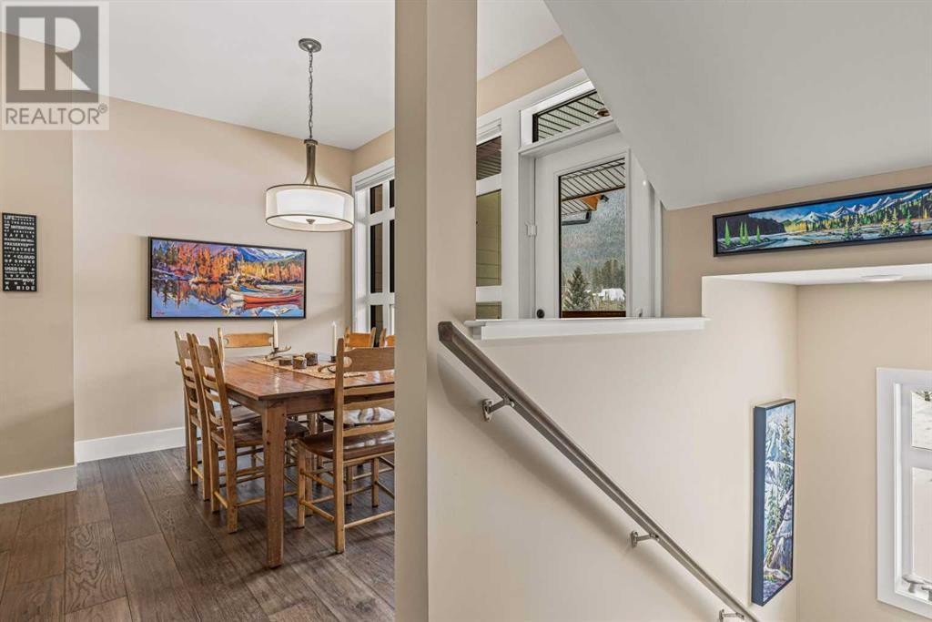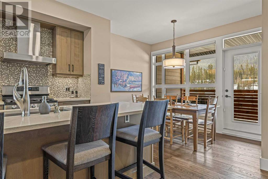 Unparalleled landscapes. Unrivaled recreational opportunities. A remarkable home at the centre of it all. This 3 bed, 2.5 bath gem truly inspires as a gathering place from which you, your family & your closest friends can experience the best of the Bow Valley. A home where a rare combination of thoughtful attention to detail, immaculate condition & evident value are apparent at every turn. On entry, light streams in as though you were still on your favorite, nearby trail. Ample space, from oversized garage, closet & generous storage offer a place for everything, seeing gear tucked away ready for another mountain adventure. Up a bright stairway, the primary living level invites indoor respite & outdoor relaxation. Broad, sun-soaked decks to the front & rear compel you to unwind as much as the intimate living room might, with cozy fireplace to gather by. Kitchen upgrades & modern finishes will not go unnoticed while alongside, the dining area is sure to be the heart of entertaining. On the top floor, 3 bedrooms allow privacy for all, where master and ensuite bath proffer to the owners their own restful retreat under soaring windows framing iconic peaks. Overlooking a park & large greenspace, this property offers immediate access to biking & hiking trails & is a short walk to the off-leash dog park, disc golf, tobogganing, children’s playground, Stewart Creek Golf Course, restaurants, groceries, Roam transit, a K through 12 school & the shortest commute to Calgary from Canmore. In a well-managed complex, this flawless alpine townhome could be your “basecamp” in Canmore’s Rocky Mountains. (id:22211)