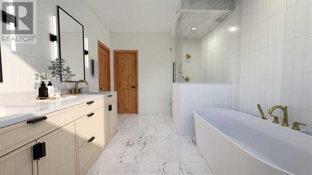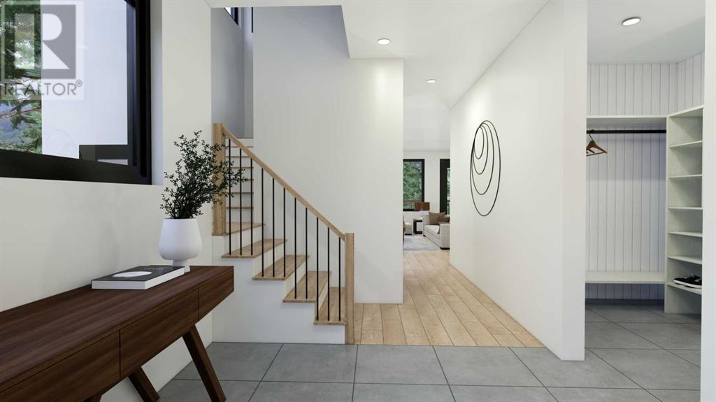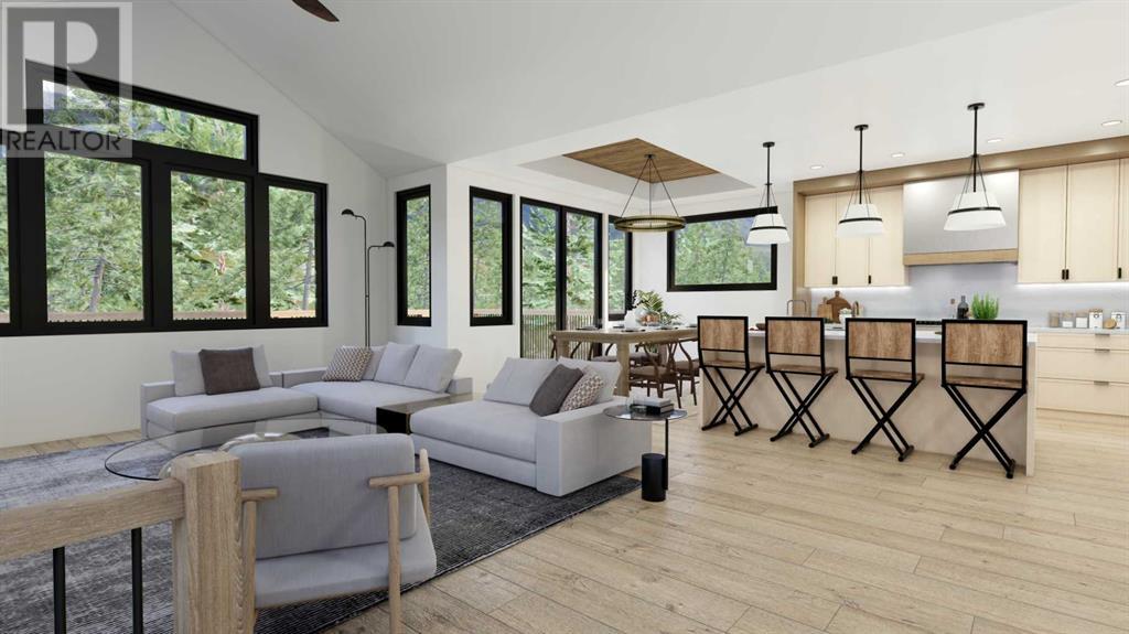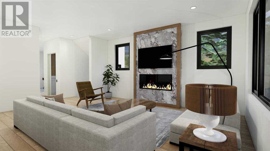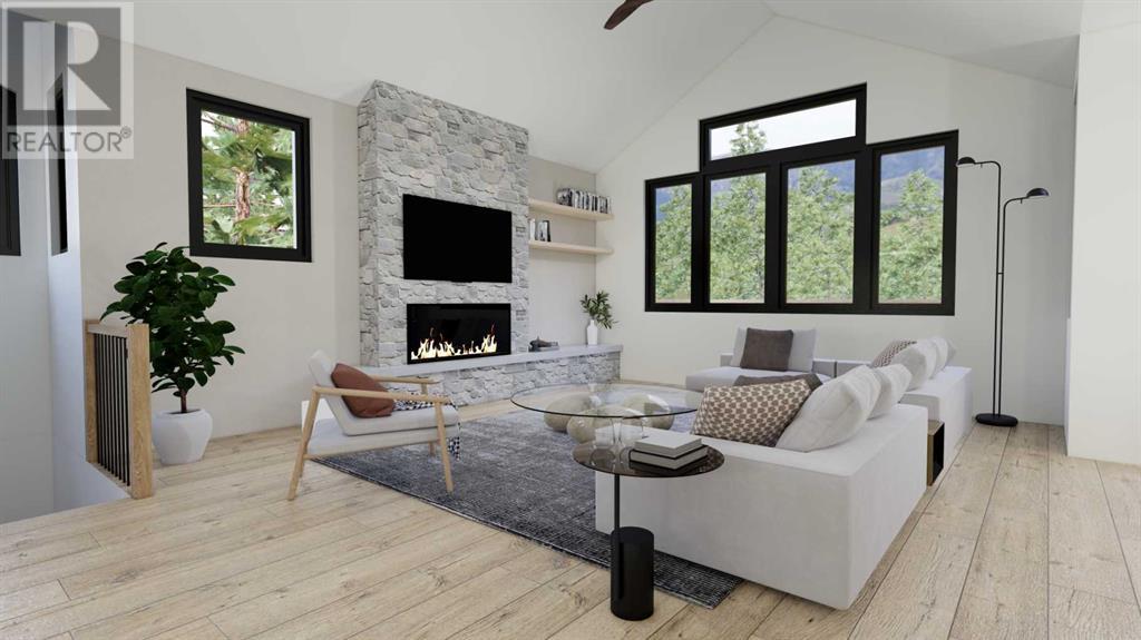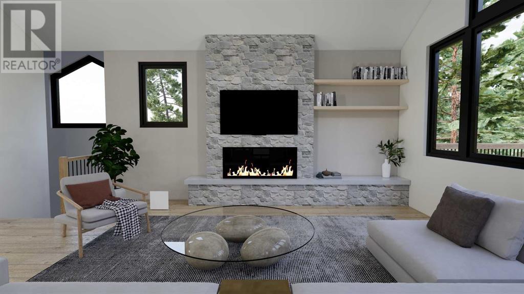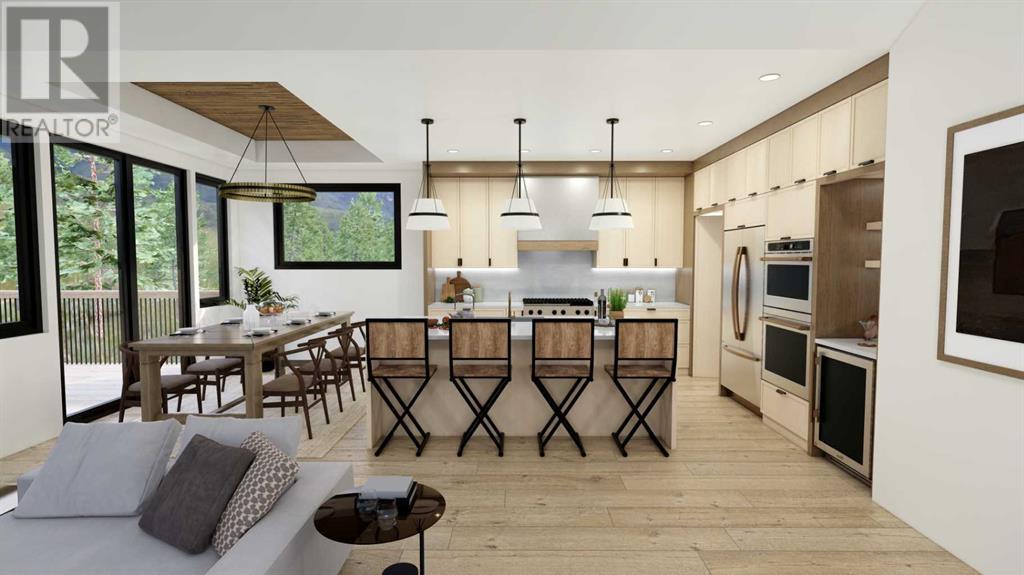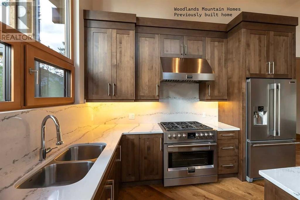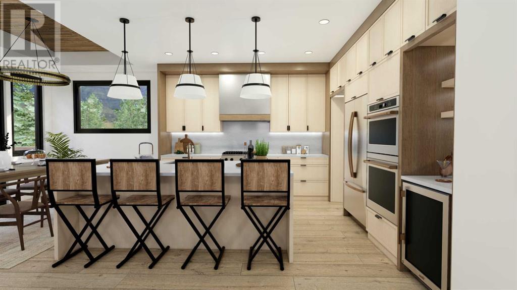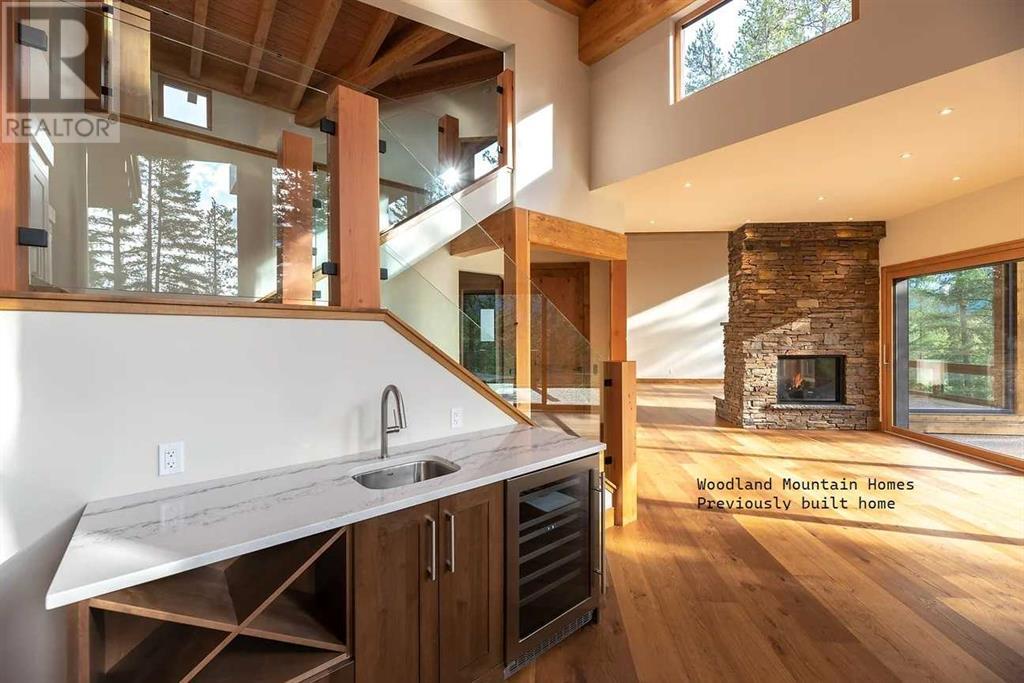 From Canmore’s premier builder Woodlands Mountain homes, a brand-new Alpine Chalet design. Completion sited for summer 2024. Located on one of the most coveted streets in Stewart Creek. At 3,656 sq.ft this 5 bedroom, 3.5 bath home, including a legal, conforming 2 bedroom walkout basement suite, is situated on an 11,118 sq.ft lot backing onto the 10th hole of the Stewart Creek golf course w/stunning north views spanning from Lady Mac to Pigeon Mountain & the serene Wind Valley to the south. This sophisticated retreat offers the utmost privacy & lives intimately with the forest behind. The upper-level main floor seamlessly blends Indoor-outdoor living & boasts a great room concept w/open dining, vaulted living rm, gourmet kitchen, reading nook, master bedroom, laundry, 2 expansive decks & a Cambridge heritage MRL Elevator. The 1st floor hosts 2 bedrooms, bath, & spacious family room w/south deck. Features include LVP flooring, AC, in-slab basement heat, elegant fireplaces, mud room, oversized double attached heated garage & plenty of storage. No expense was spared in this home's design & level of finishings. Full building plans & design package available to interested buyers. (id:22211)