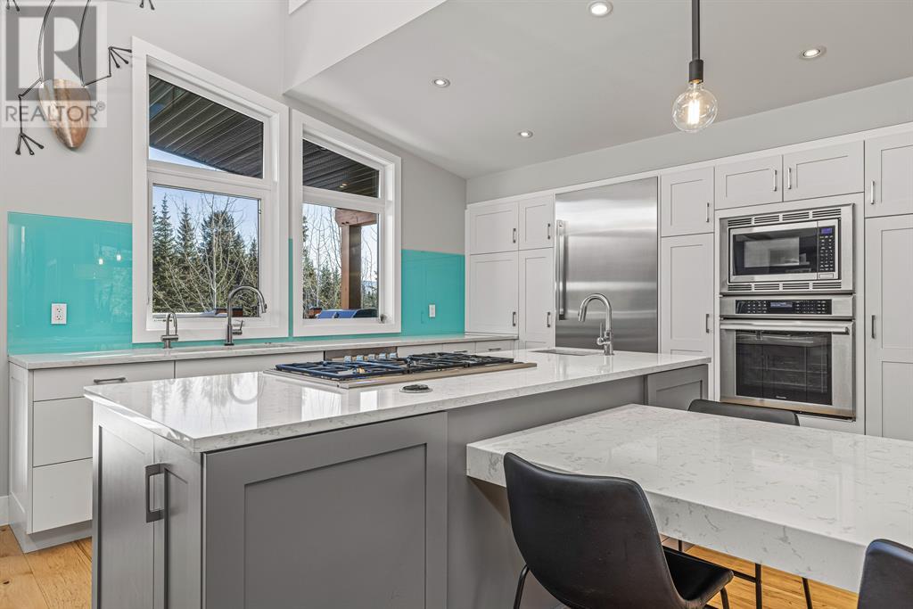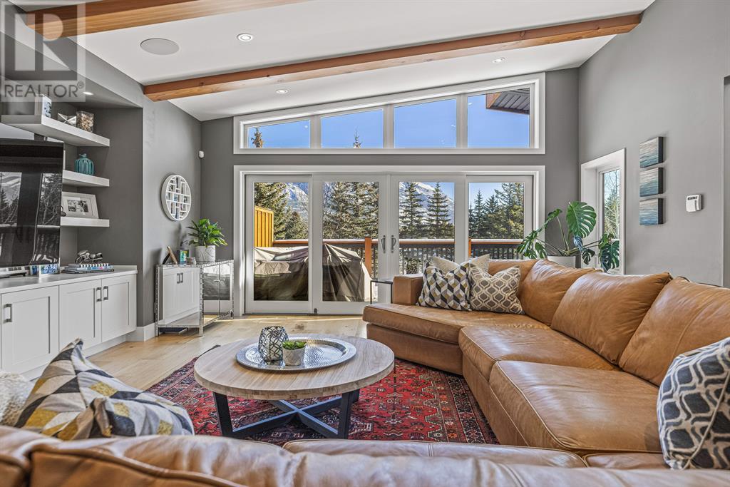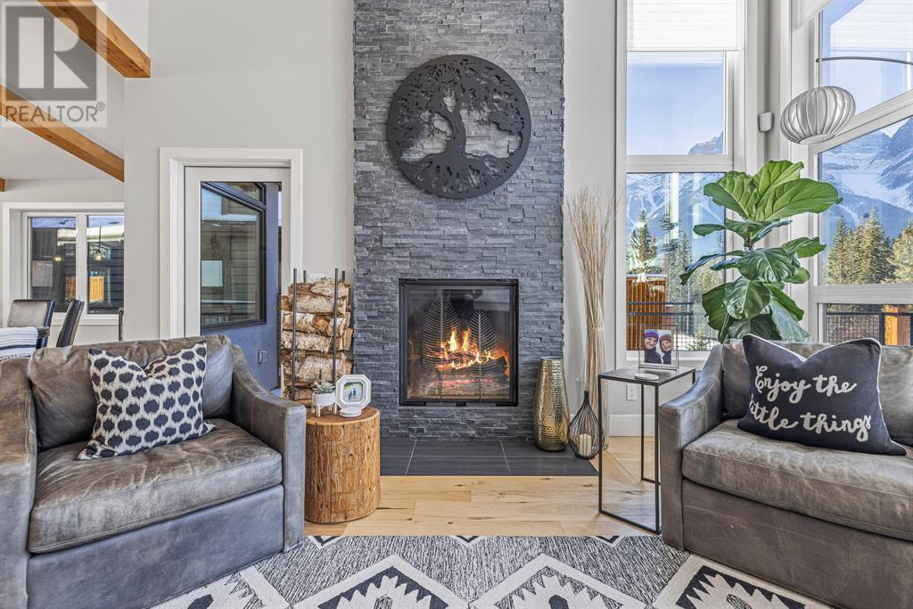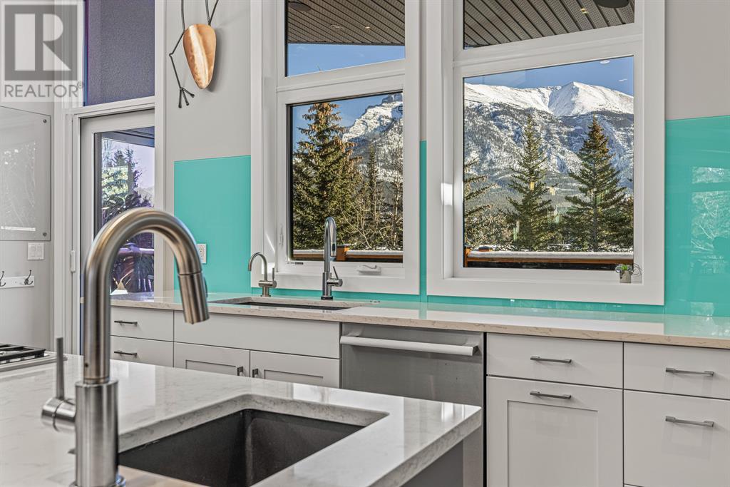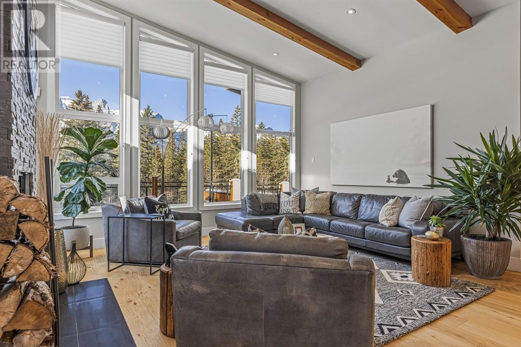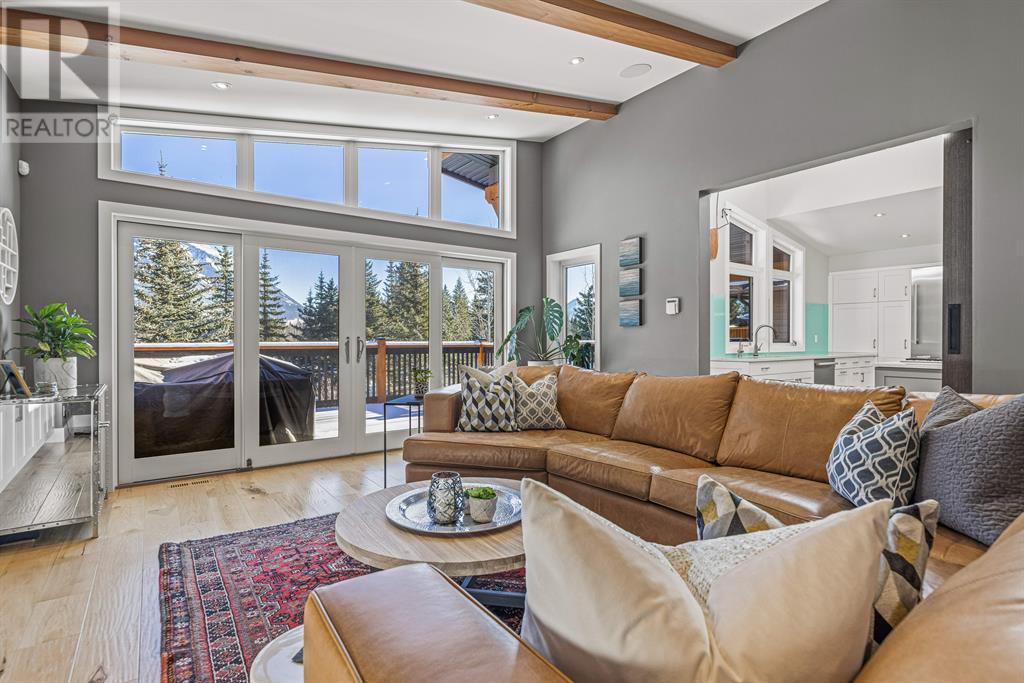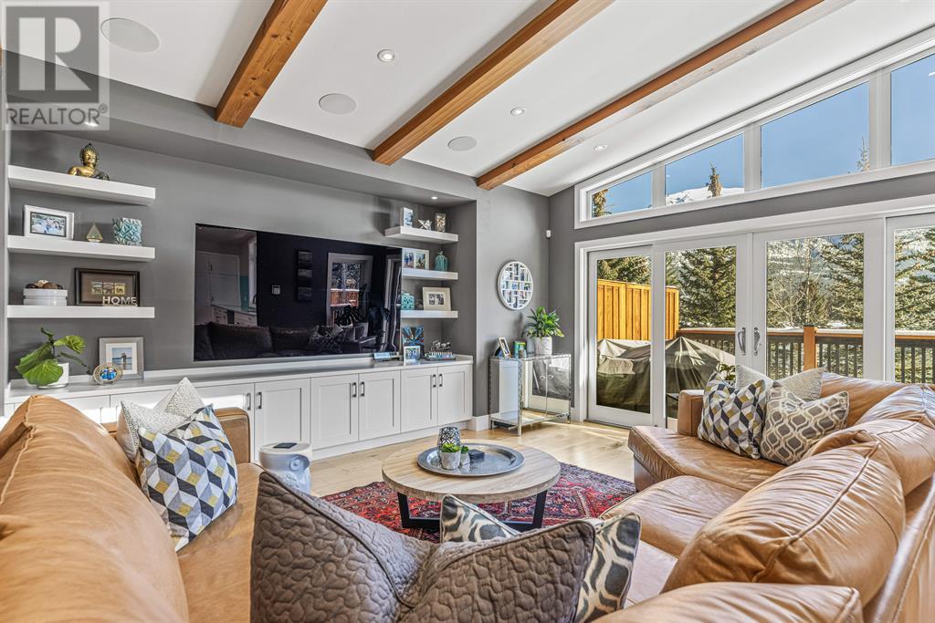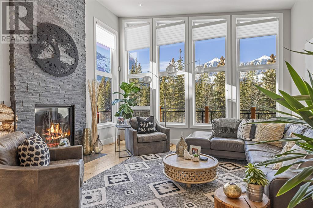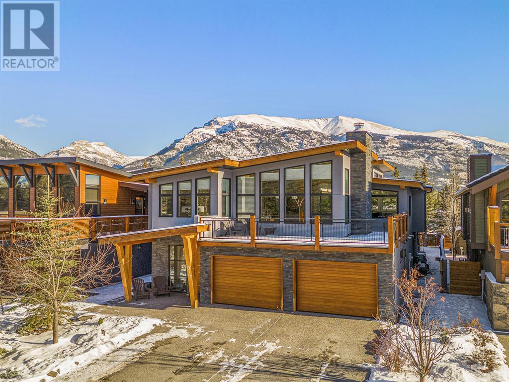 Huge Views Backing onto Spring CreekSouth Canmore location that simply doesn't get any better! Stunning mountain modern home is situated on a quiet cul de sac, overlooking a treed enclave with panoramic Mtn views that backs onto Spring Creek. The 4 bed home is exquisitely designed with fine attention to detail & premium finishings. Enjoy entertaining in the fabulous open concept living area with a stunning window wall offering picture perfect views throughout the living space. A Rumford wood burner & vaulted ceilings further compliment the aesthetics. The bright, chef's kitchen is outfitted with Thermador appliances, custom cabinets & large entertaining island and with an adjacent vaulted family room separated with a lovely sliding barn door. There is a 4th bed / office on this level with the same perfect views as the great room. Walkout level hosts the primary bed w/ gorgeous ensuite & steam that overlooks the creek and rear yard, a laundry & mudroom and 2 more beds on this level. Fenced in back yard, Control 4 Audio Visual System as well. (id:22211)