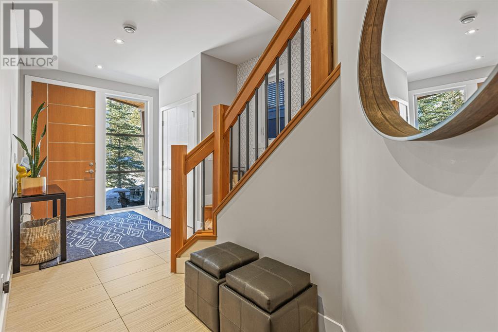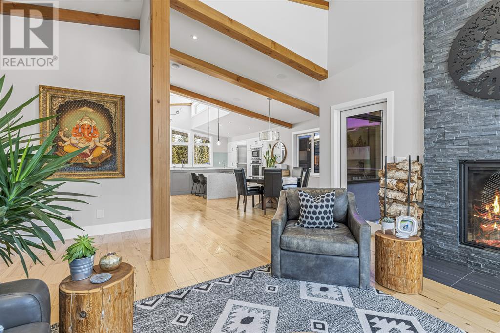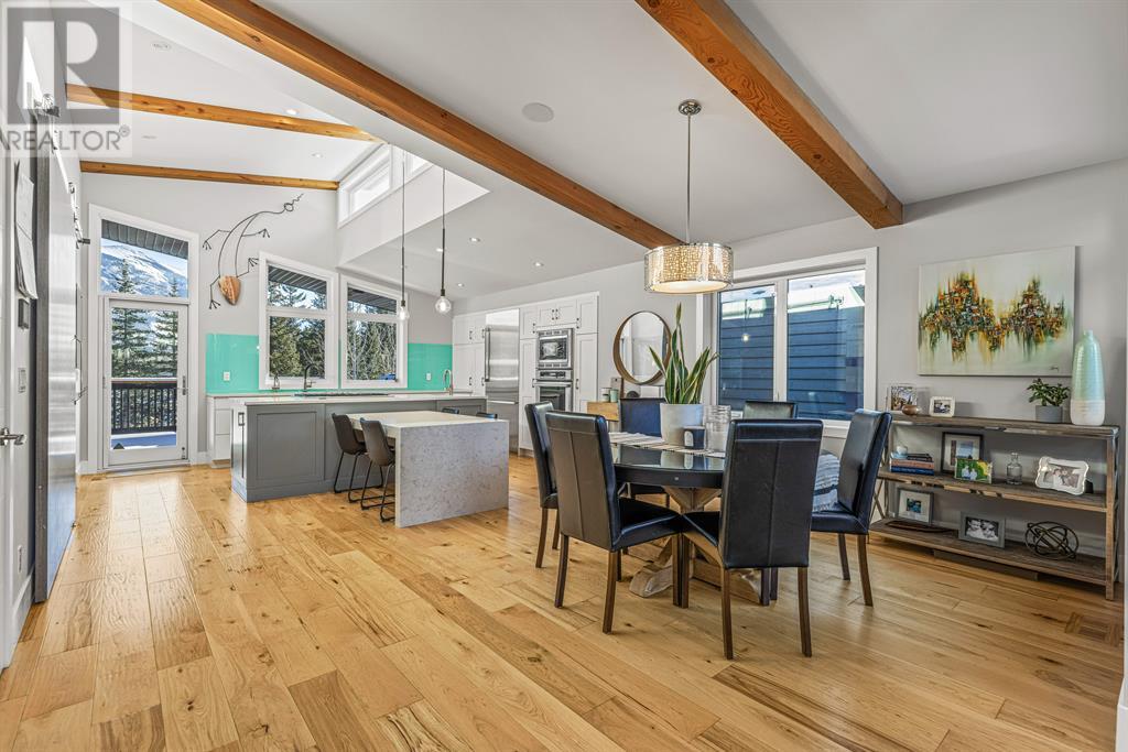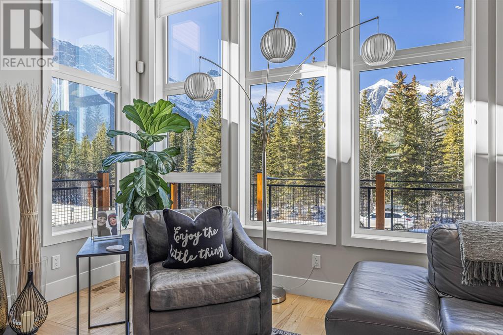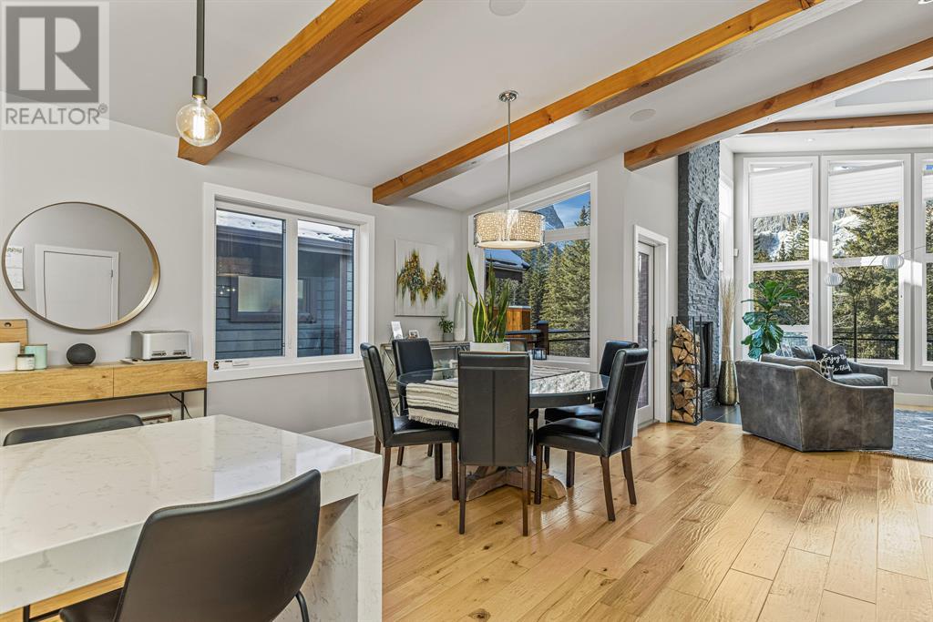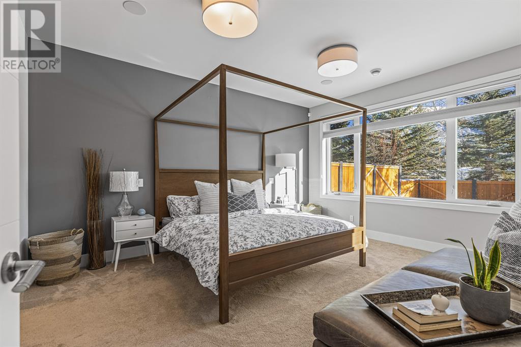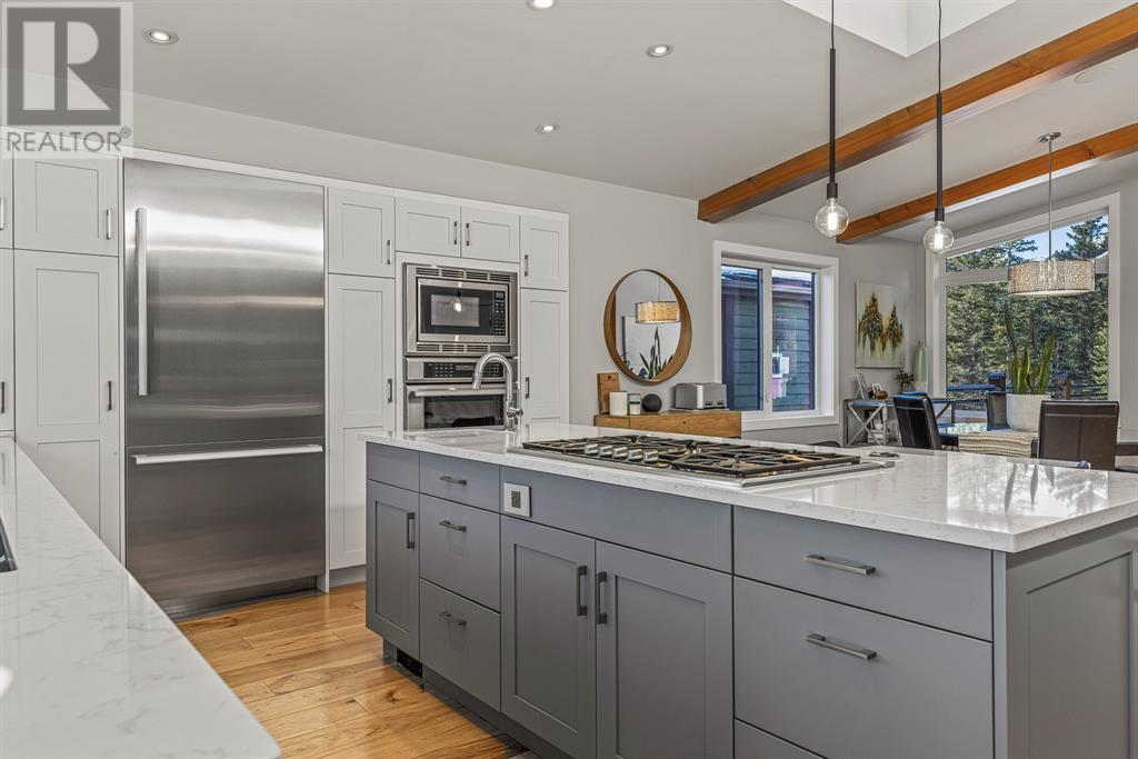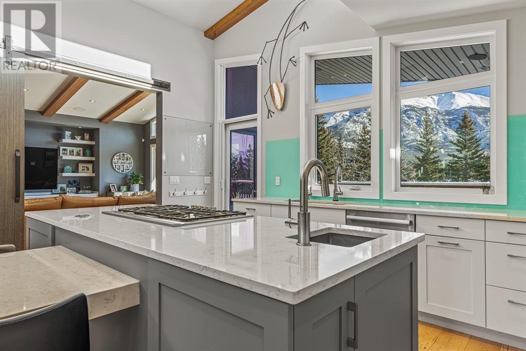 Huge Views Backing onto Spring CreekSouth Canmore location that simply doesn't get any better! Stunning mountain modern home is situated on a quiet cul de sac, overlooking a treed enclave with panoramic Mtn views that backs onto Spring Creek. The 4 bed home is exquisitely designed with fine attention to detail & premium finishings. Enjoy entertaining in the fabulous open concept living area with a stunning window wall offering picture perfect views throughout the living space. A Rumford wood burner & vaulted ceilings further compliment the aesthetics. The bright, chef's kitchen is outfitted with Thermador appliances, custom cabinets & large entertaining island and with an adjacent vaulted family room separated with a lovely sliding barn door. There is a 4th bed / office on this level with the same perfect views as the great room. Walkout level hosts the primary bed w/ gorgeous ensuite & steam that overlooks the creek and rear yard, a laundry & mudroom and 2 more beds on this level. Fenced in back yard, Control 4 Audio Visual System as well. (id:22211)