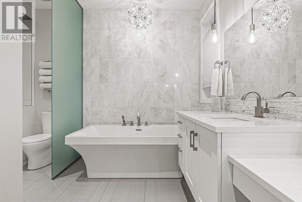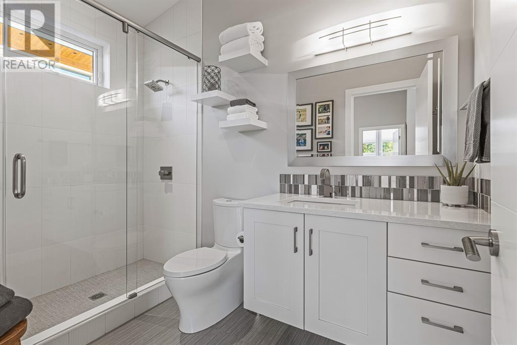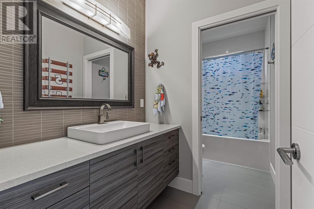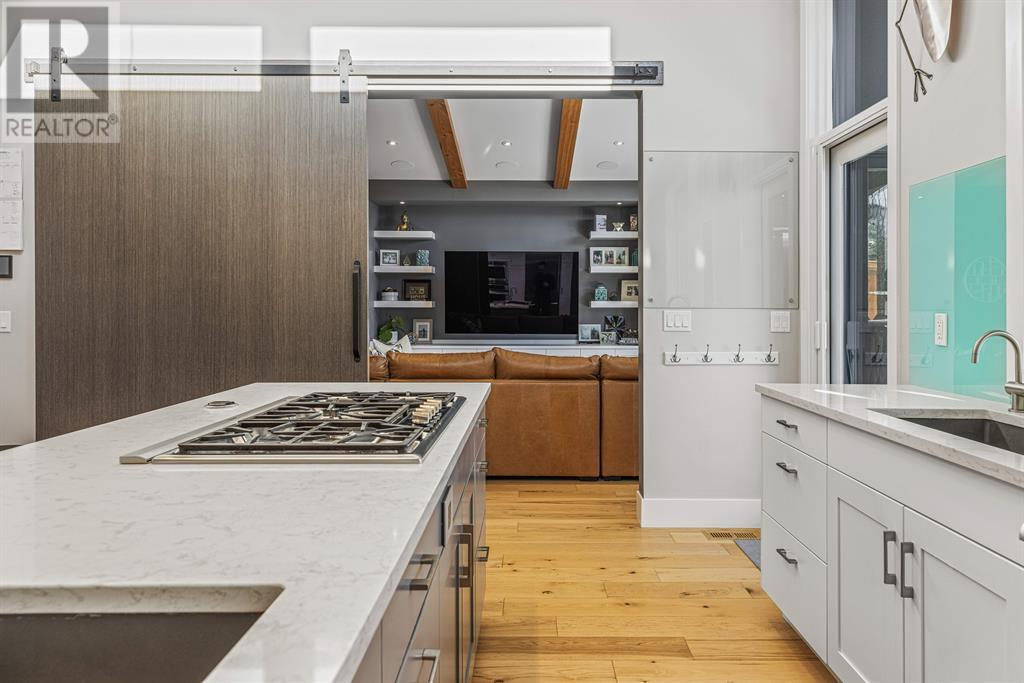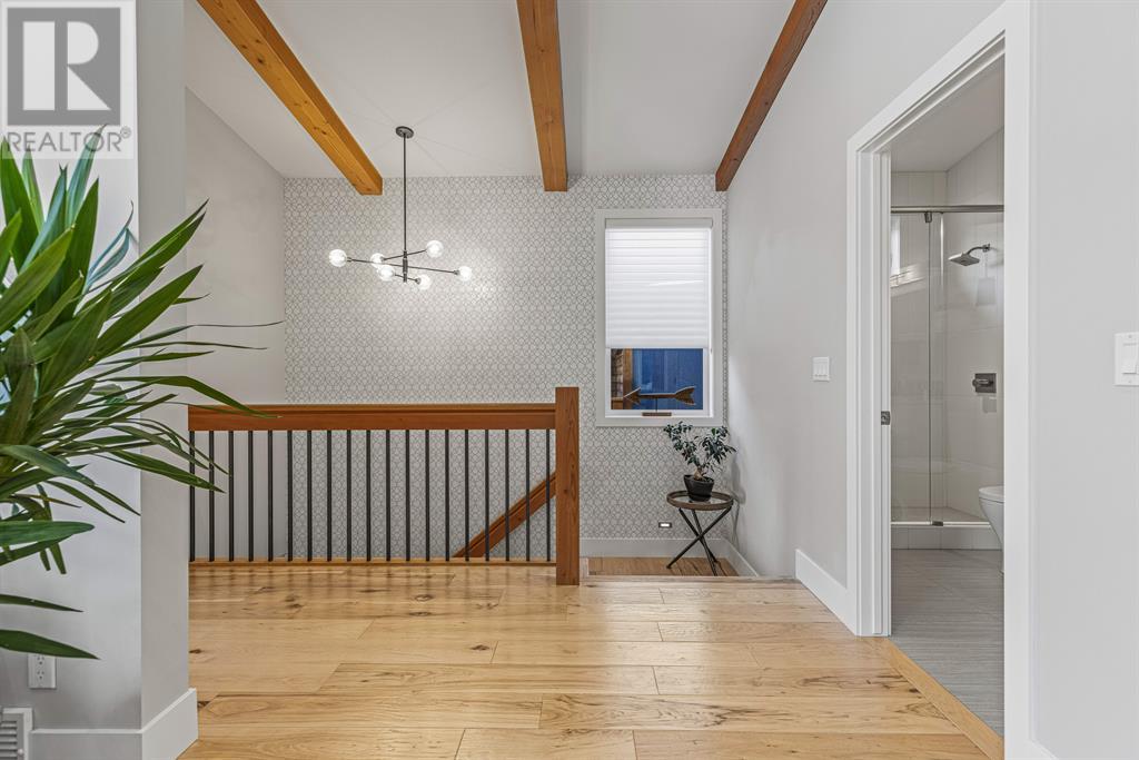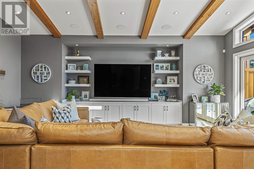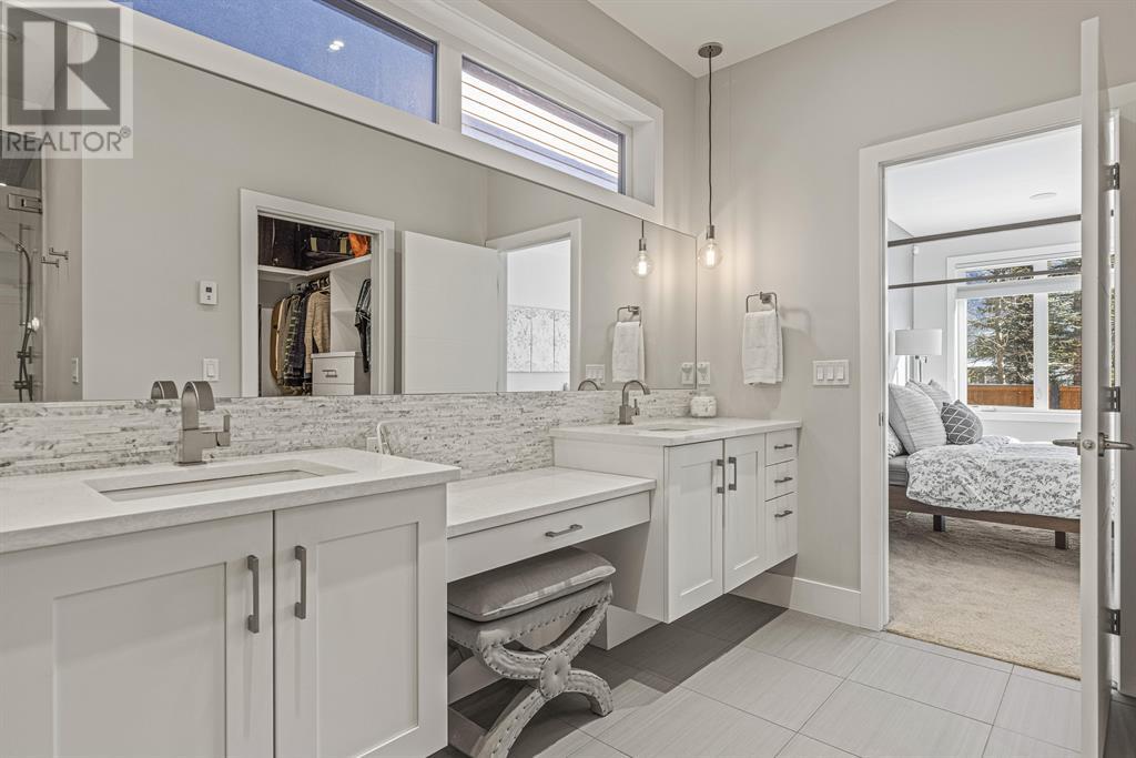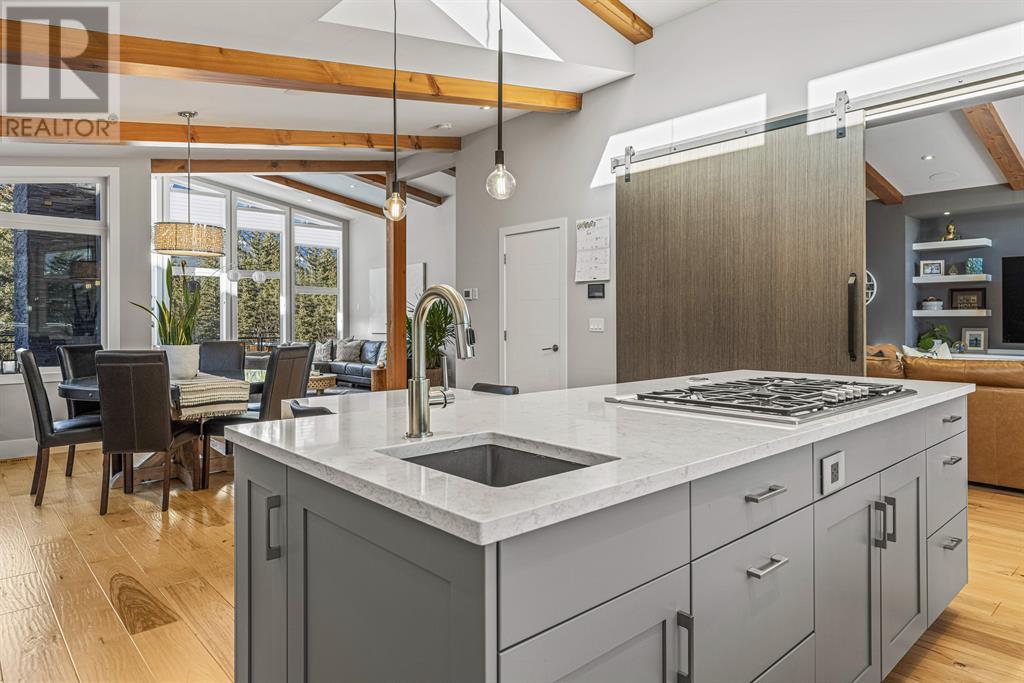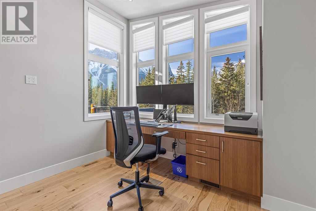Huge Views Backing onto Spring CreekSouth Canmore location that simply doesn't get any better! Stunning mountain modern home is situated on a quiet cul de sac, overlooking a treed enclave with panoramic Mtn views that backs onto Spring Creek. The 4 bed home is exquisitely designed with fine attention to detail & premium finishings. Enjoy entertaining in the fabulous open concept living area with a stunning window wall offering picture perfect views throughout the living space. A Rumford wood burner & vaulted ceilings further compliment the aesthetics. The bright, chef's kitchen is outfitted with Thermador appliances, custom cabinets & large entertaining island and with an adjacent vaulted family room separated with a lovely sliding barn door. There is a 4th bed / office on this level with the same perfect views as the great room. Walkout level hosts the primary bed w/ gorgeous ensuite & steam that overlooks the creek and rear yard, a laundry & mudroom and 2 more beds on this level. Fenced in back yard, Control 4 Audio Visual System as well. (id:22211)