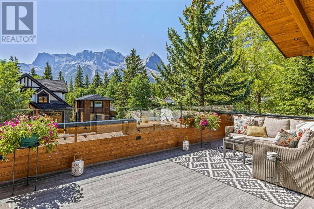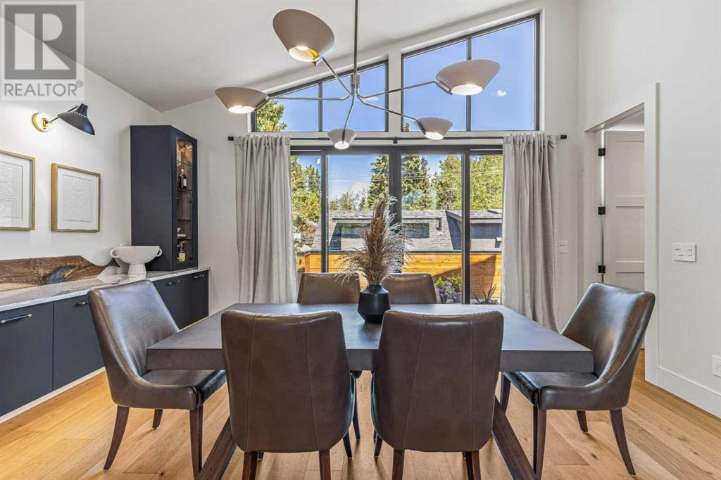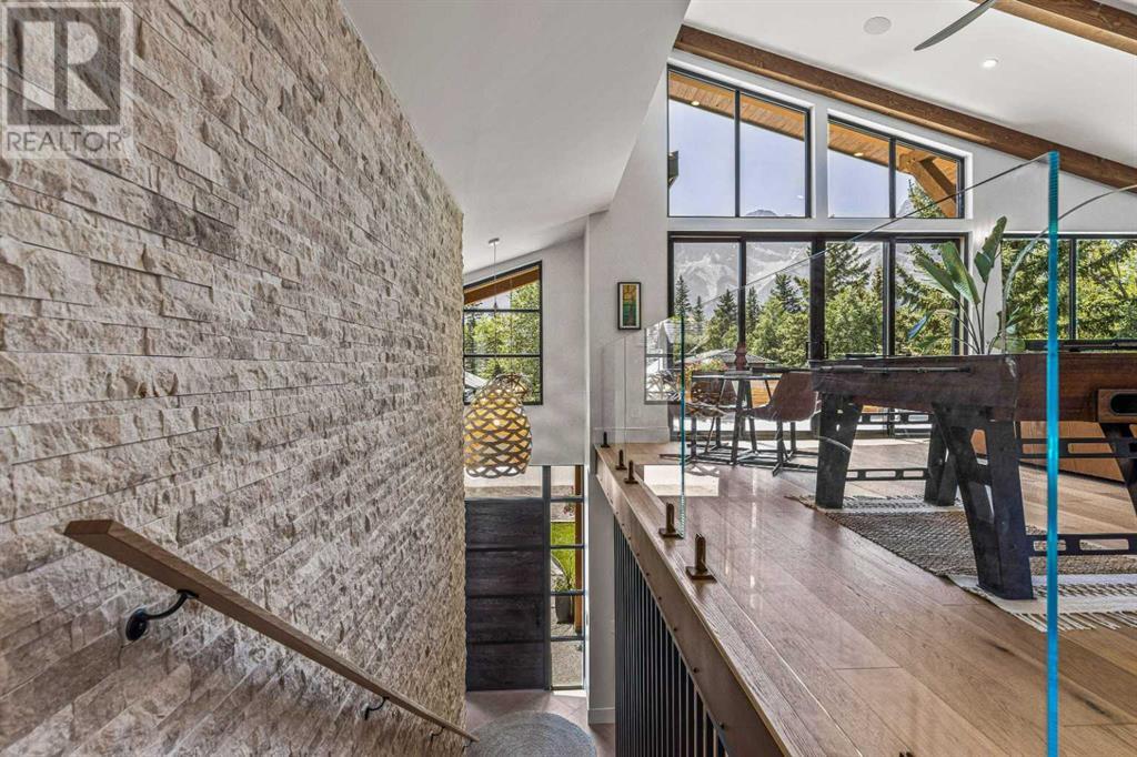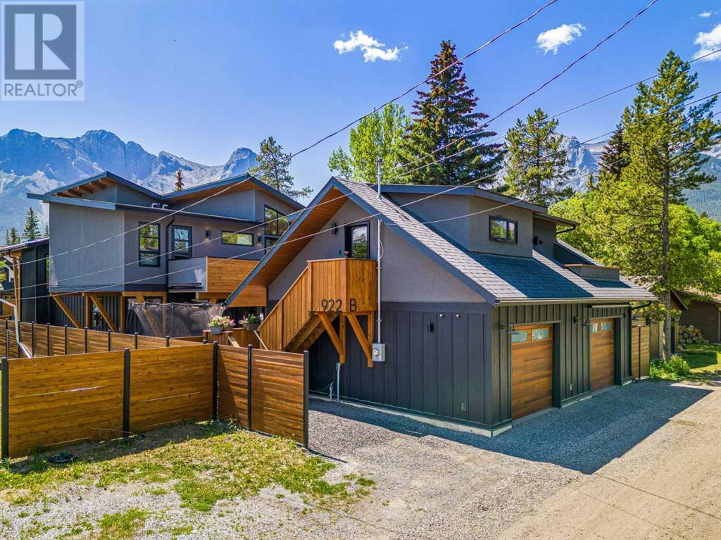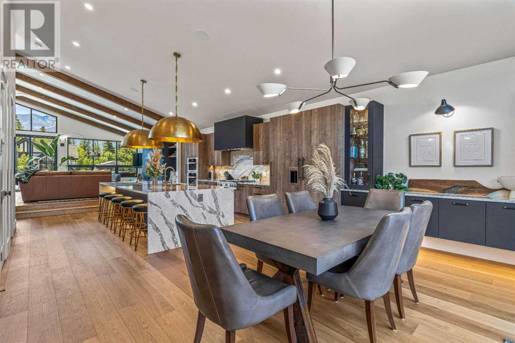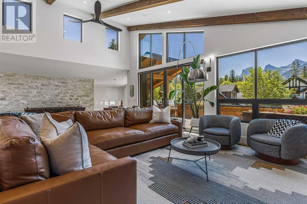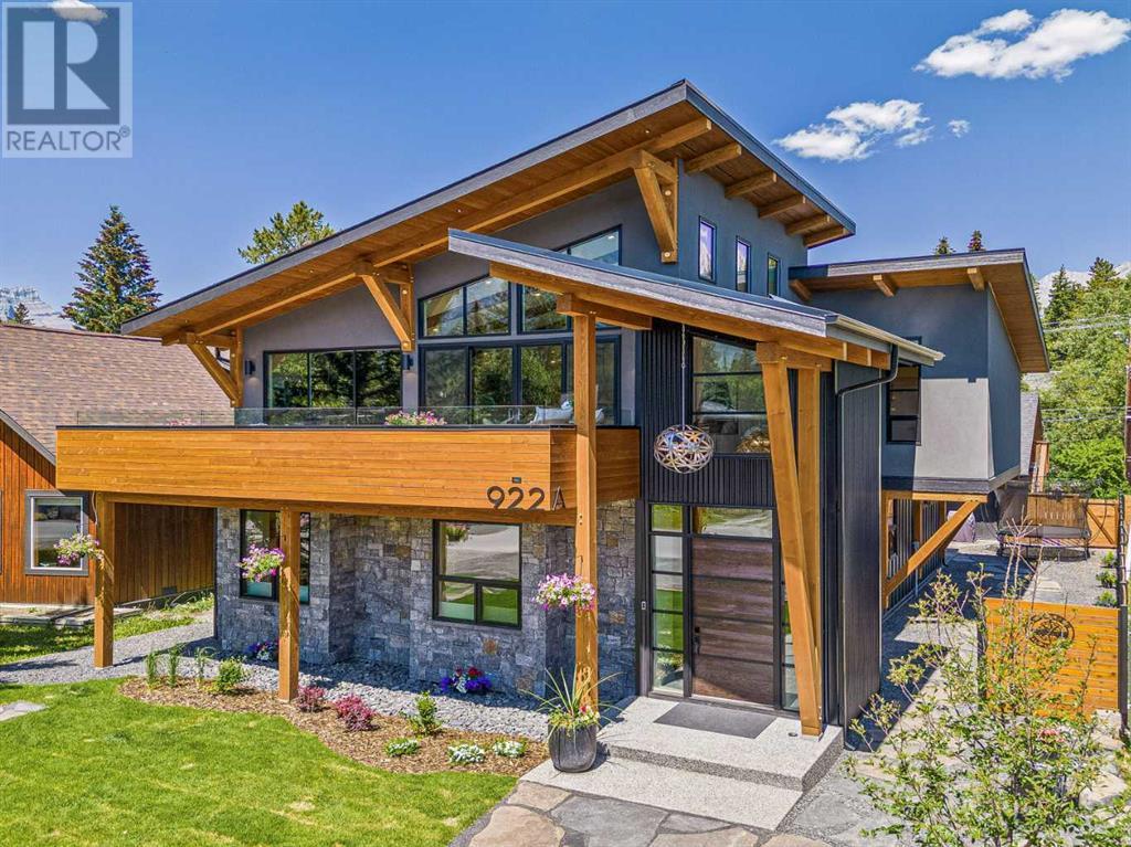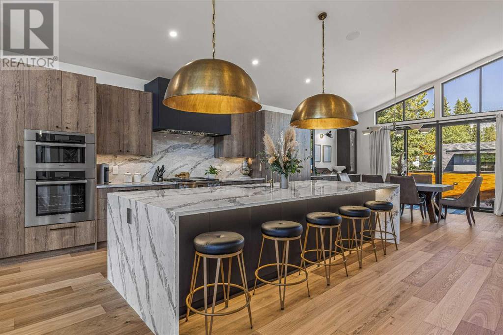 Custom Crafted Home with Legal Carriage Suite! Meticulously curated with only the finest materials, this newly built 7-bedroom, 5.5 bath home is breathtaking! Designed with a large family in mind, the main floor features a gorgeous mud room, an office/den/guest room with King size murphy bed, 3 additional bedrooms with ensuites, laundry area and a family room with access to the backyard hot tub and pizza oven. Greeted by an 8’ solid fir door, a dramatic suspended staircase leads to an upper floor like no other. The top floor features an open concept kitchen/living/dining area, half bath and primary suite with a spa-inspired ensuite. View focused and shielded by 600 SF of privacy decks, the upper level is awe-inspiring with no shortage of panoramic mountain views. Design elements include artistic lighting by New Zealand Designer, David Trubridge, high-end lighting package including brass dome statement pendants from Restoration Hardware, marble feature wall, white oak hardwood floors throughout, custom walnut barn door and slat walls, stylish tiles, cabinetry by Bow Valley Kitchens, waterfall quartz countertops in the kitchen and primary ensuite, Miele appliances, LG WashTower, Hunter Douglas blinds, BC fir timber beams. Upgrades include heated bathroom floors, 6’ Bain Ultra air jet soaker tub with heated backrest, Legrand switches and outlets, a Sonos sound system, air conditioning, water softener, hot water on demand, a custom spiral staircase, and impressively, 1,500 SF of heated crawl space offering an enormous amount of storage. The heated garage further features a gear room, a flex space for a home gym or another guest bedroom with King size murphy bed and 3-piece ensuite. The detached garage can be used with a rental suite above or is ideal as a guest house, for the most discerning buyers. The legal Accessory Dwelling Unit (carriage suite) currently generates $2,500/month. Seller is a licensed Associate in the Province of Alberta. (id:22211)