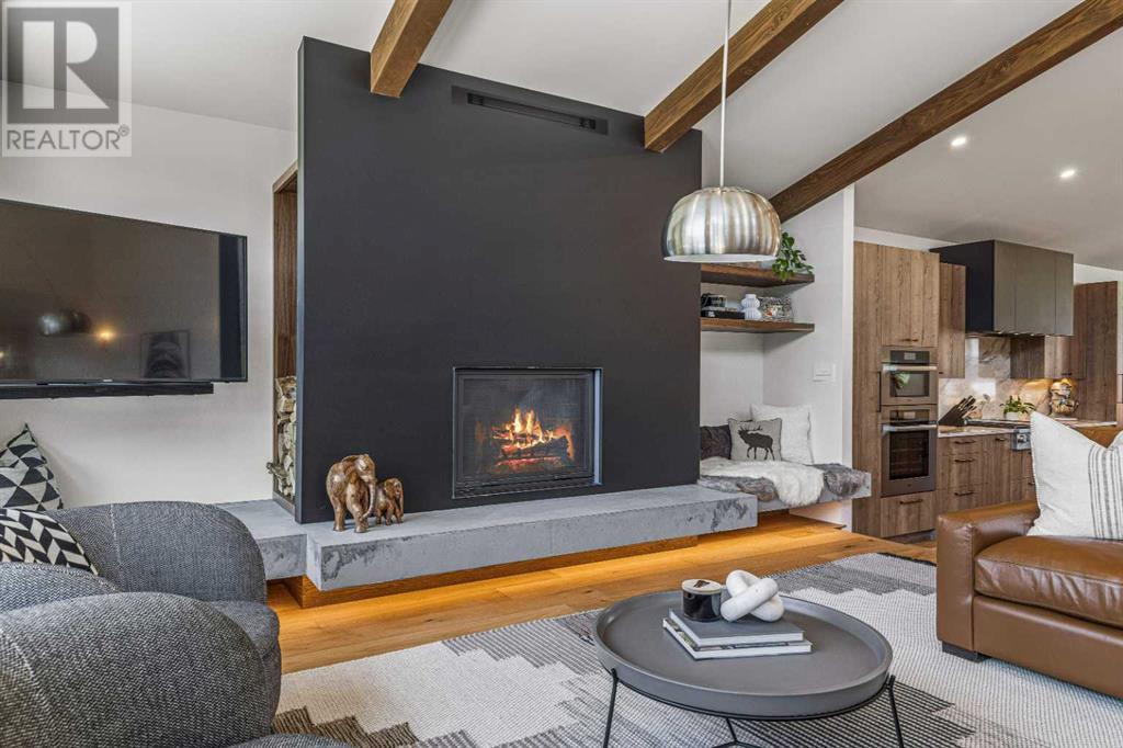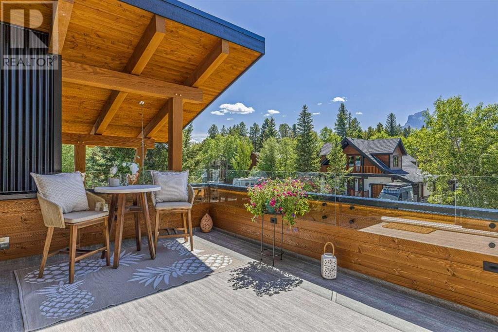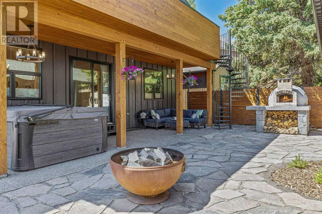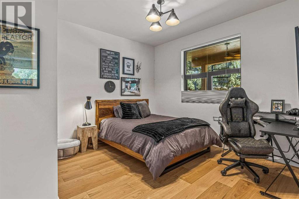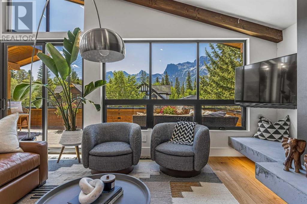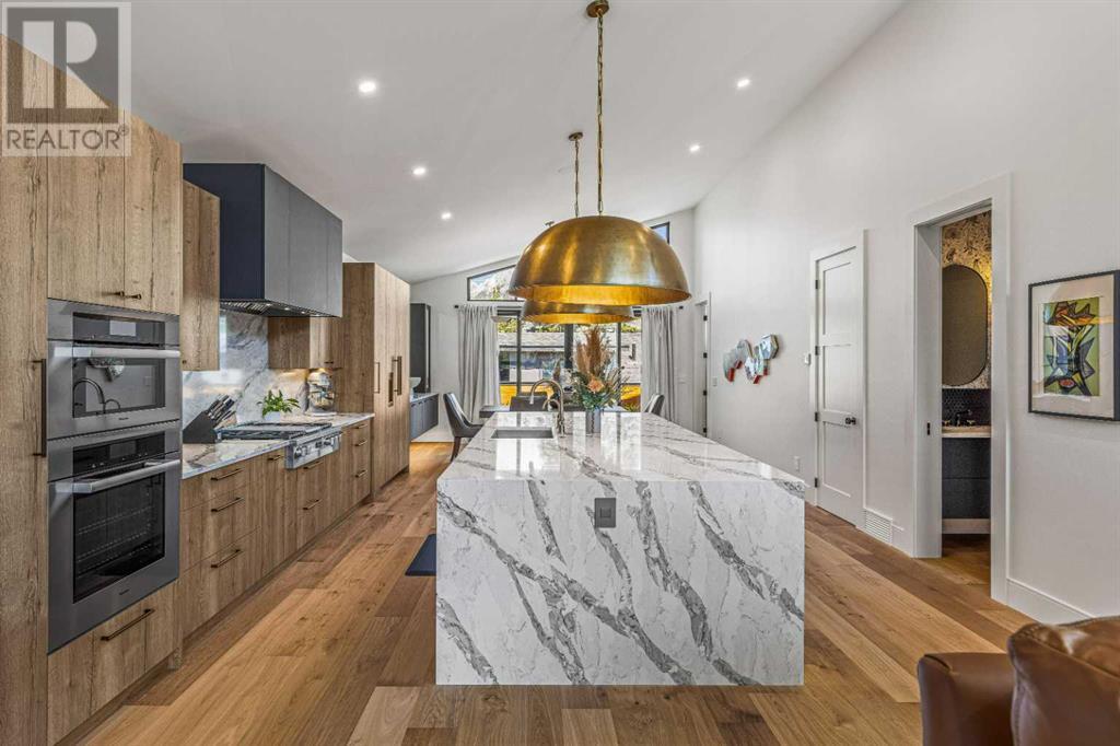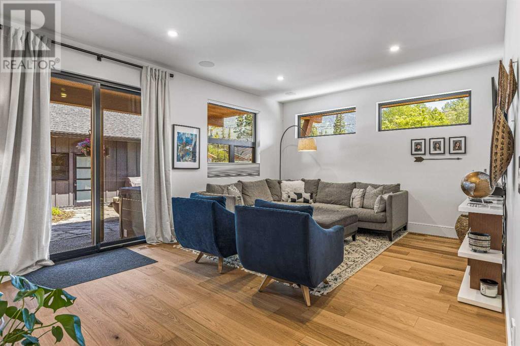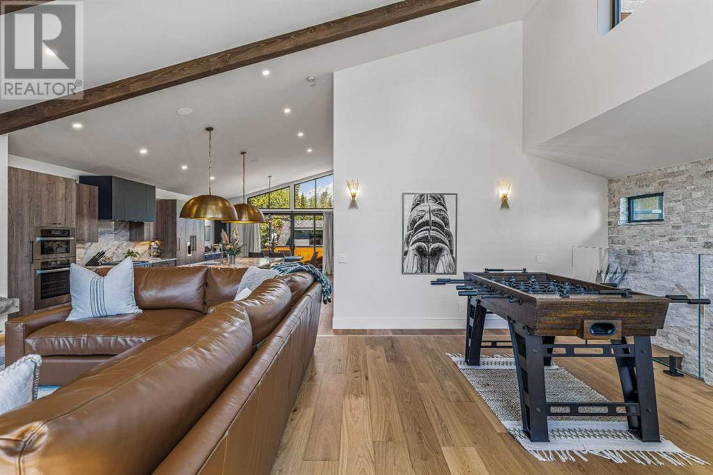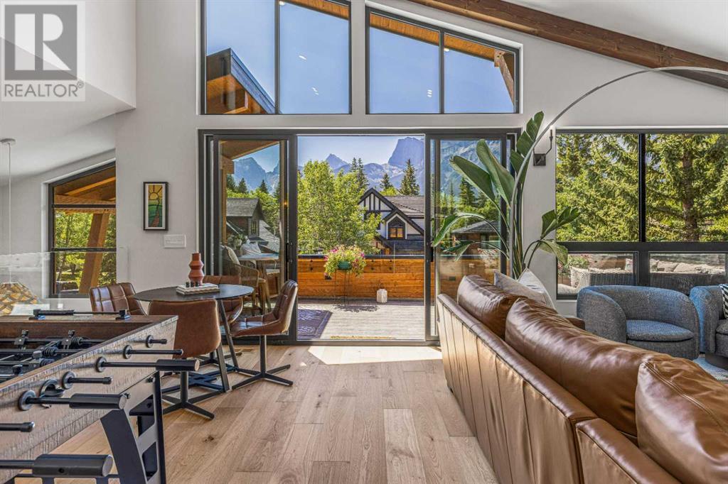 Custom Crafted Home with Legal Carriage Suite! Meticulously curated with only the finest materials, this newly built 7-bedroom, 5.5 bath home is breathtaking! Designed with a large family in mind, the main floor features a gorgeous mud room, an office/den/guest room with King size murphy bed, 3 additional bedrooms with ensuites, laundry area and a family room with access to the backyard hot tub and pizza oven. Greeted by an 8’ solid fir door, a dramatic suspended staircase leads to an upper floor like no other. The top floor features an open concept kitchen/living/dining area, half bath and primary suite with a spa-inspired ensuite. View focused and shielded by 600 SF of privacy decks, the upper level is awe-inspiring with no shortage of panoramic mountain views. Design elements include artistic lighting by New Zealand Designer, David Trubridge, high-end lighting package including brass dome statement pendants from Restoration Hardware, marble feature wall, white oak hardwood floors throughout, custom walnut barn door and slat walls, stylish tiles, cabinetry by Bow Valley Kitchens, waterfall quartz countertops in the kitchen and primary ensuite, Miele appliances, LG WashTower, Hunter Douglas blinds, BC fir timber beams. Upgrades include heated bathroom floors, 6’ Bain Ultra air jet soaker tub with heated backrest, Legrand switches and outlets, a Sonos sound system, air conditioning, water softener, hot water on demand, a custom spiral staircase, and impressively, 1,500 SF of heated crawl space offering an enormous amount of storage. The heated garage further features a gear room, a flex space for a home gym or another guest bedroom with King size murphy bed and 3-piece ensuite. The detached garage can be used with a rental suite above or is ideal as a guest house, for the most discerning buyers. The legal Accessory Dwelling Unit (carriage suite) currently generates $2,500/month. Seller is a licensed Associate in the Province of Alberta. (id:22211)