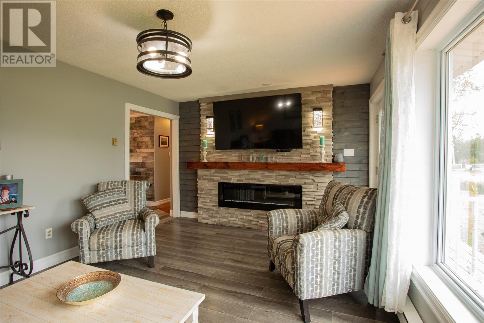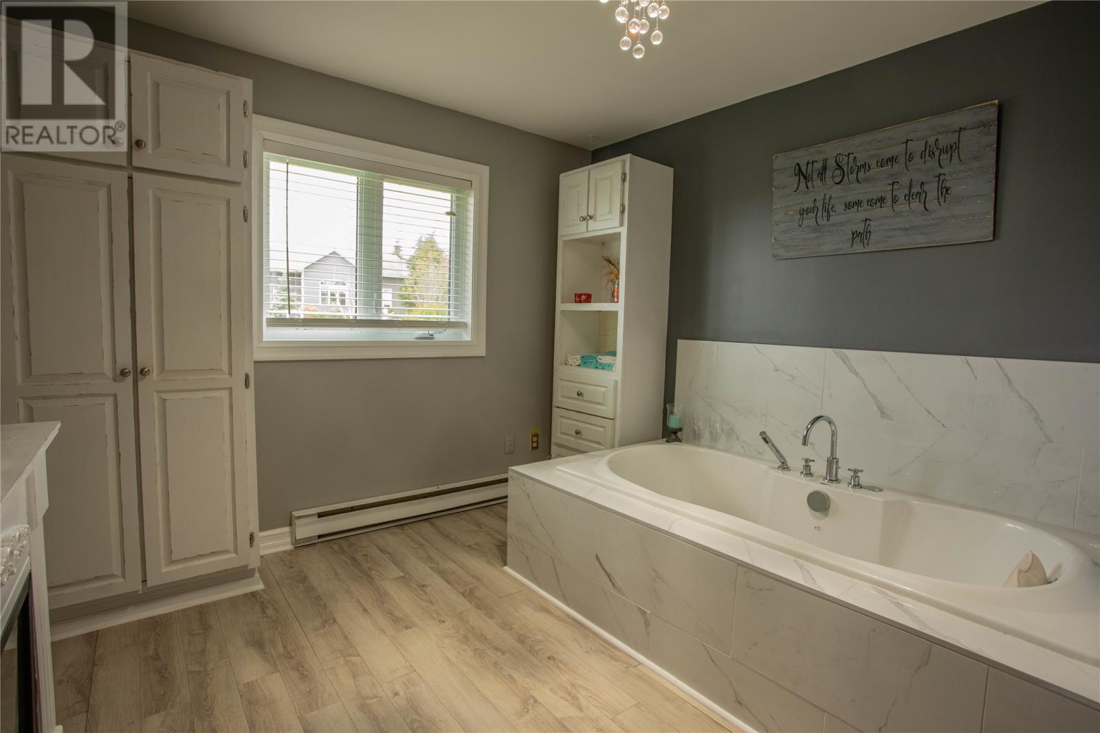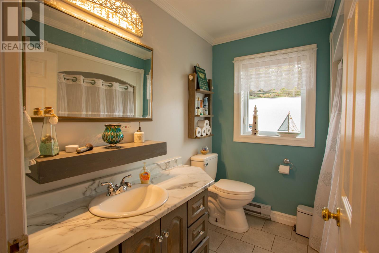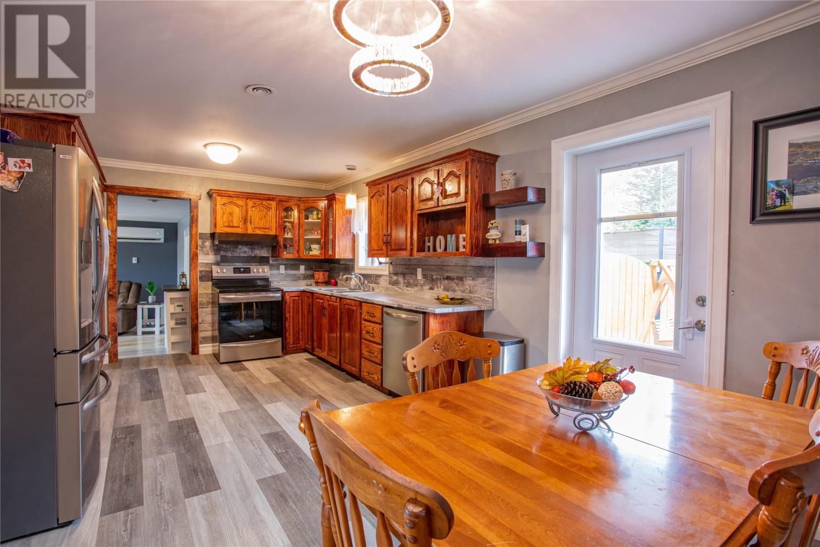 14 Soper Avenue, Carbonear is a 1475 sq ft bungalow that sits on a beautifully manicured fully landscaped level lot. This property has undergone many recent updates. All new windows, doors and siding were replaced in the Spring of 2020. The kitchen cabinets were striped, sanded and refurbished and new kitchen appliances in the Spring of 2020. All pipes were updated to pex in the Spring of 2020. The attic was topped up with blown in insulation in the Spring of 2020. All new plugs, switches and light were updated throughout in 2022. A new mini split heat pump was installed in the Spring of 2021 and a new electric fireplace installed in the living room in the Winter of 2023. The flooring in the kitchen and living room was replaced in the Winter of 2022. The current owners installed a new whirlpool tub in the 3rd bedroom in 2022, this could easily be converted by a purchaser back into utility as the third bedroom if their family dynamic requires. The front half of the shingles were replaced in the Summer of 2022. There is rear yard access with a fully fenced back yard which provides great private spaces for relaxation or entertaining. The 14'x18' wired shed was built to include a wood stove installed and WETT Certified in 2022. The privacy fencing was installed, landscaping was completed including the coloured concrete in the Summer of 2022. This is a family friendly area with a playground located just down the street. See the full photo package and do not hesitate to book your private viewing of this sweet property to further qualify it for your purposes. (id:22211)