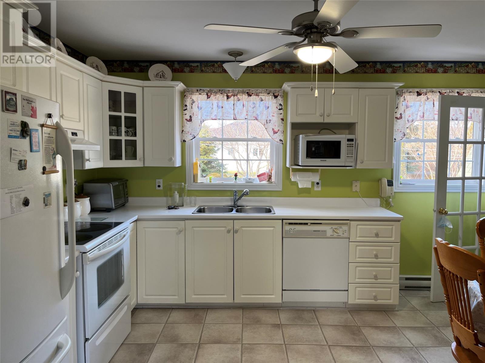 LOCATION! LOCATION! Immaculate, well maintained bungalow with attached garage. This lovely home shows pride of ownership and is move in ready! As you enter, you are greeted with gleaming hardwood & ceramic tiled floors. The front entrance leads to a fair sized living room and eat in kitchen with white cabinetry, light countertops and white appliances. From the kitchen you enter a porch which leads you to the back deck and a beautiful landscaped backyard. A separate laundry room is your access to the attached 15 x 24 garage, the owners currently used this space as their storage area, garage door & opener still in place and can easily be converted back to a usable garage area with very little work. Two bedrooms with ample closets, main 3 pc. bath with tub surround, primary bedroom with 3pc. ensuite/shower and large closet complete the living space of this home. A 10x12 baby barn is perfect for the lawnmower, garden tools, snow blower or whatever your needs may be. Situated on a manicured lot with paved drive in a great neighborhood. Home has had many upgrades in recent years, new shingles(2020),New HVAC(2020),front & back pressure treated decks(2019), hardwood floors(2016), hot water heater (2021) to name a few. Centrally located and just minutes to Carbonear hospital, shopping, and restaurants. Don't miss the opportunity to own this great home. (id:22211)