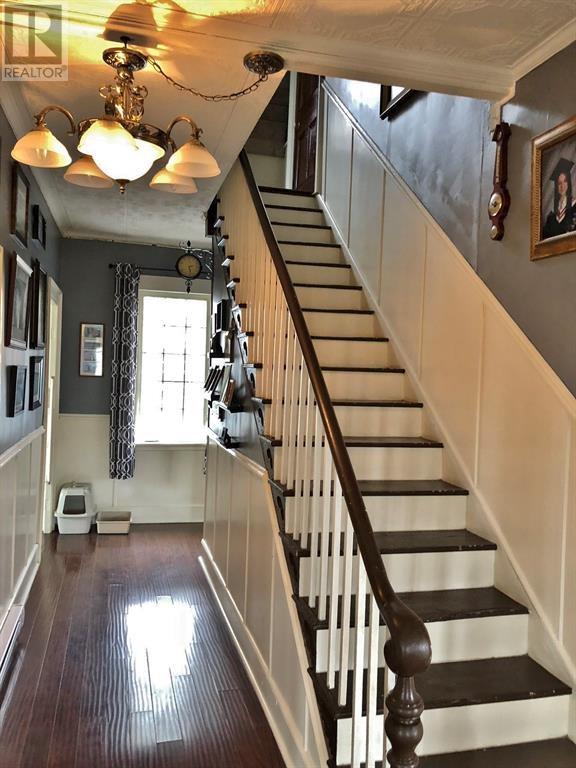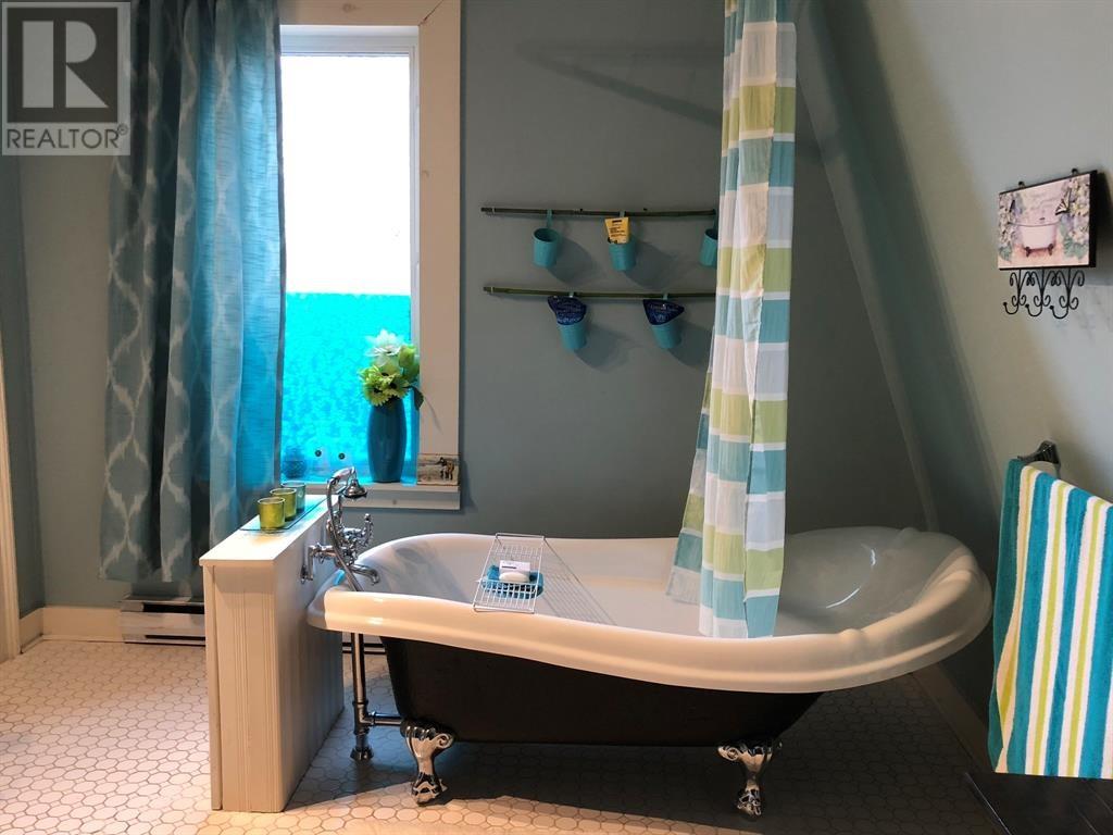 Lovely 3-bedroom character home with ocean views, overlooking the town of Carbonear. Owners have taken great care in restoring this home to retain its 140-year-old character and charm. The details in the moldings, ceilings, wainscoting, panels, stained glass doors with glass knobs, transom windows, & wooden floors all reflect the period it was built. Main floor features large living room with fireplace and wood stove, sitting area, newer kitchen, separate dining room, second cook's kitchen, laundry room with half bath, and sun room. The original wood staircase leads to the second floor featuring 3 large bedrooms with some original plank floors and a beautiful bathroom with claw foot soaker tub and separate shower. Modern upgrades include pex plumbing throughout, electrical, stainless steel fireplace liner, torch on roof, front deck and stone walkway. As a bonus, property includes an additional serviced building lot. (id:22211)