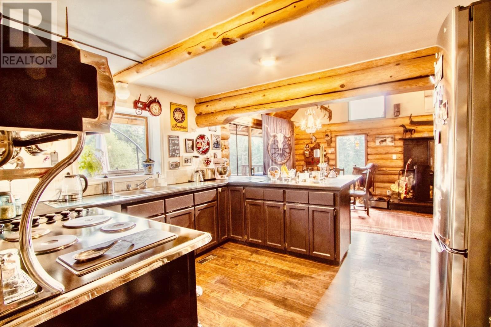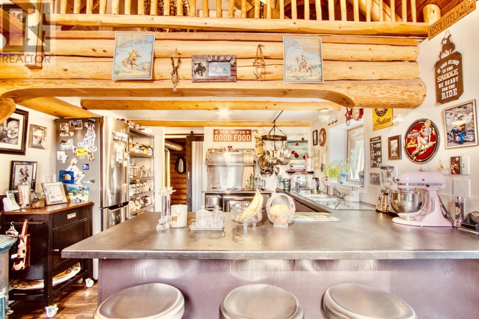 Storybook Log Home at the 108 Mile Ranch nestled on a 1.13 Acre of land w/privacy, beautiful views of nature & located right in town. This wonderful 3 bedroom home oozes character & charm from the moment you enter into this warm & inviting home you will fall in love with home decor, the ambiance of a cozy log home, the huge kitchen, wide open floor plan, master on the main, 2 additional bedrooms upstairs & a comfy loft area open to the lower level & giving you an area to kick back and read a book. Light & bright, huge sundeck that wraps 2 sides of the home, gorgeous land w/loads of potential, fire pit, storage shed, city water & upgraded septic. Wonderful lifestyle change if your looking for the perfect home on the range. (id:22211)