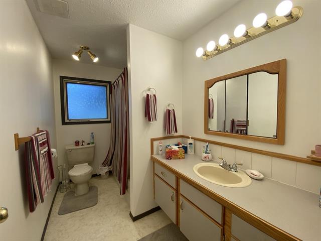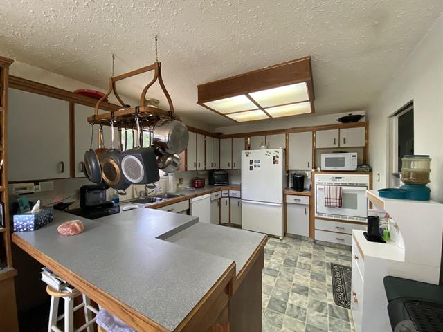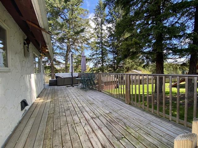 Great sized family home featuring 5 bedrooms, 2 bathrooms and large attached heated and wired garage/workshop. Well laid out with 3 bedrooms and a full bath up and 2 bedrooms, a full bath and large rec room with wet bar down below. Relax at the end of your day in the hardly used hot tub nicely situated on the wrap around deck. Partially fenced and nice grassy space for the kids to play, complete with a little playhouse. 2 more storage sheds create ample storage space. Roof is less than 10 years old, deck is approx. 5 years - not much to do except move in and make it your own.