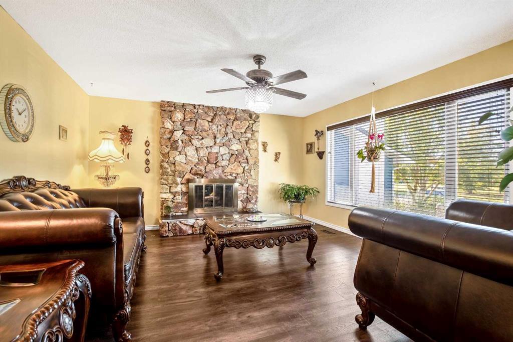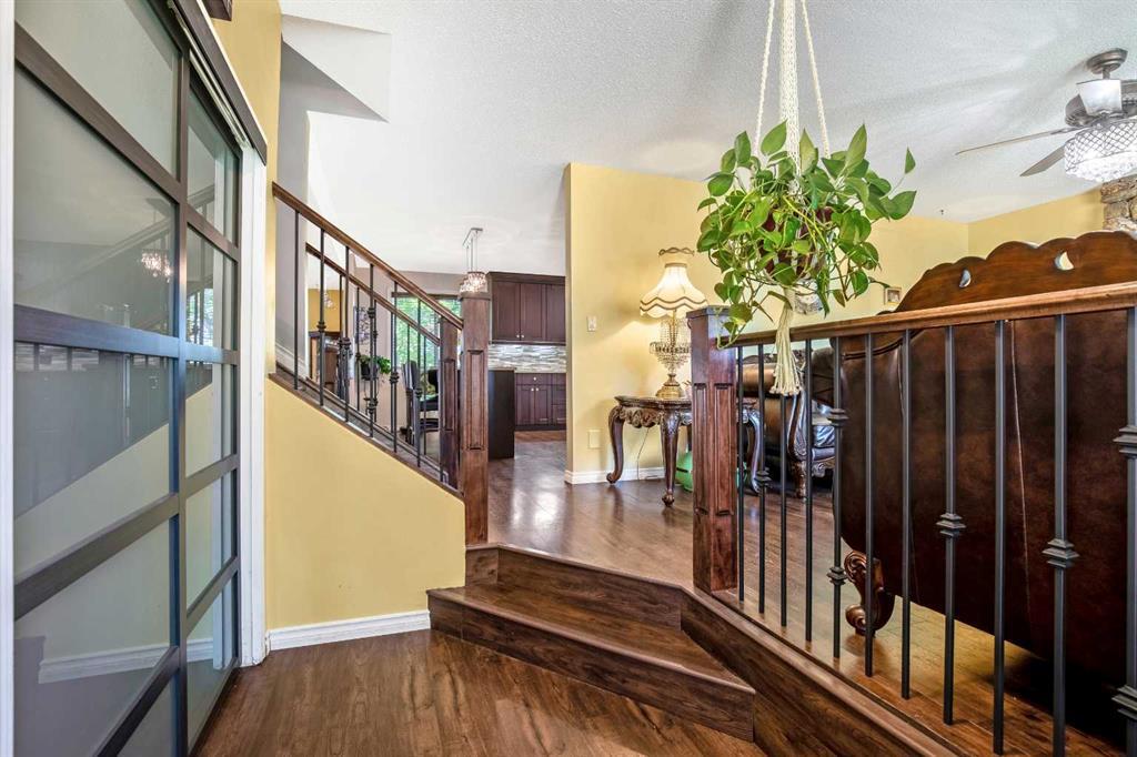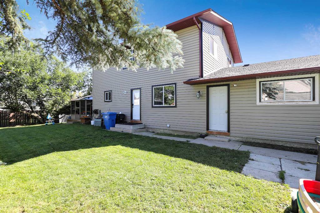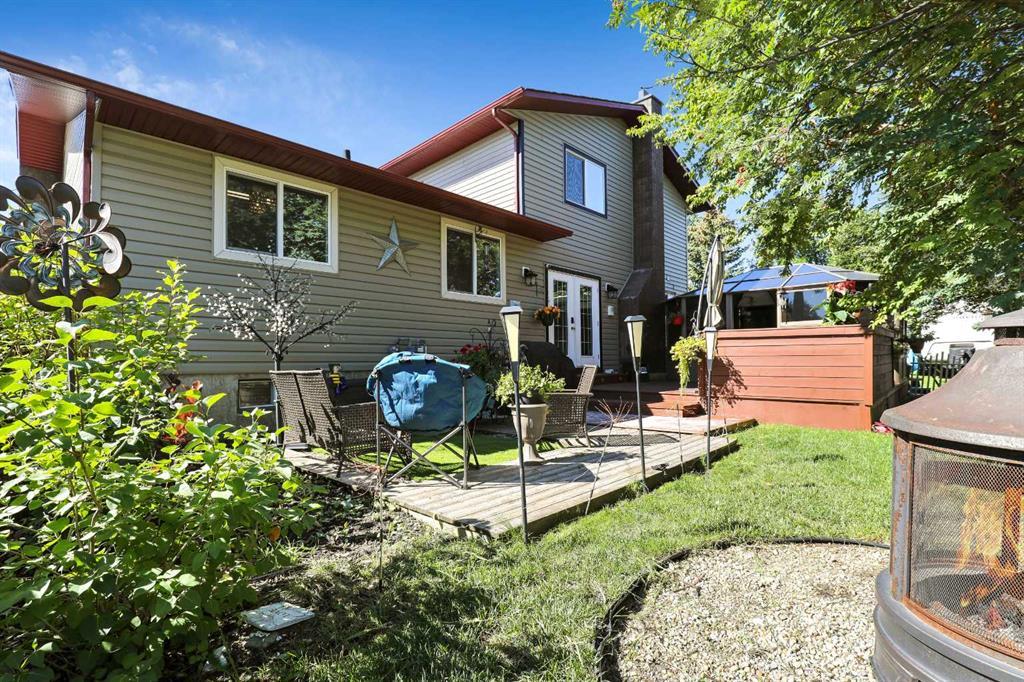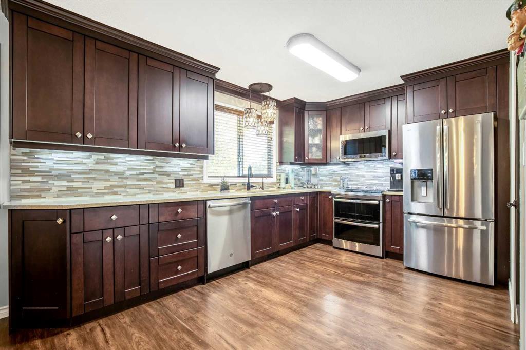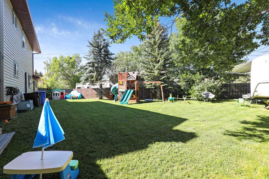 Welcome to this charming 2 storey home located in the quaint town of Carstairs! This lovely home boasts a new kitchen, complete with gorgeous quartz countertops and sleek stainless steel appliances, as well as a large pantry for all your storage needs. With 3 wood burning fireplaces, each with gas log igniters, you can cozy up in the sunken living room or enjoy the warmth in any of the other spacious rooms.This home features 1 bedroom, 1 office and laundry all on the main floor, perfect for those who work from home or need extra space for guests or those that need a main floor bedroom. The partially finished basement provides even more potential for additional living space with another bedroom and a living room with a fireplace. There is a huge storage room with a cold room to store all your canned goods! Upstairs, you'll find 3 more bedrooms, each with ample space and natural light. The primary bedroom comes complete with a large walk in closet and a 3 pc ensuite, ensuring that you'll have all the space and privacy you need.The large corner lot is a wonderful place to relax with a solarium on the deck, and the double attached garage along with RV storage offers plenty of room for vehicles and storage. Located across from a park/green space, this house is perfect for those who enjoy the outdoors. This house offers over 2000 sq ft of living space, making it perfect for families or anyone who needs a little extra room. Don't miss out on this wonderful opportunity to make this house your own! (id:22211)